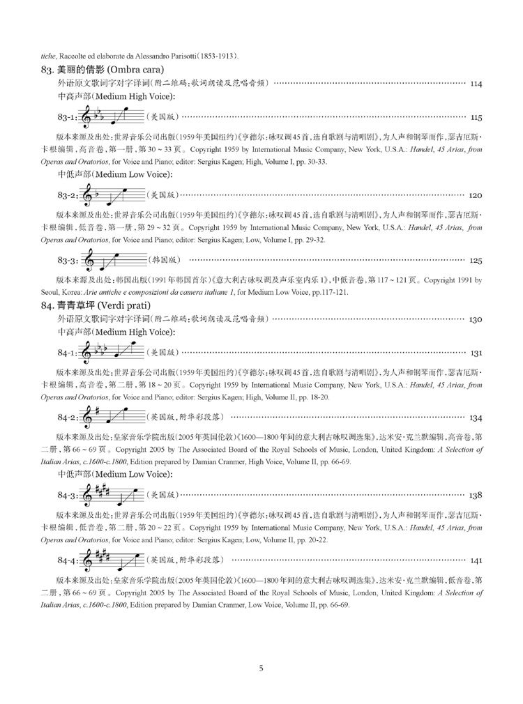 一直期待这套新书,相比此前的同类声乐出版物,真有很大的超越:此次的双语对照的诸多版本来源和出处,不同调高及版本的乐谱、集全球同类乐谱版本之大全、从高音调到低音调依次排列、钢琴伴奏迥异,加之二维码扫码就可以欣赏范唱录音和歌词朗读录音,真是让人耳目一新,与时俱进!