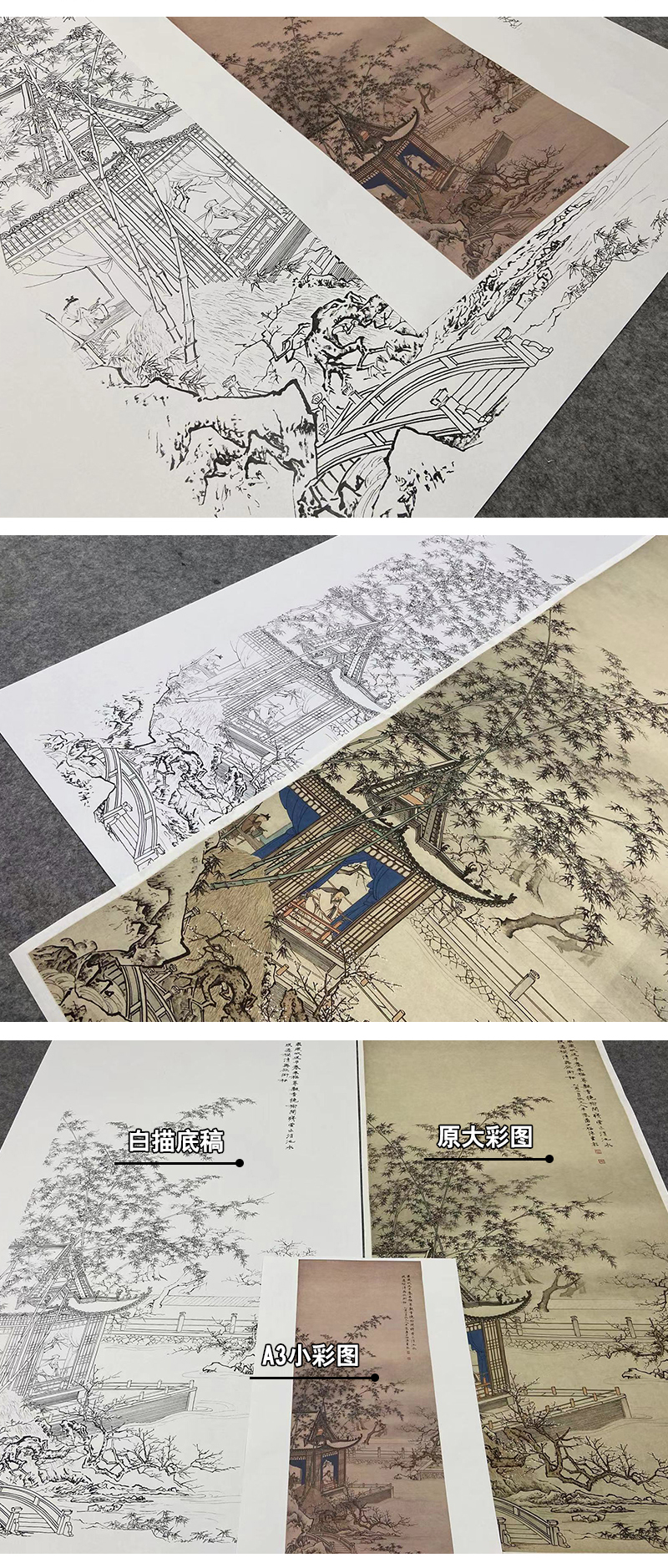 【大彩图】陈少梅工笔画白描底稿《梅萼飘香图》山水人物临摹勾线高清打印稿SV08