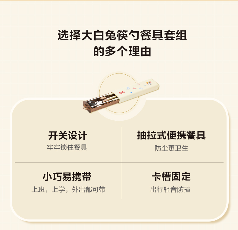 【IP联名】大白兔IP联名随身干饭小工具-筷勺套组/便当盒(含袋)套组