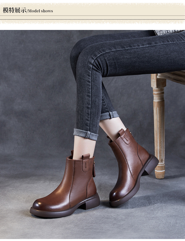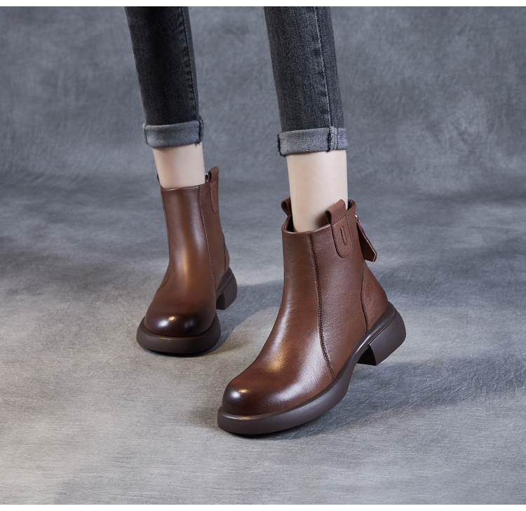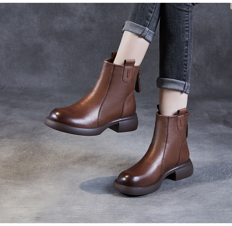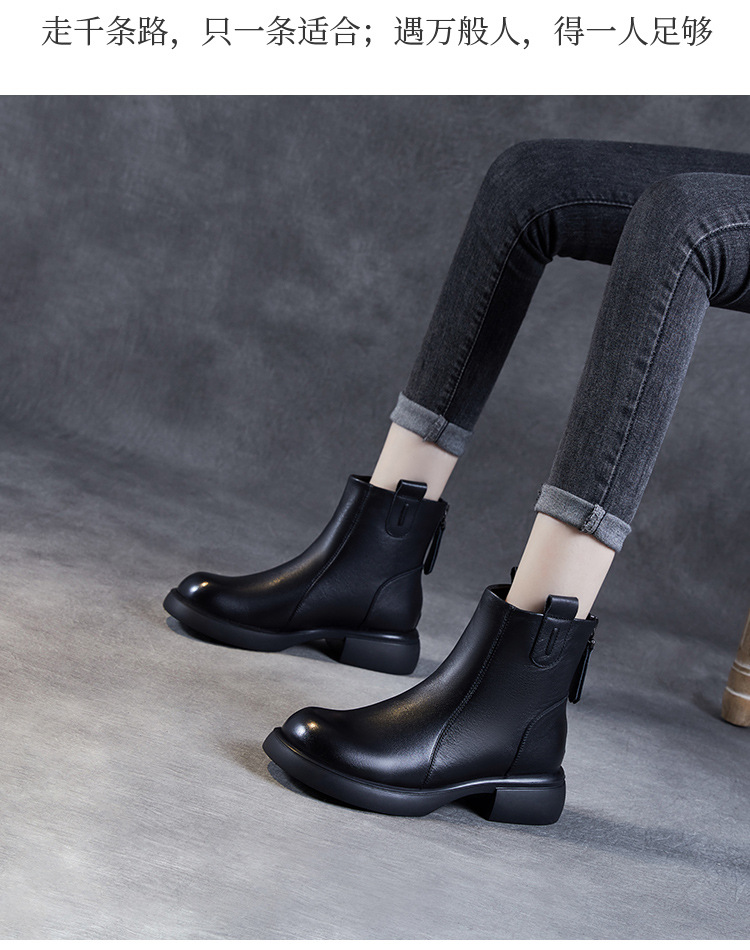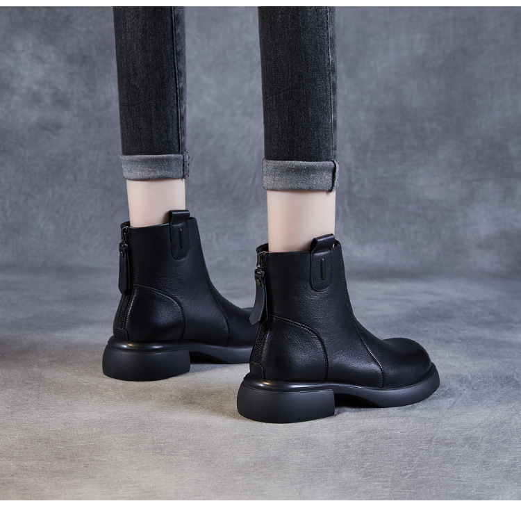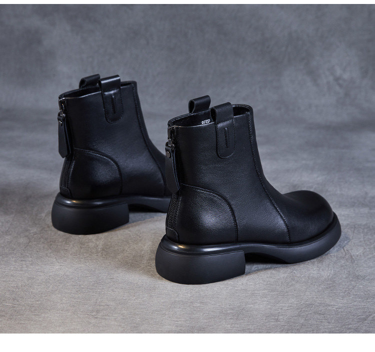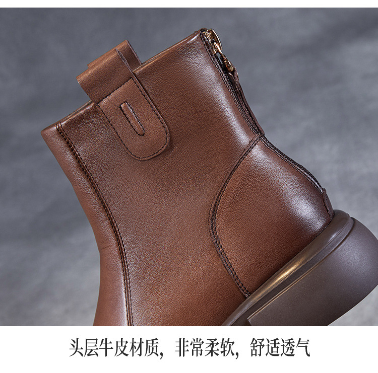 ZM233338秋冬新款英伦风马丁靴女复古真皮软底拉链靴子牛皮切尔西瘦瘦短靴