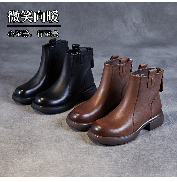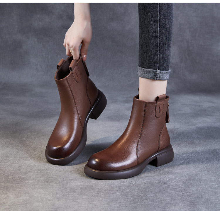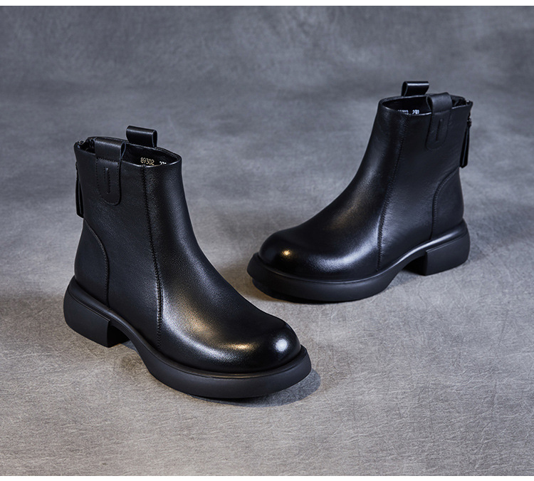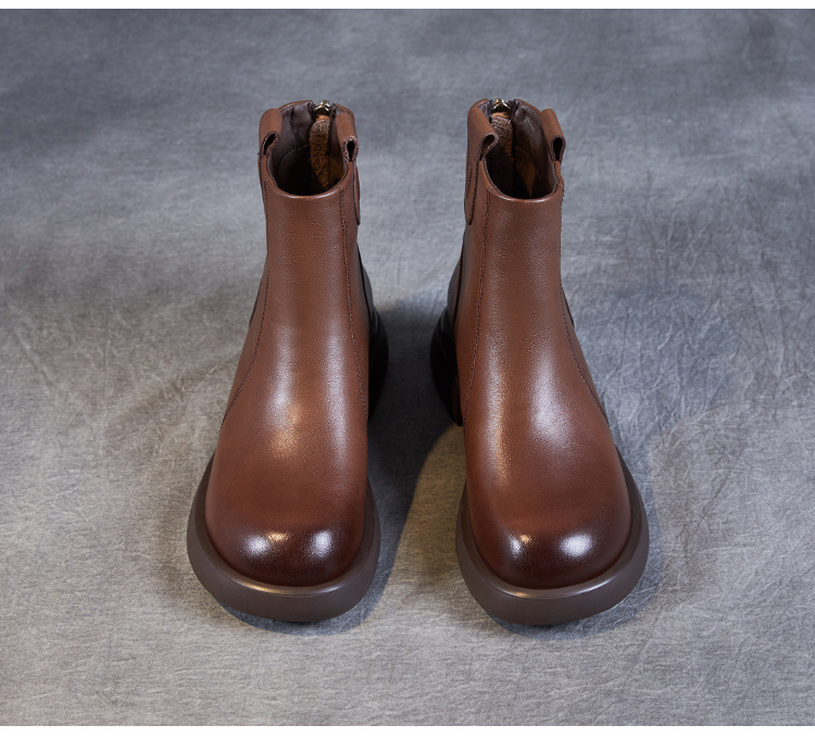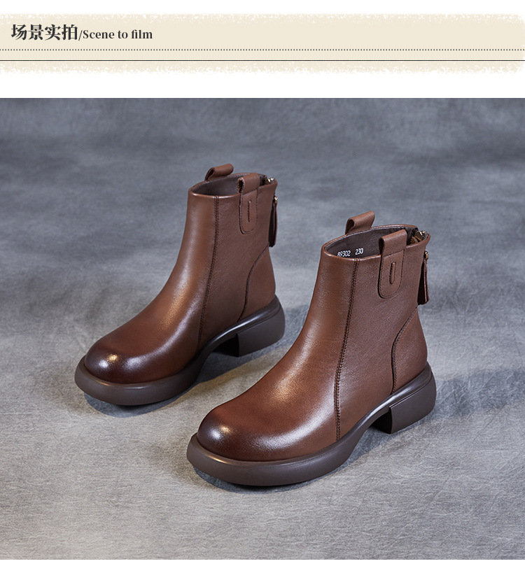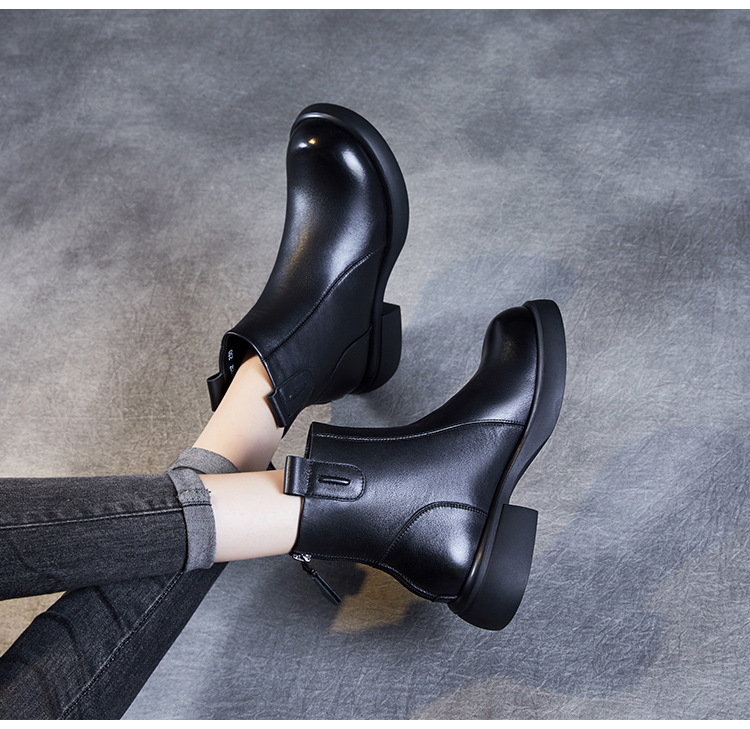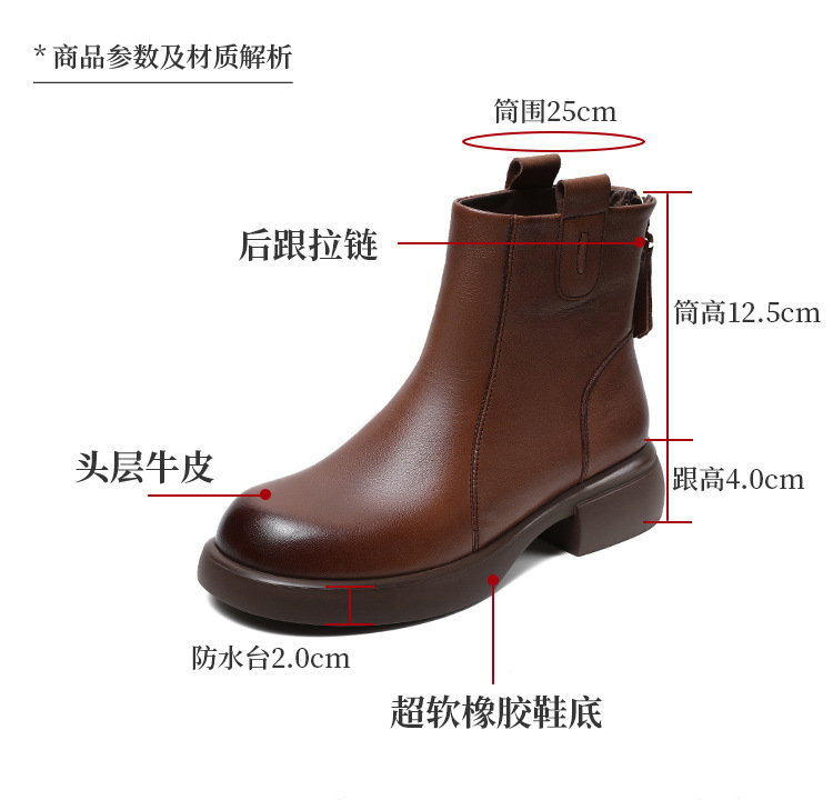 ZM233338秋冬新款英伦风马丁靴女复古真皮软底拉链靴子牛皮切尔西瘦瘦短靴