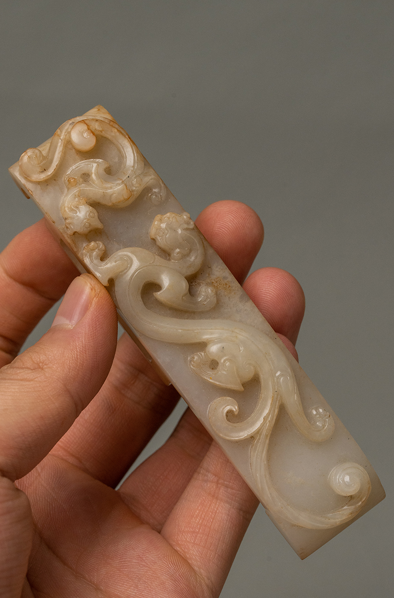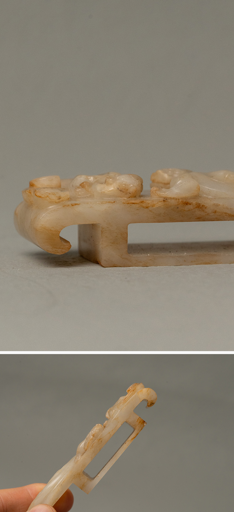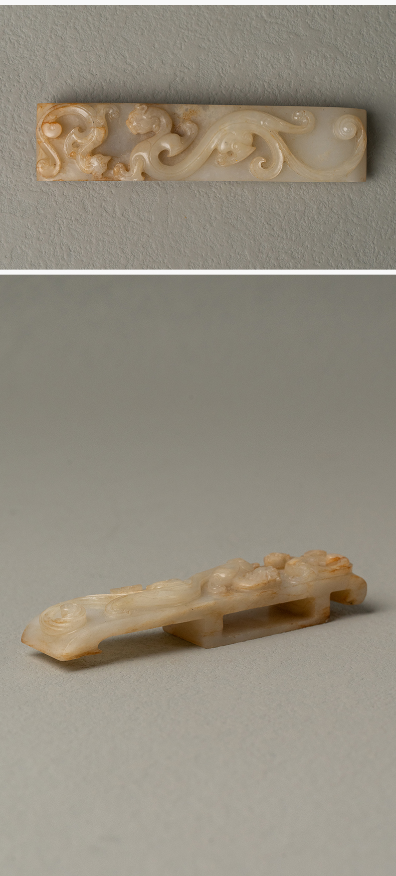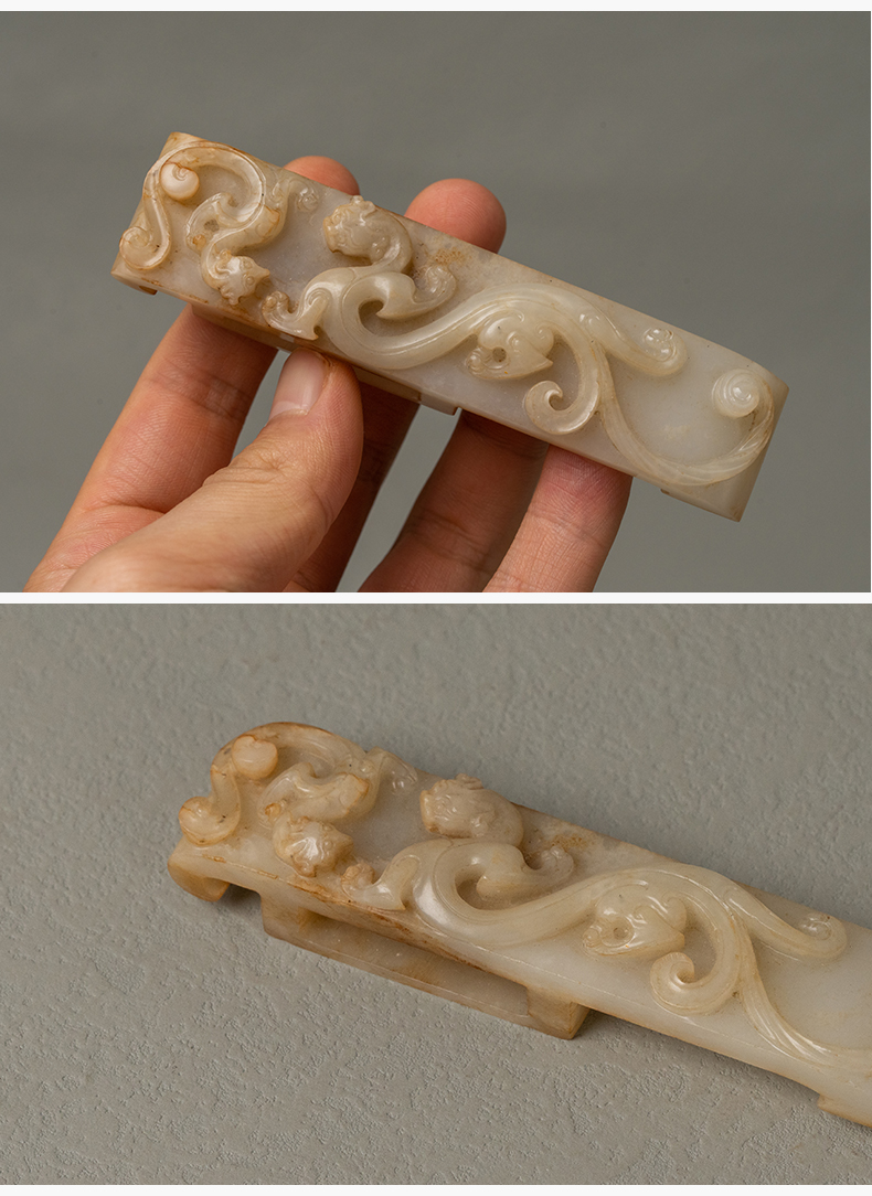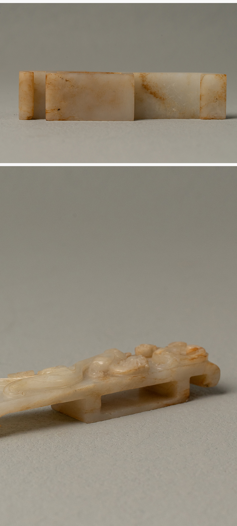 二十世纪 红木嵌云石透雕拐子纹百灵台