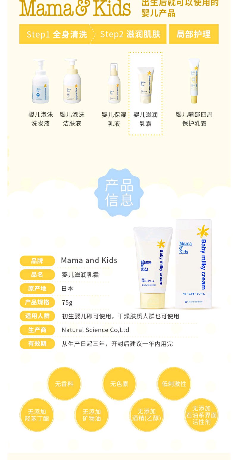 日本 Mamakids cream宝宝儿童面霜75g 无添加