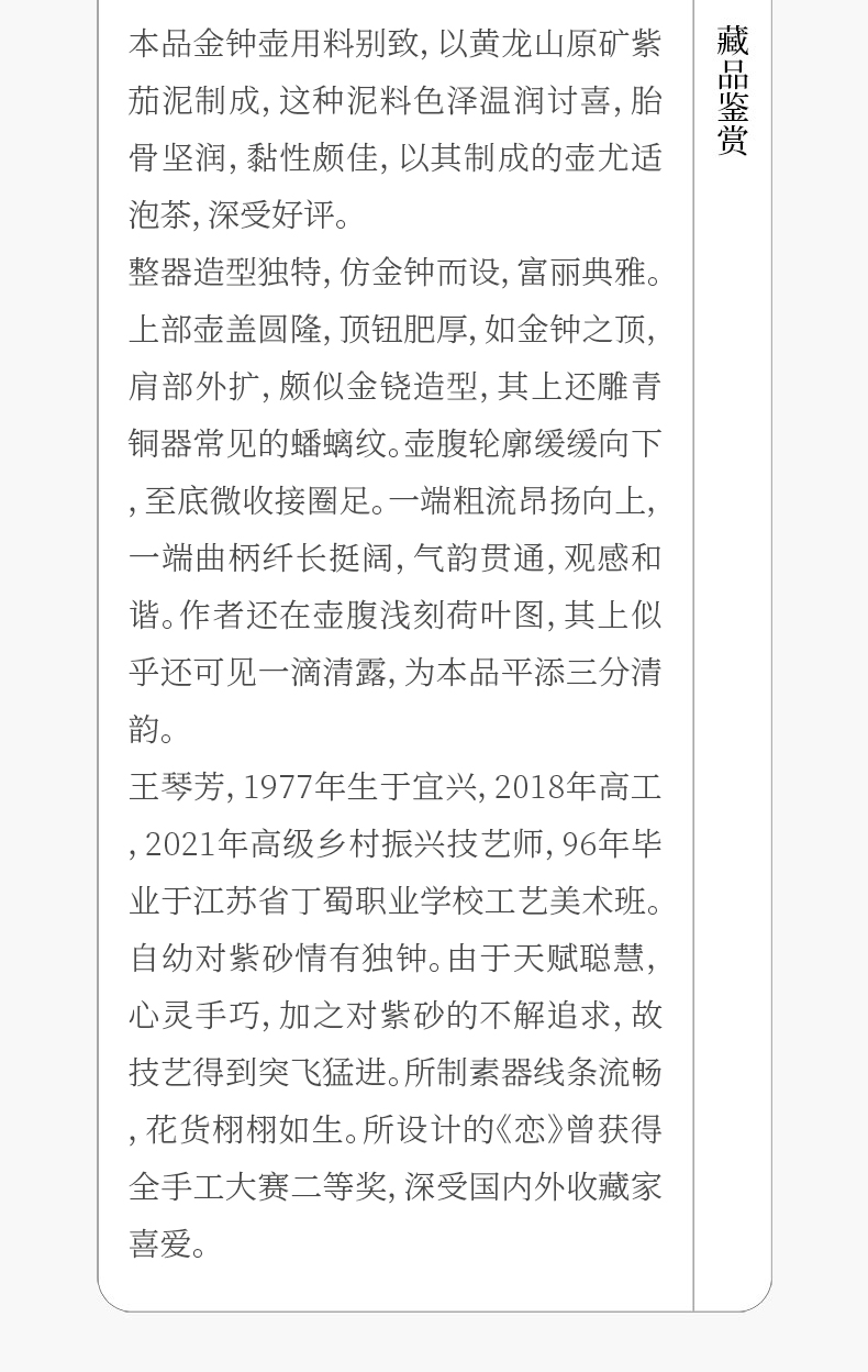 《金钟壶》 王琴芳 高级工艺美术师、2021年评授高级乡村振兴技艺师、实力派女陶艺家