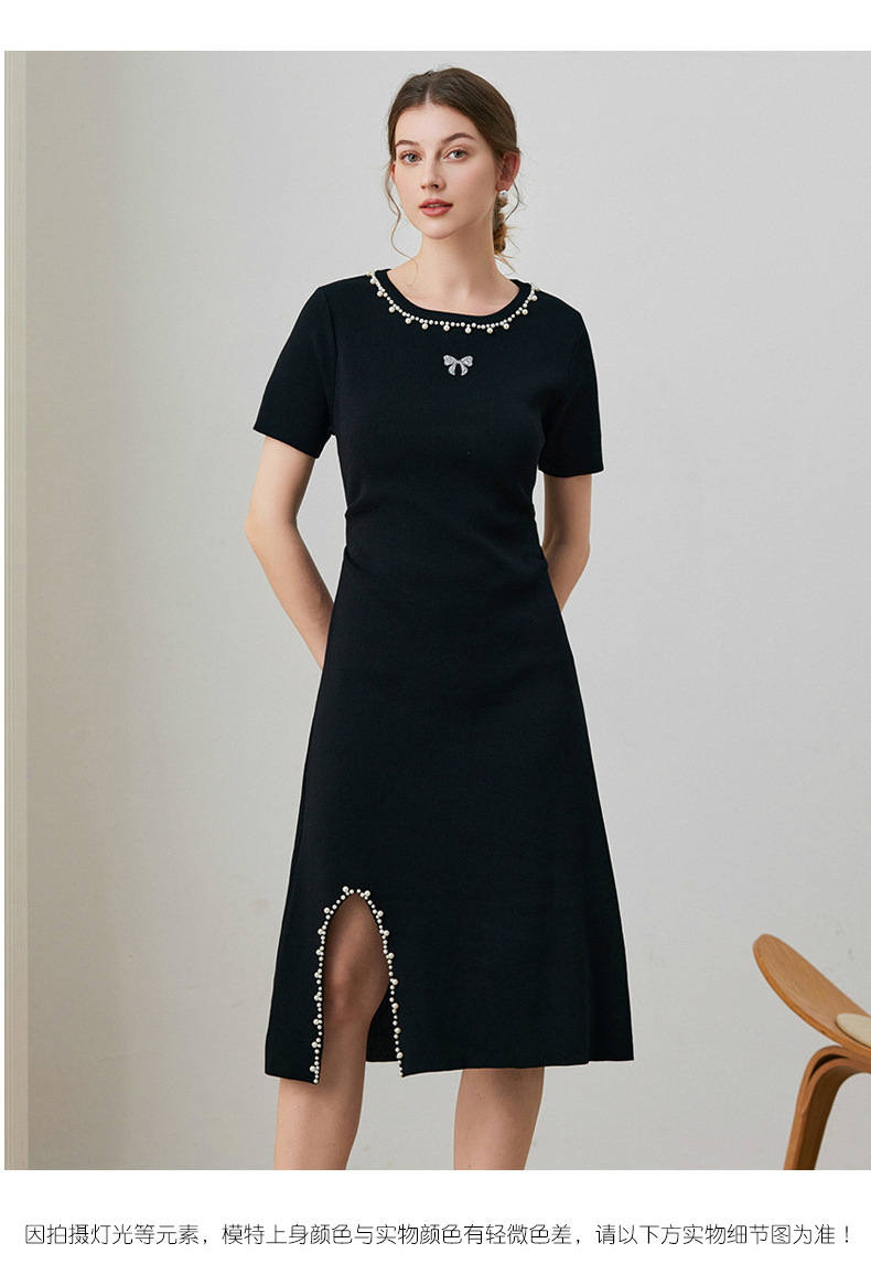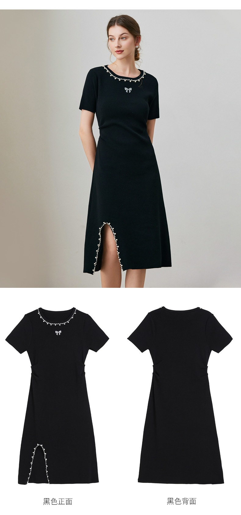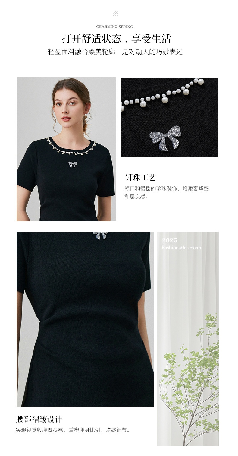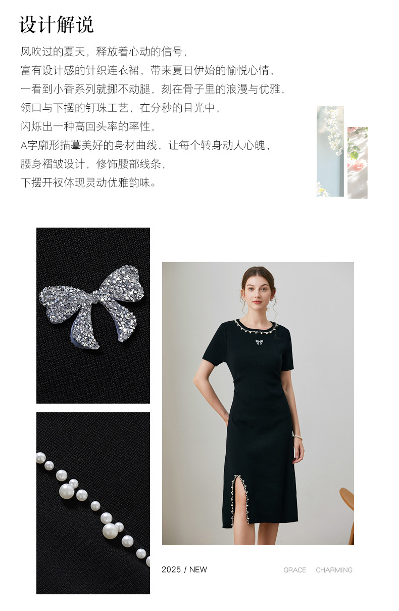 「自」全新升级【铂金会员220/天猫299/差价79】(84548)洛诗琳夏季新款针织连衣裙2025法式设计感高腰钉珠A字裙女