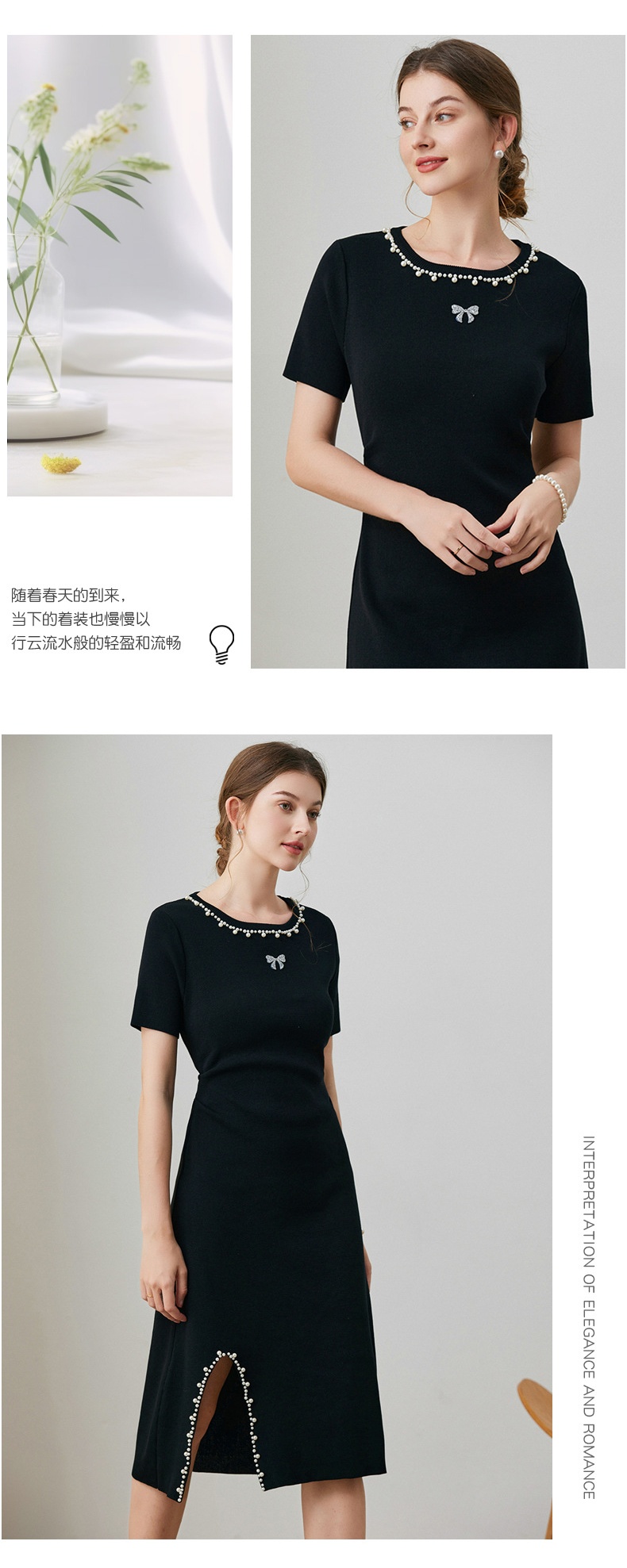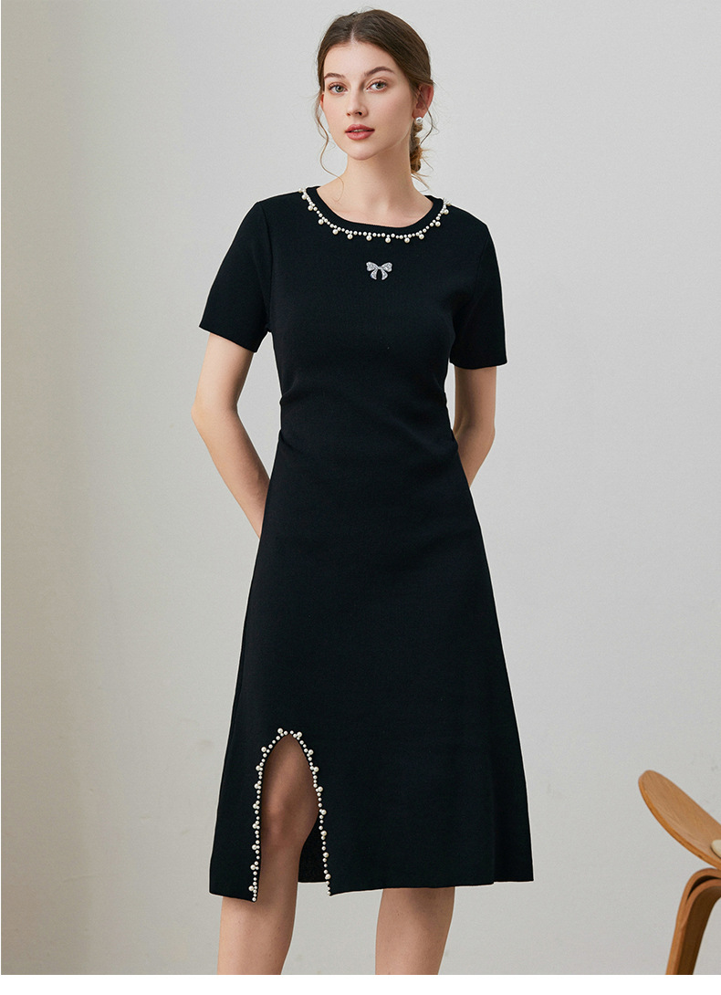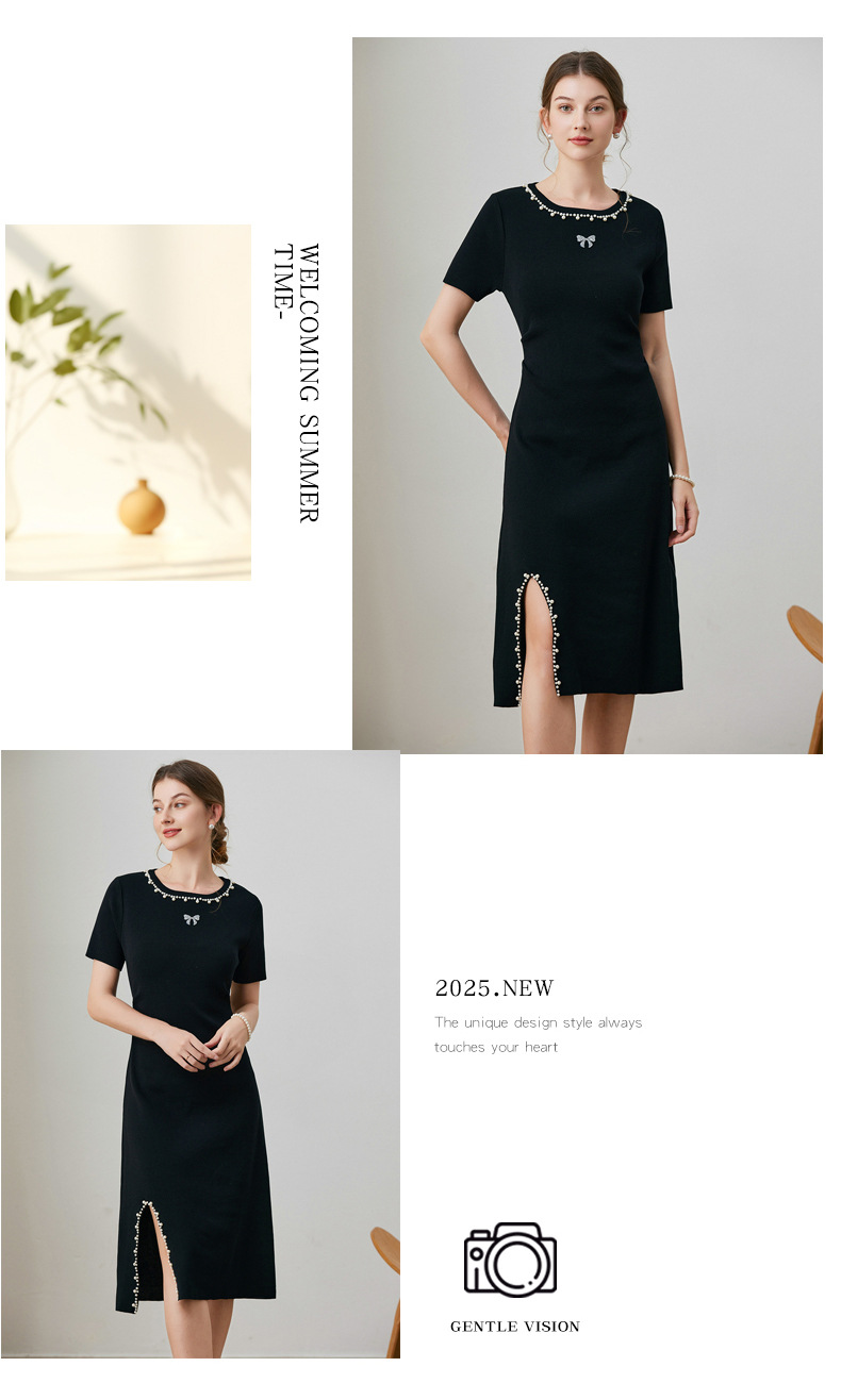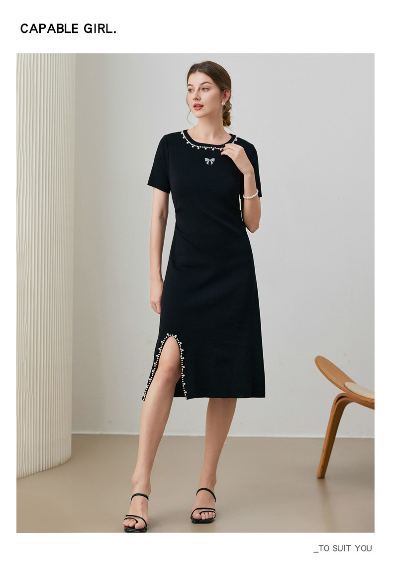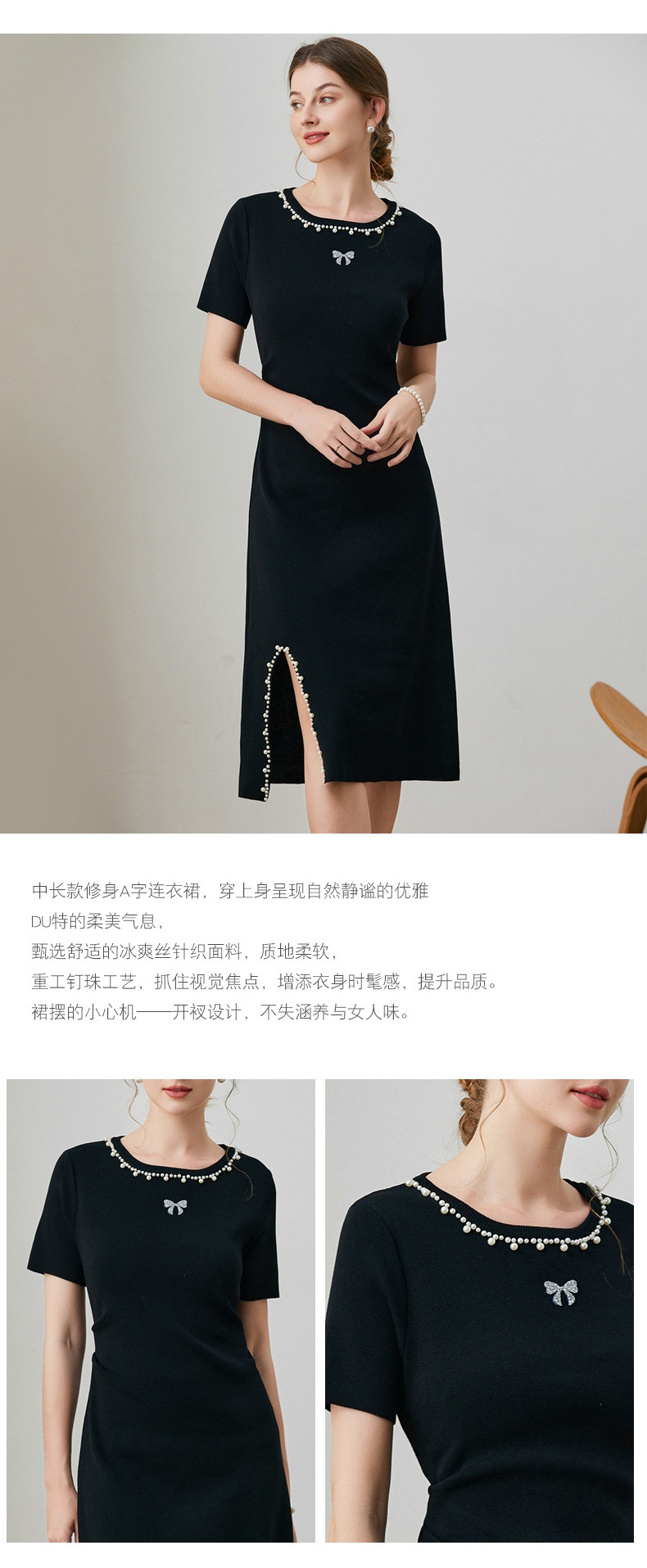 「自」全新升级【铂金会员220/天猫299/差价79】(84548)洛诗琳夏季新款针织连衣裙2025法式设计感高腰钉珠A字裙女
