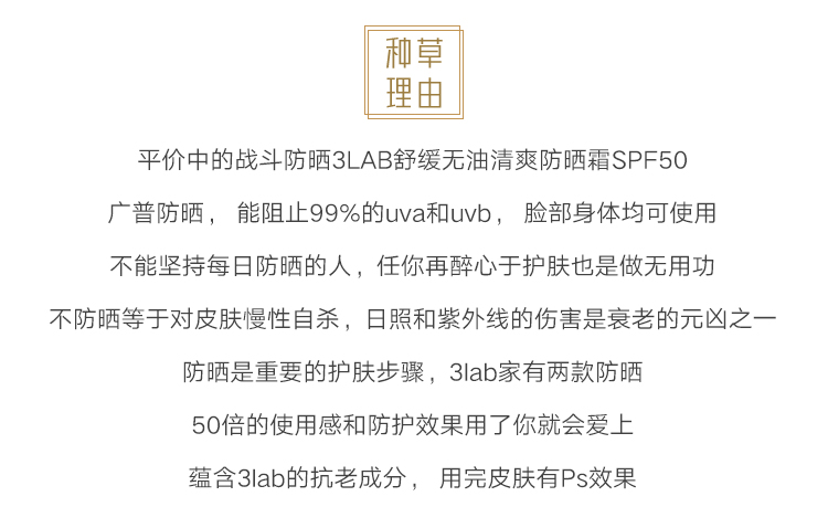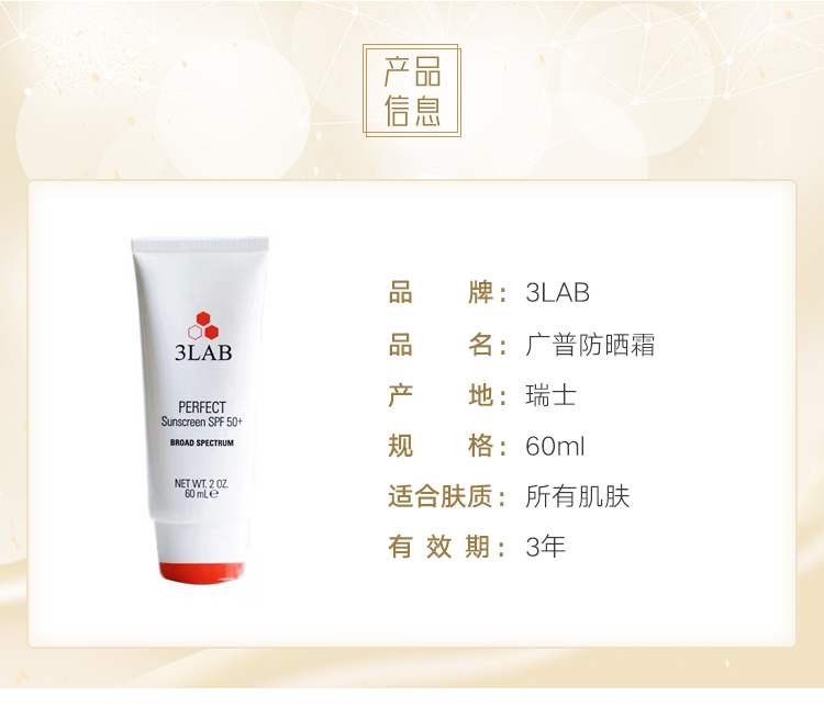 3LAB抗衰广谱防晒SPF50 60ml清爽无油舒爽 不泛白