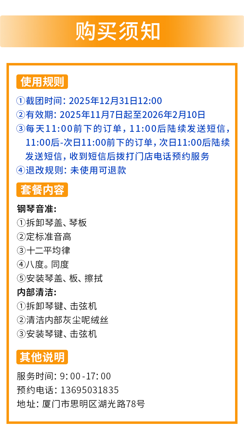 鑫律度「钢琴调音+内部清洁」服务套餐/1份【叼生活】