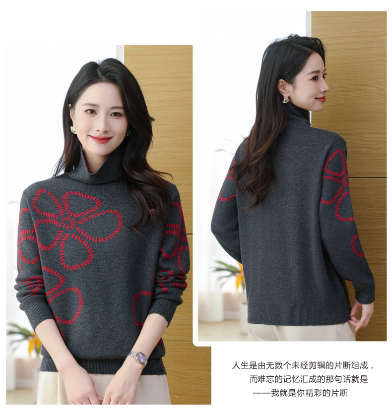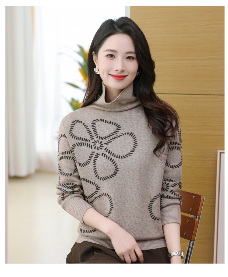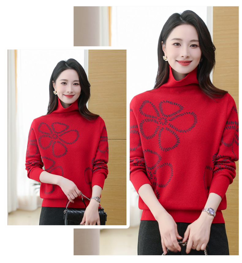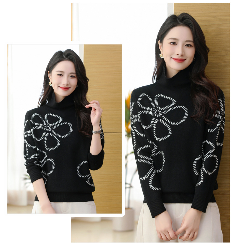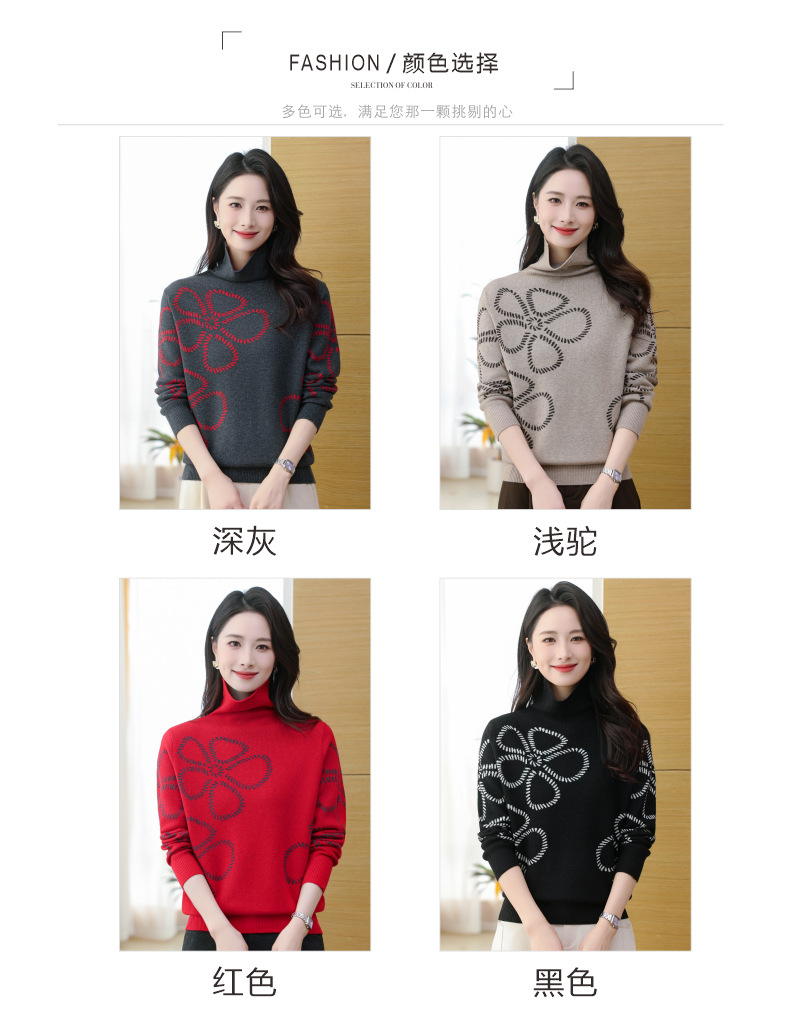 CC-SYX-9033针织衫女堆堆领打底衫2024年秋冬新款上衣时髦洋气大码毛衣