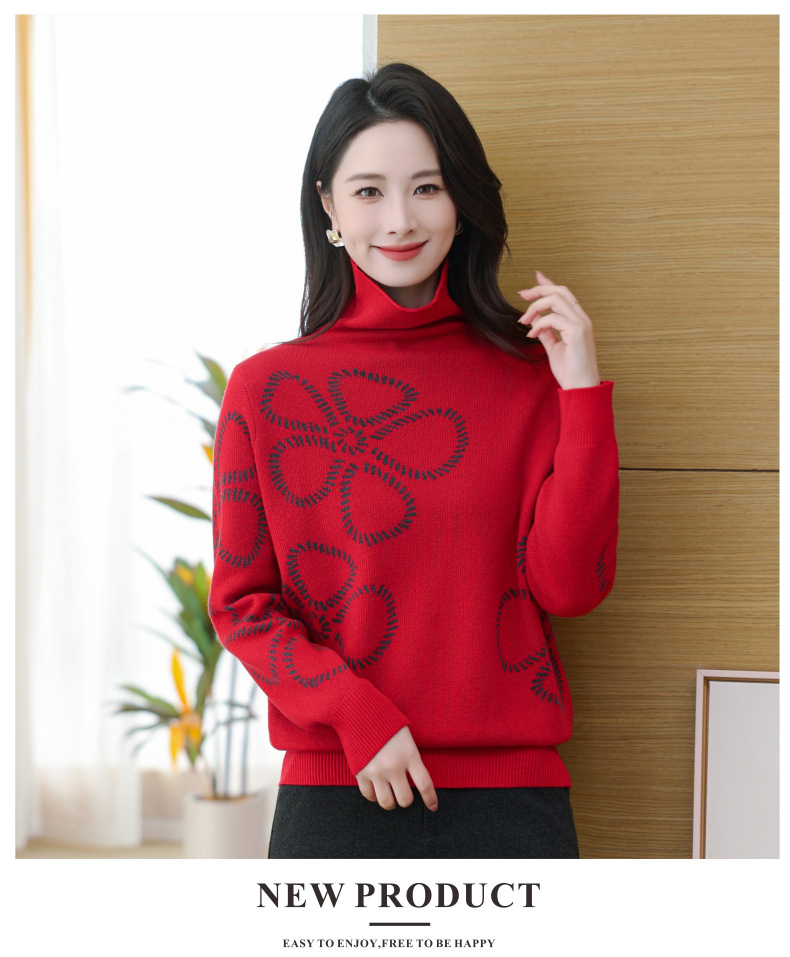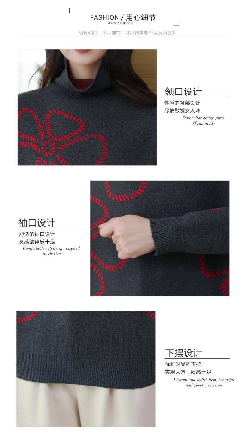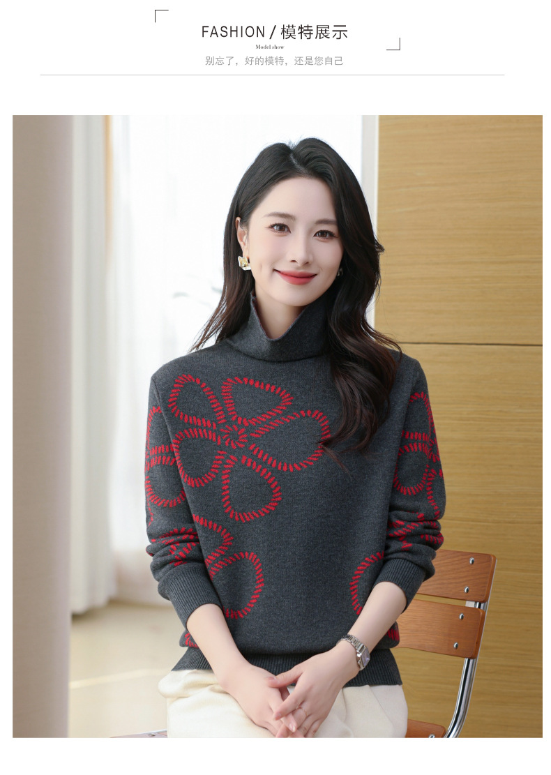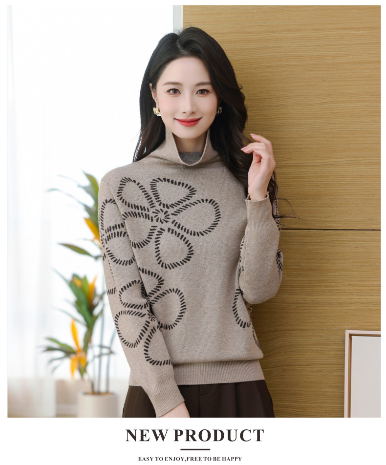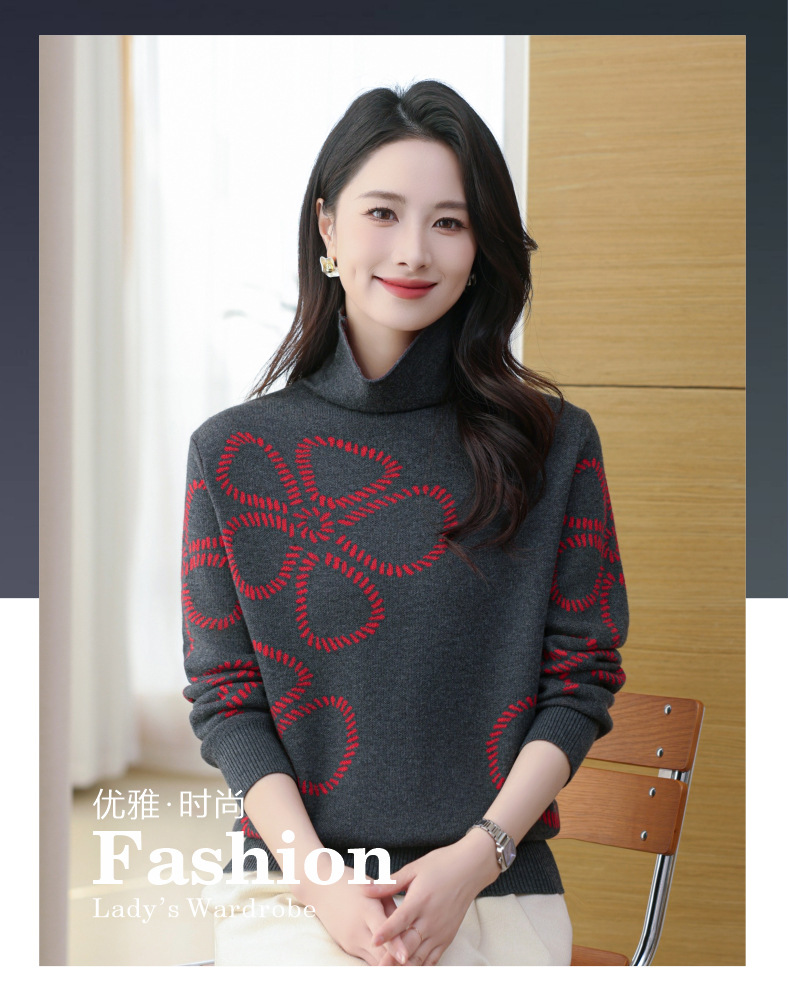CC-SYX-9033针织衫女堆堆领打底衫2024年秋冬新款上衣时髦洋气大码毛衣