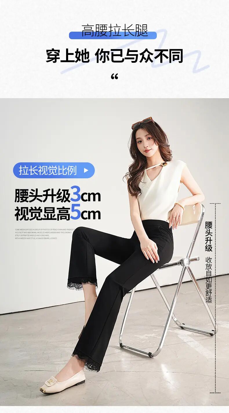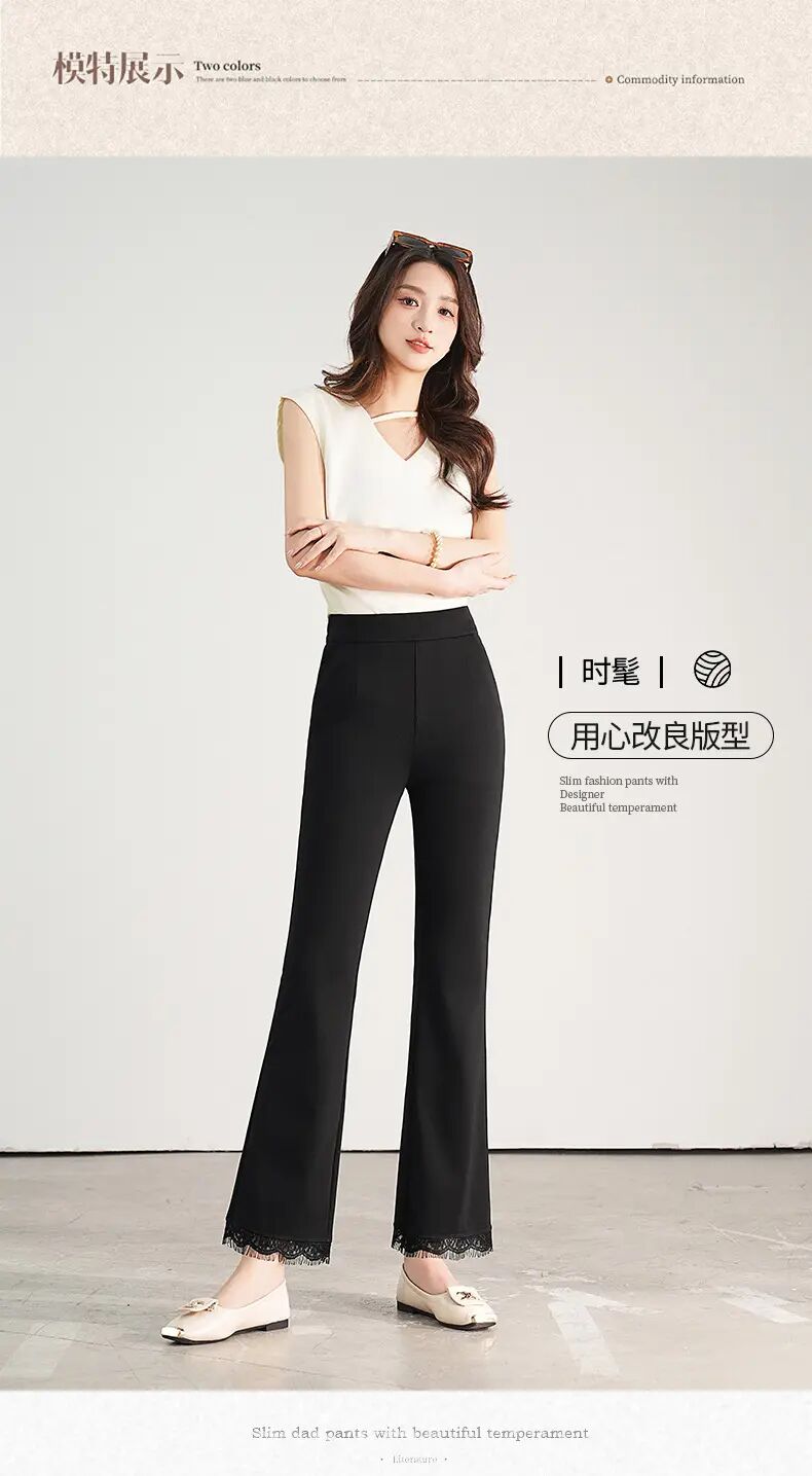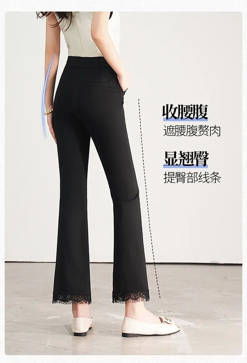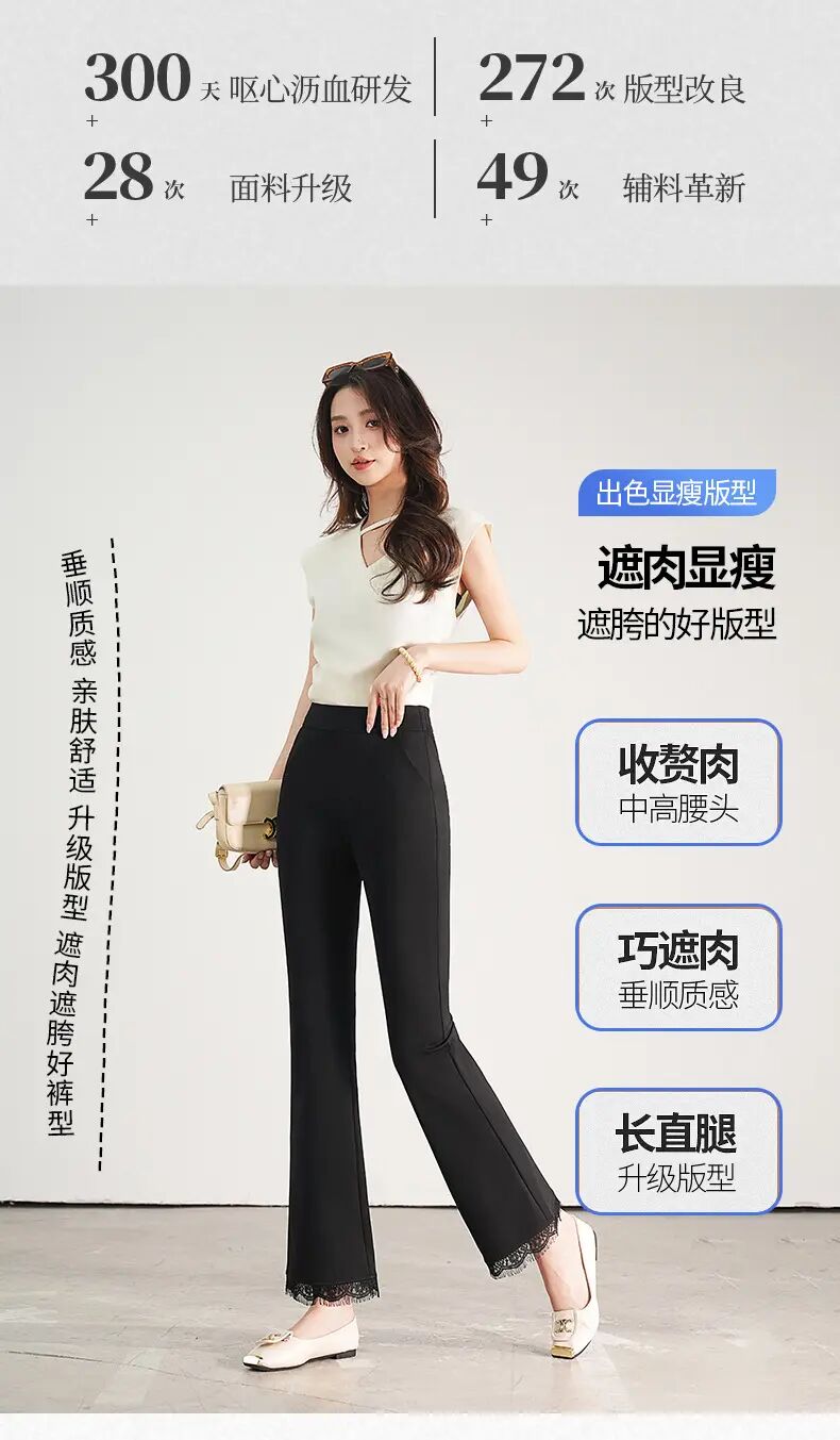 【自】全新升级【铂金会员146/天猫199/差价53】(00420) 洛诗琳2025春夏新款高腰垂感显瘦直筒黑色西装微喇裤长裤