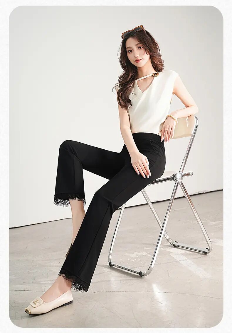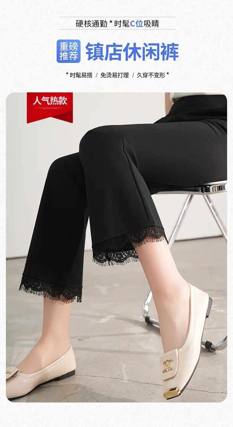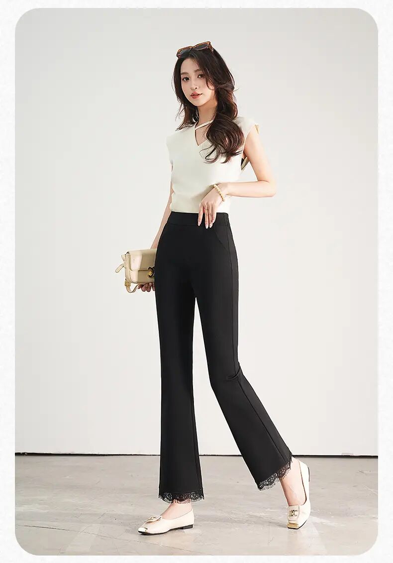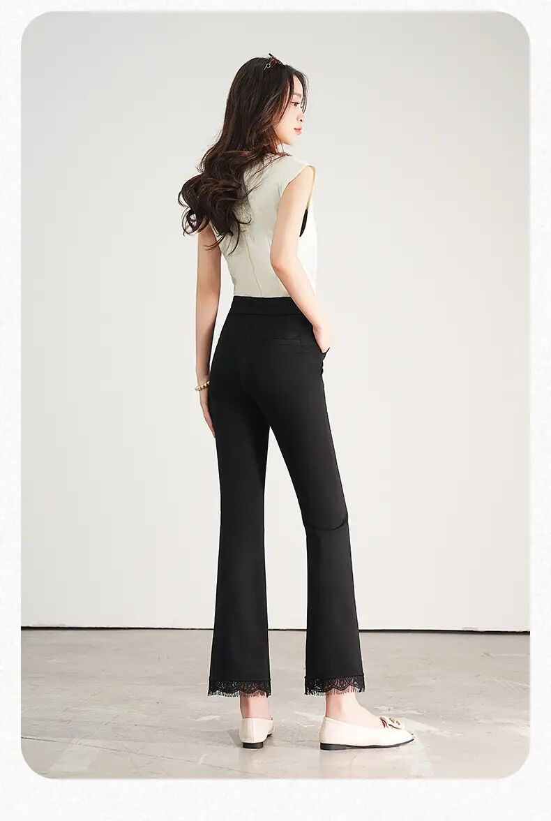 【自】全新升级【铂金会员146/天猫199/差价53】(00420) 洛诗琳2025春夏新款高腰垂感显瘦直筒黑色西装微喇裤长裤