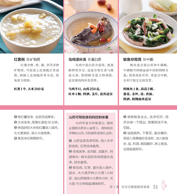 乌鸡中蛋白质含量高,氨基酸种类齐全,还富含维生素与微量元素,胆固醇含量又特别低,适宜准妈妈补充营养。