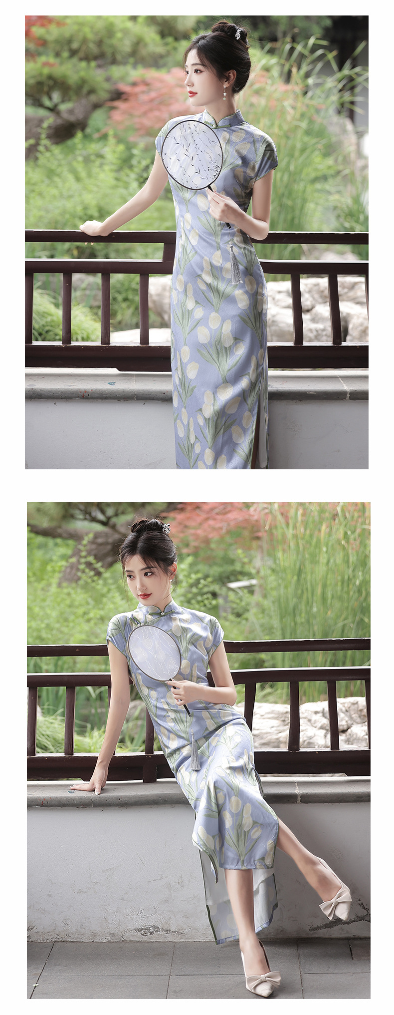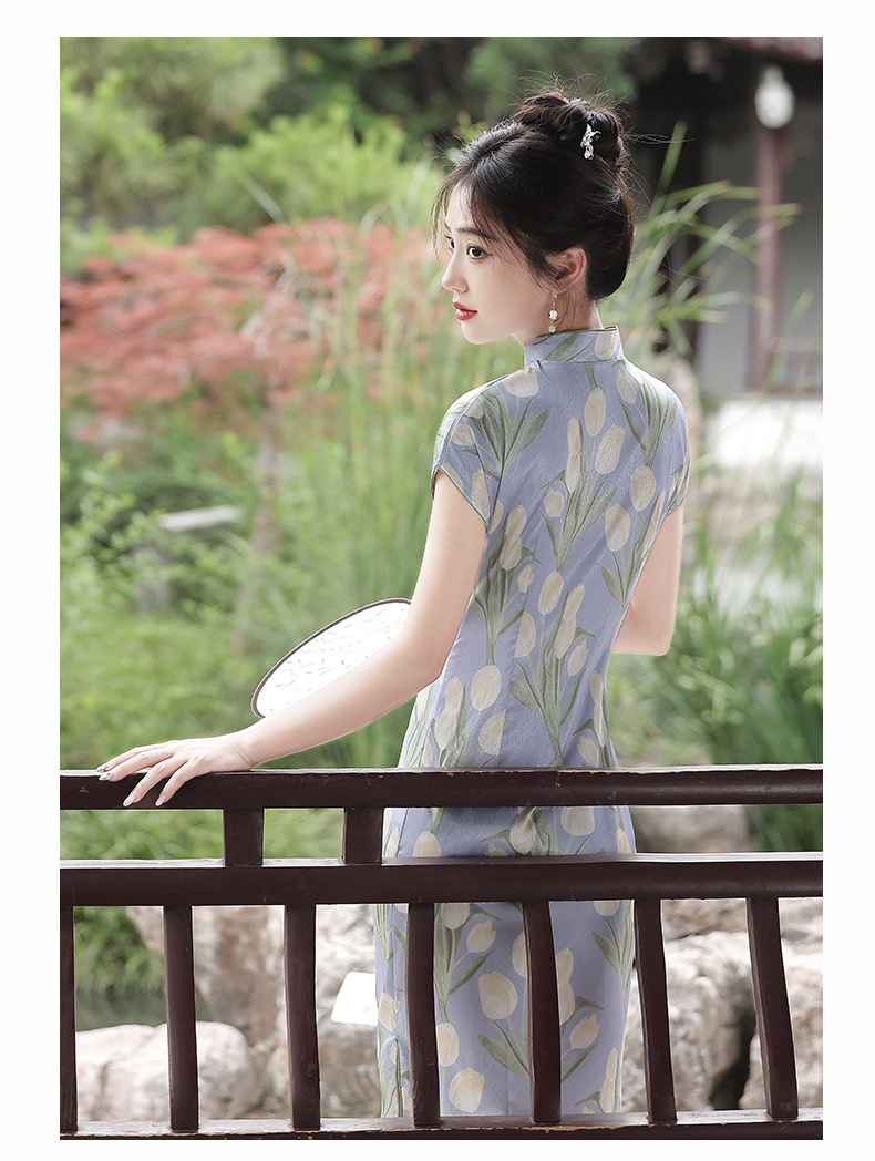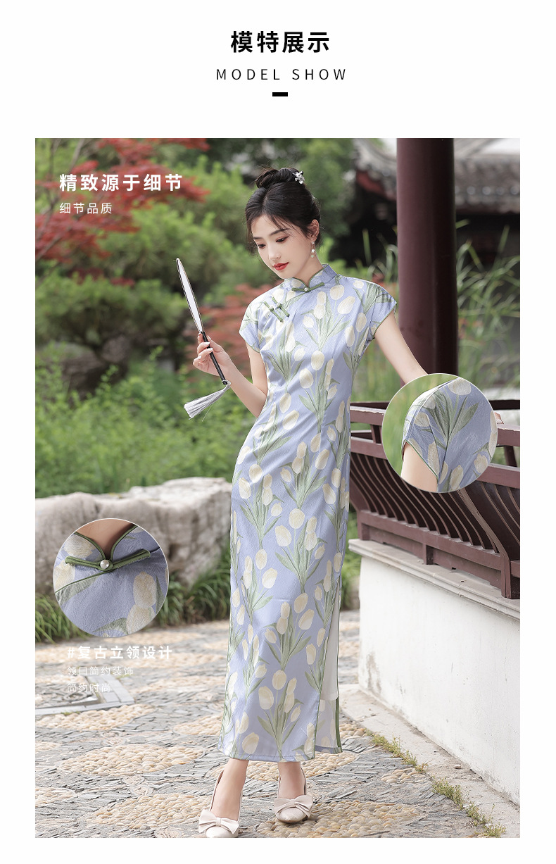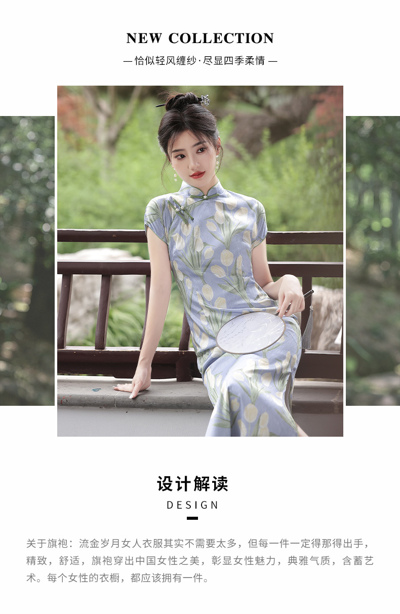 新款改良短袖年轻款,郁金香半开襟侧拉链旗袍YG-2259
