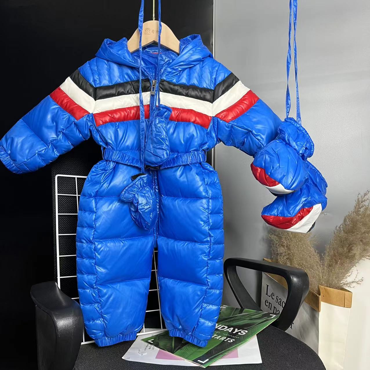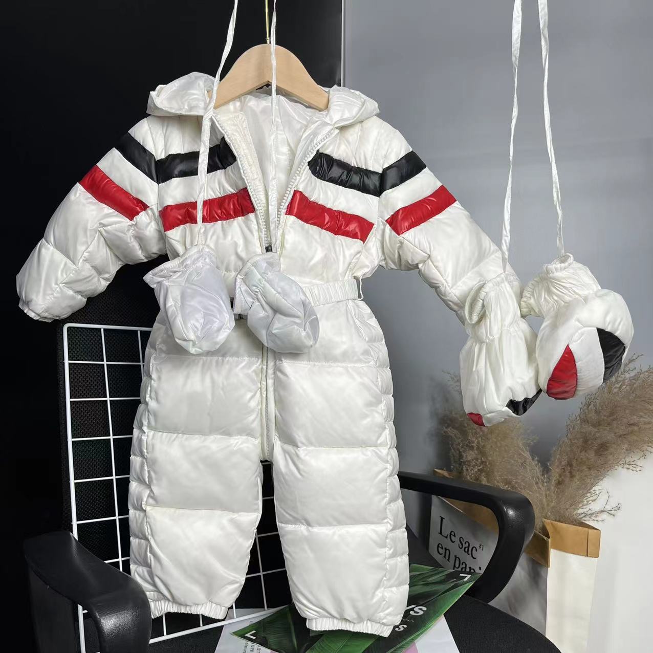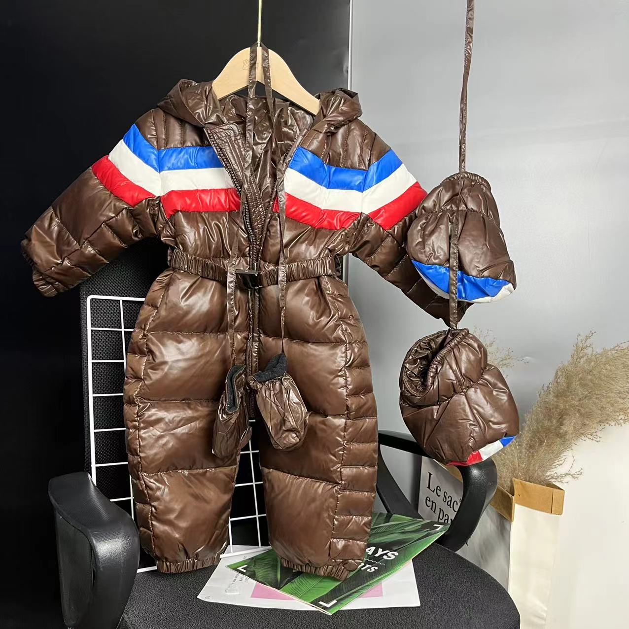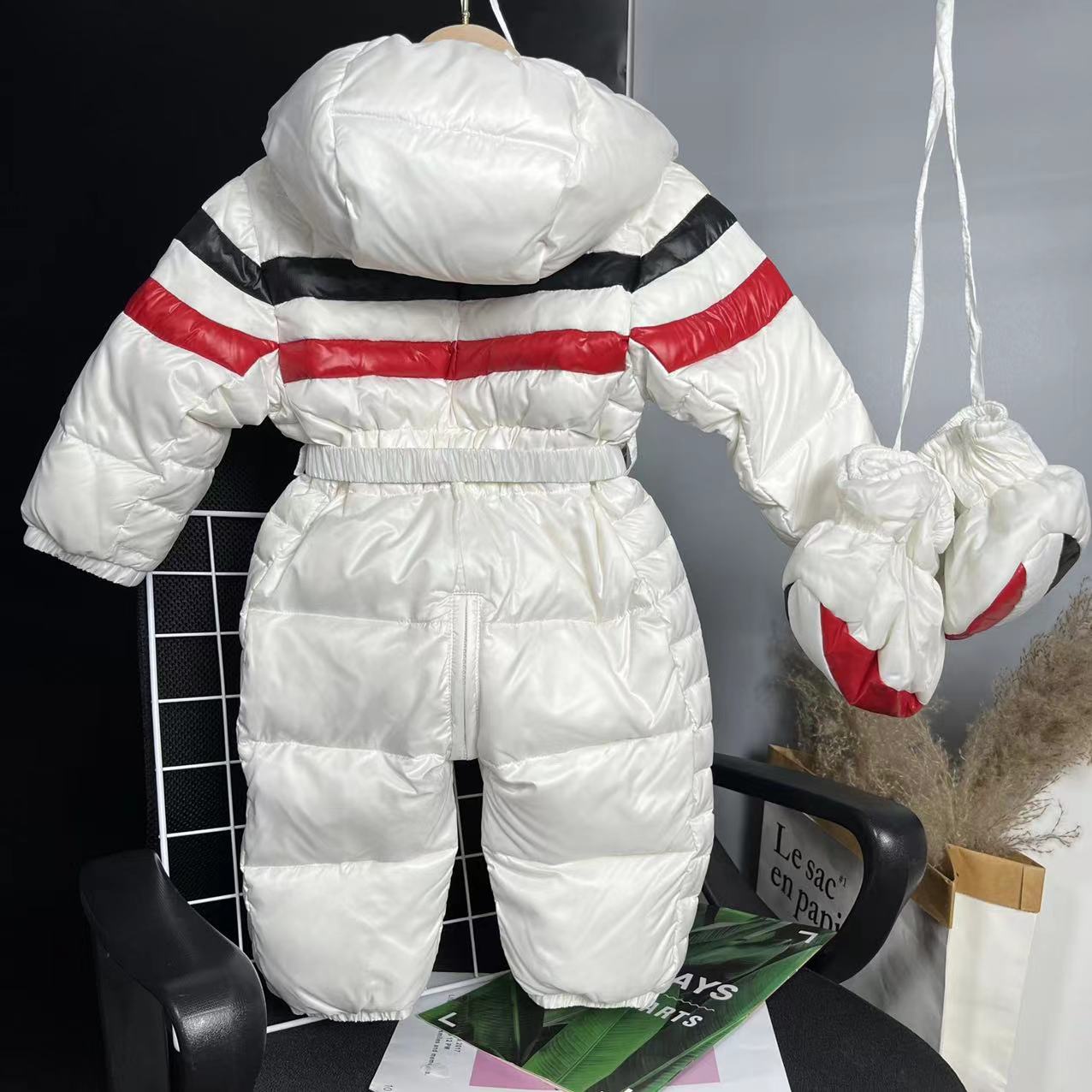 很厚实的羽绒连体,北方外出,南方怕冷的小朋友,来上一件,腿子上很宽大,内里加尿不湿都完全OK,品牌订制款拉链+品牌订制内衬,代手套脚套,全副武装,如果南方正准备去北方玩儿雪的小朋友,这层保护一定少不了了!