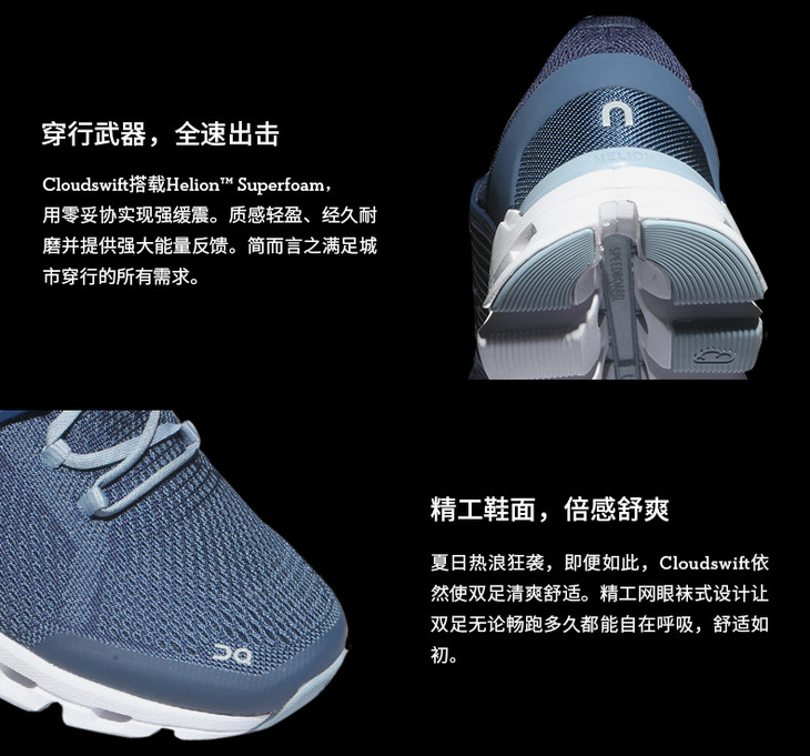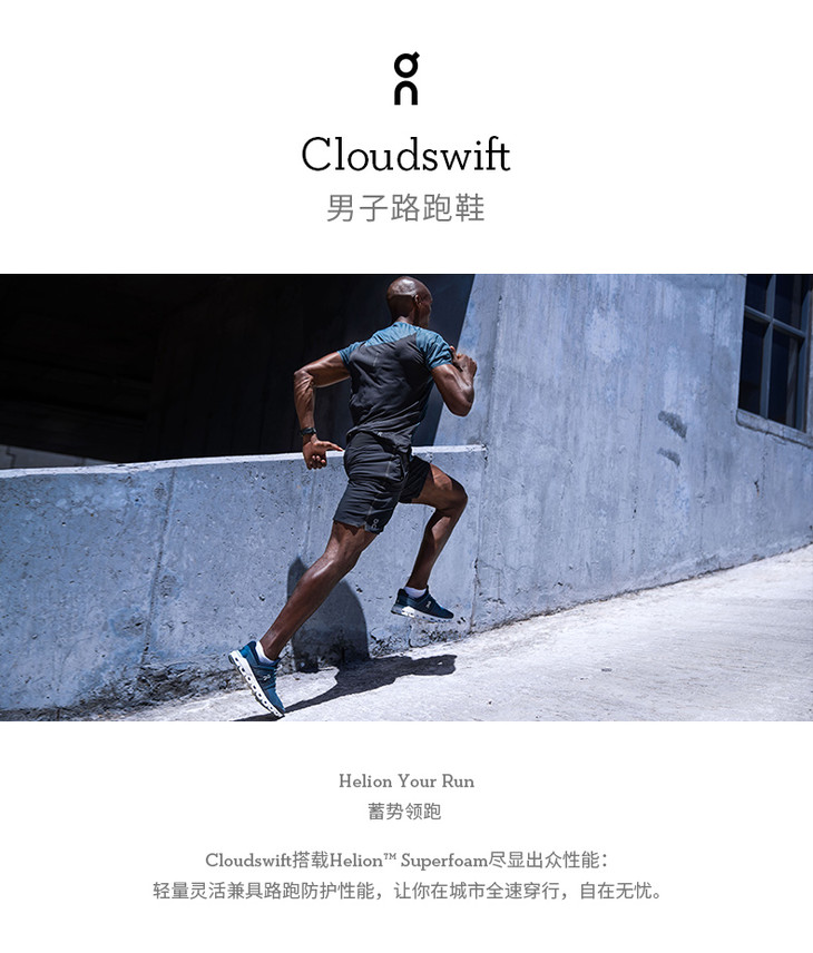 OnRunning 耐久稳定男款轻量路跑鞋 Cloudswift跑马拉松比赛越野跑步耐力跑训练慢跑健身徒步运动