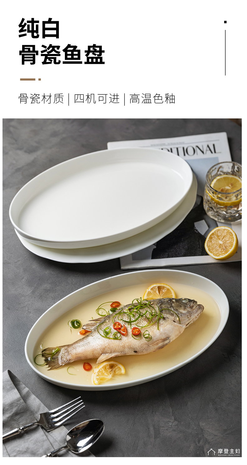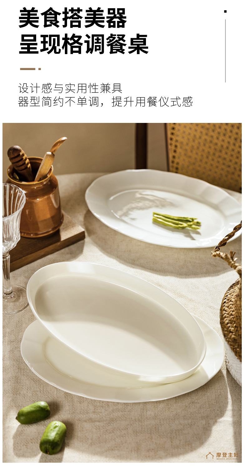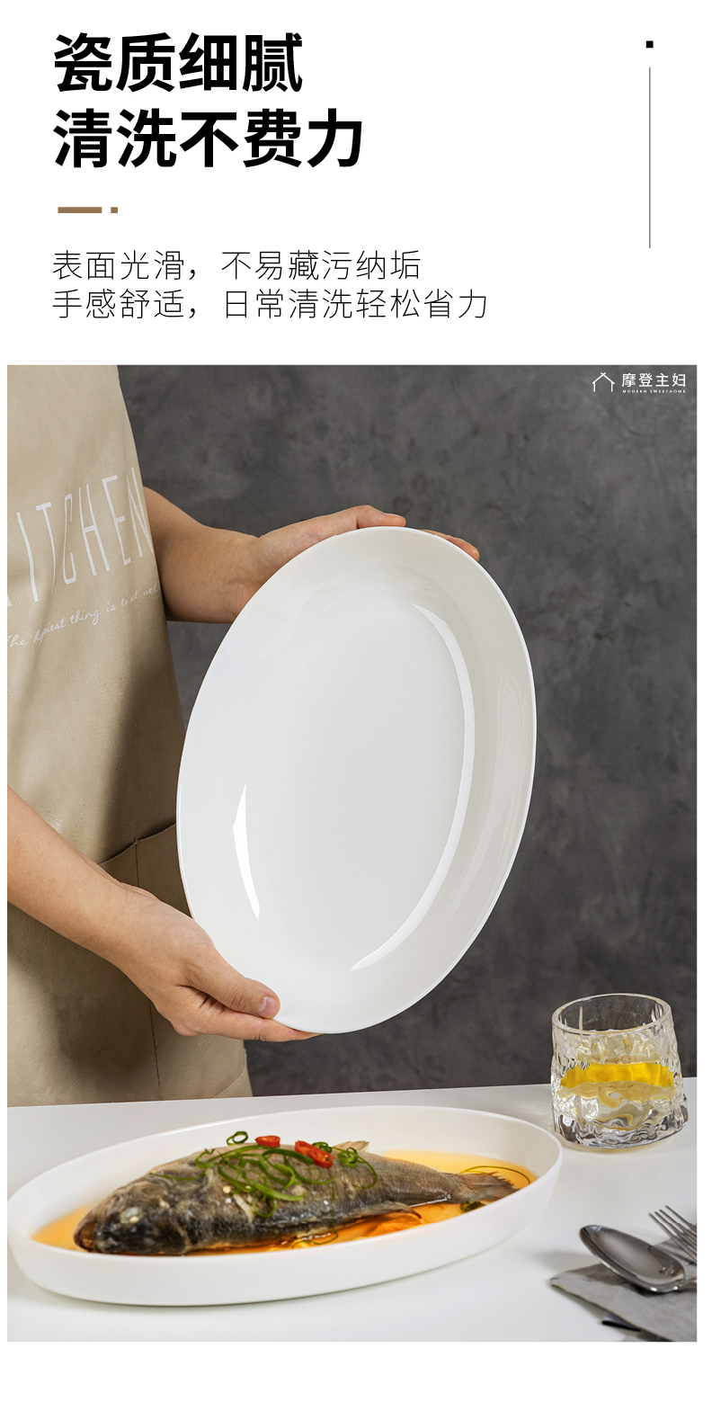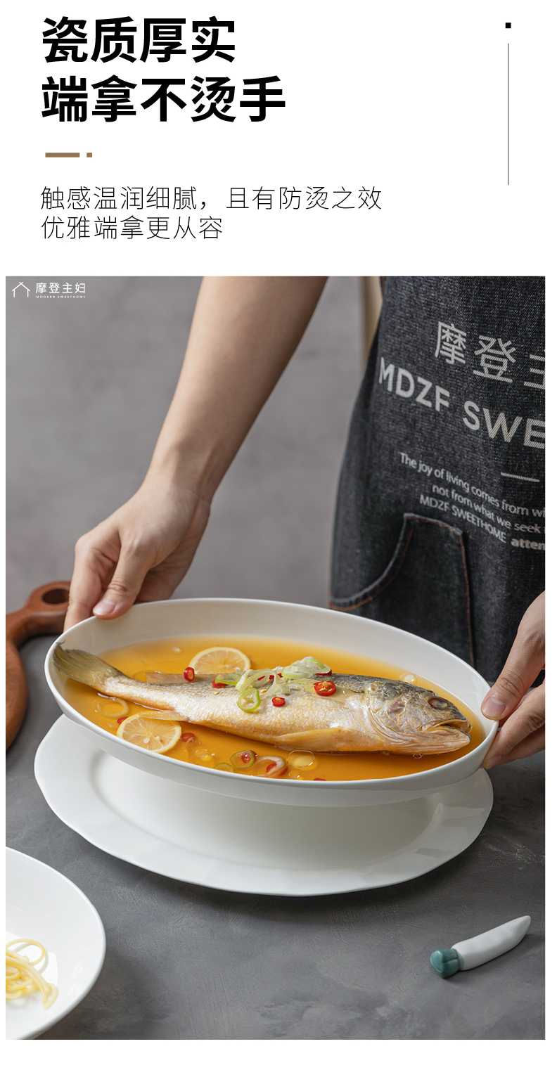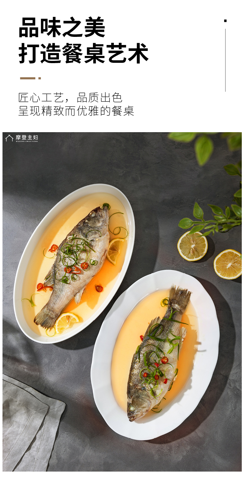 摩登主妇陶瓷鱼盘蒸鱼专用盘子家用菜盘2024新款高颜值鱼碟深盘