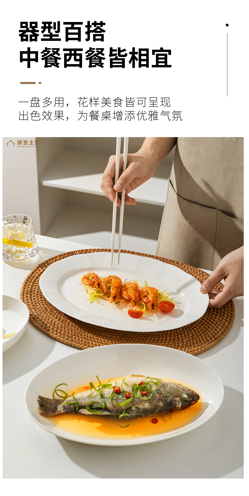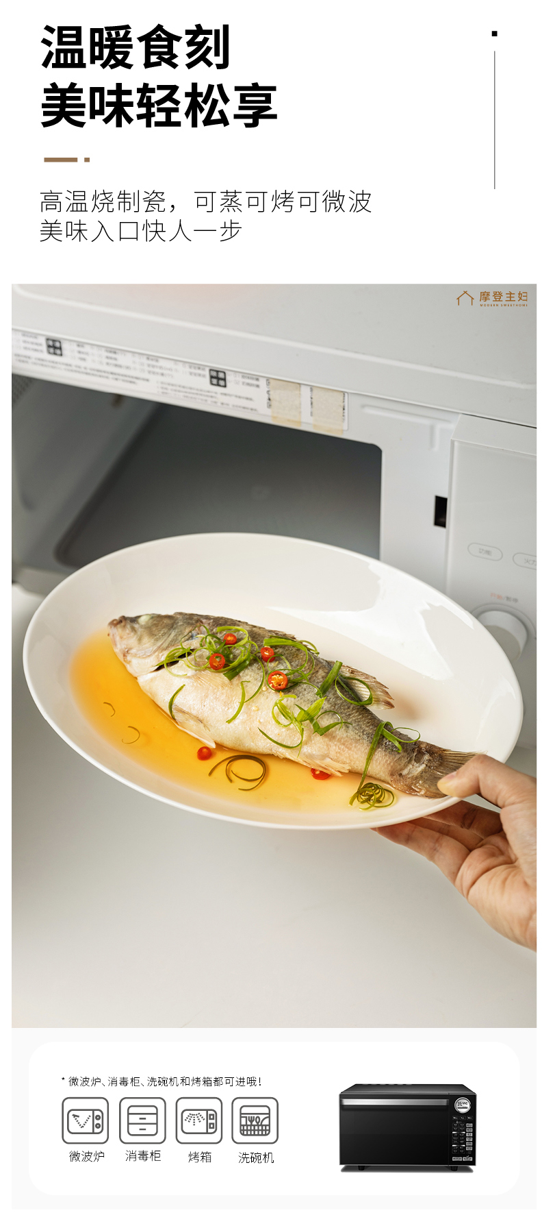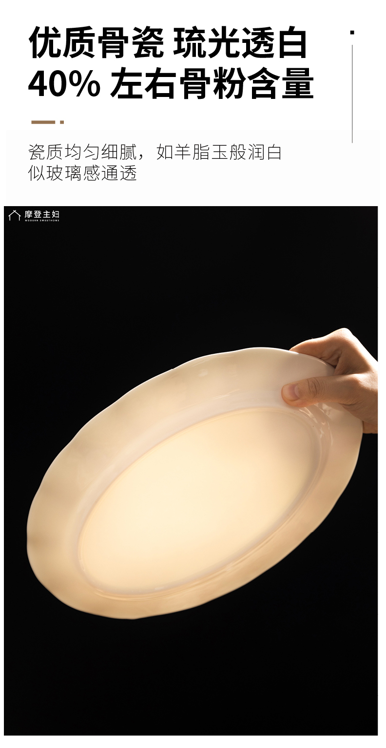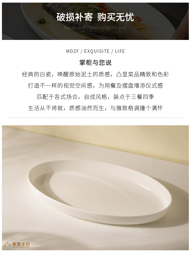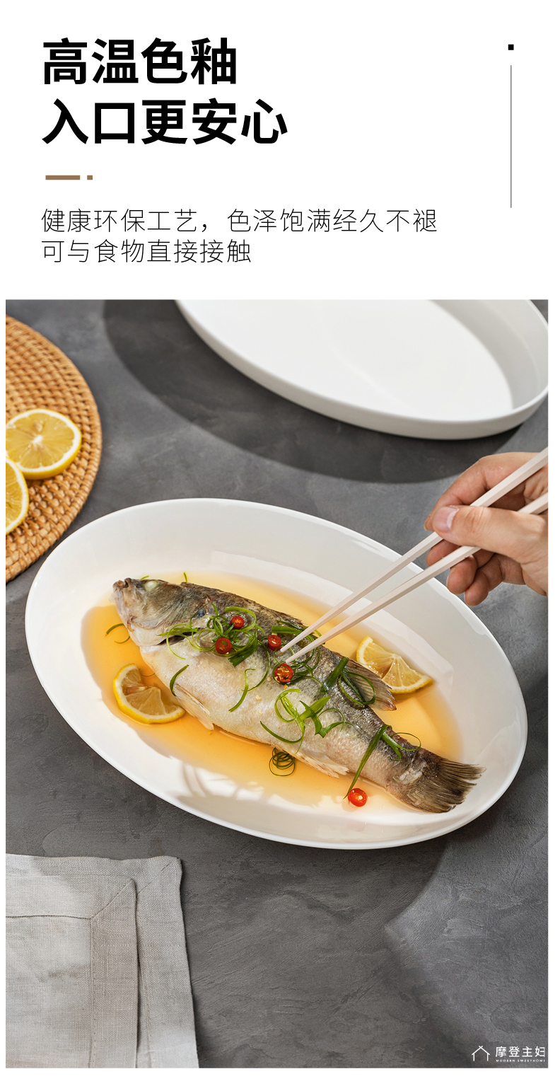 摩登主妇陶瓷鱼盘蒸鱼专用盘子家用菜盘2024新款高颜值鱼碟深盘