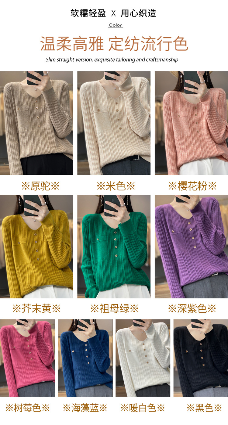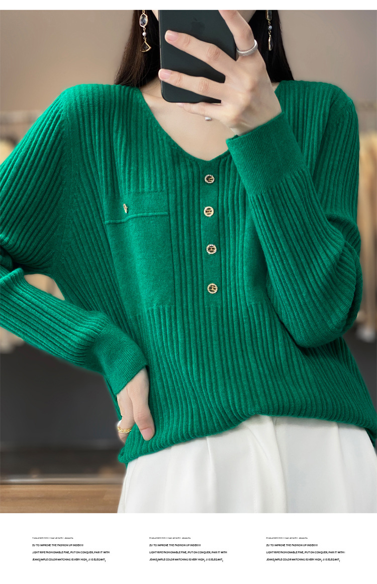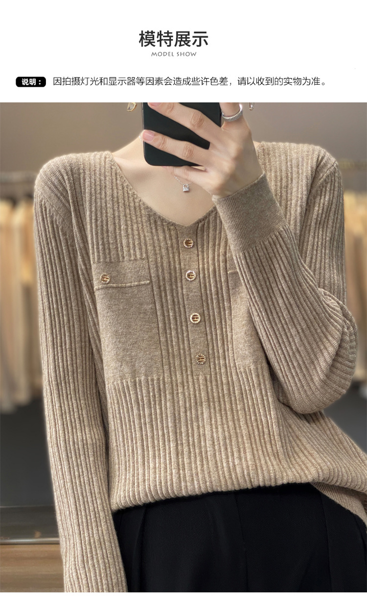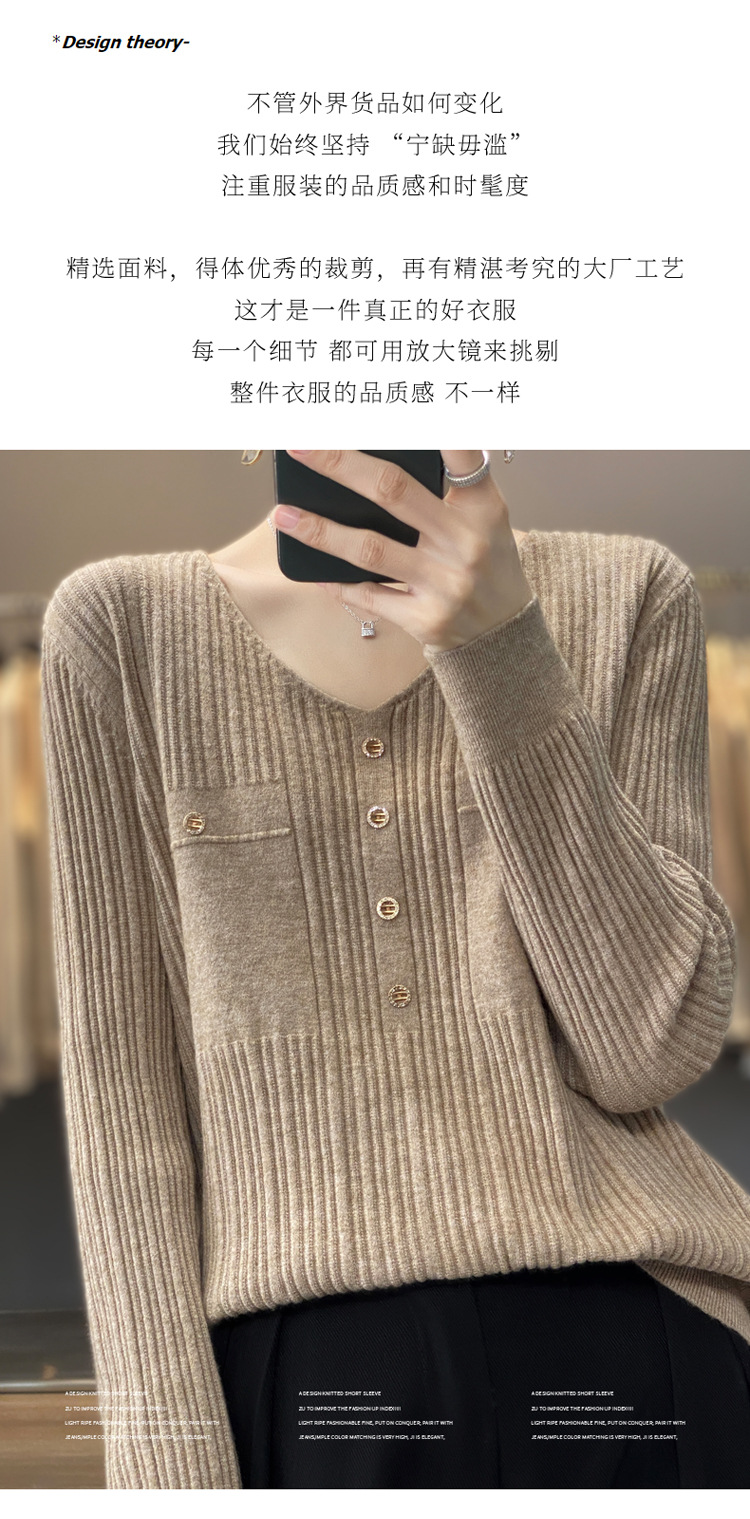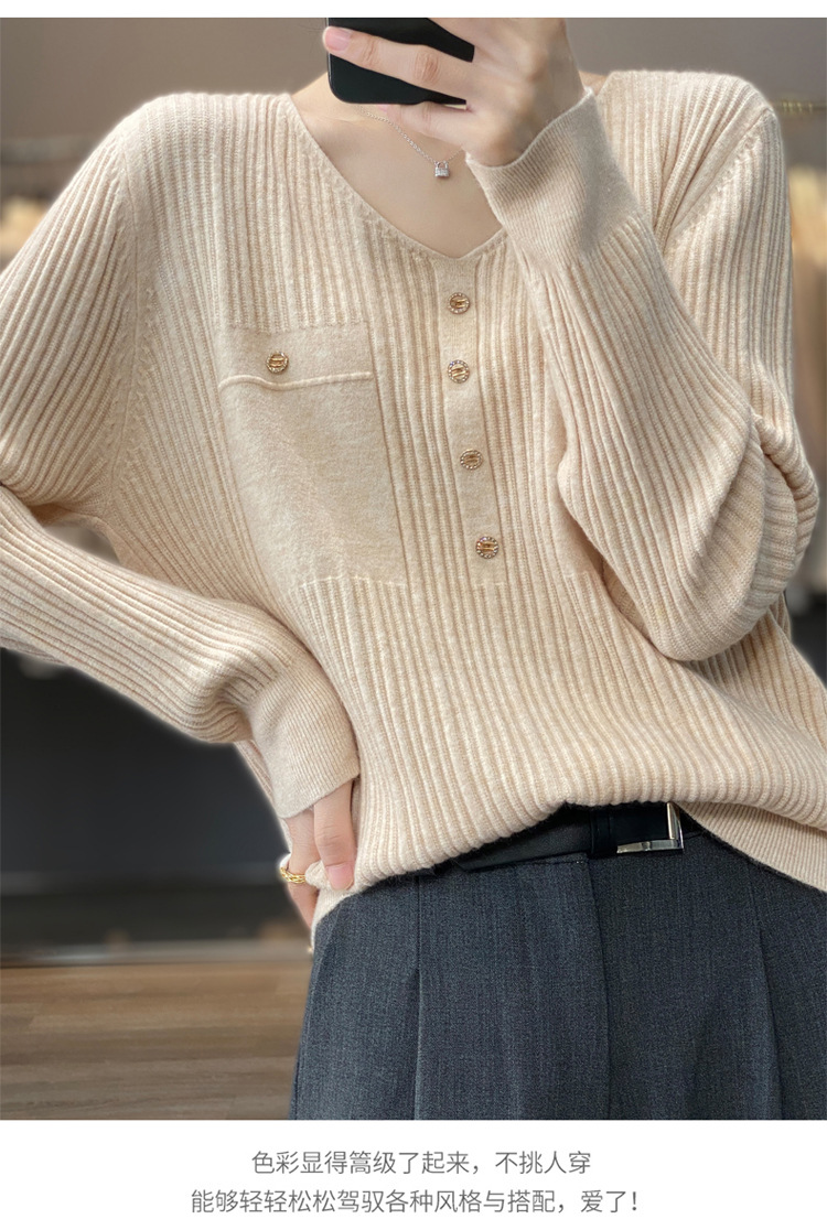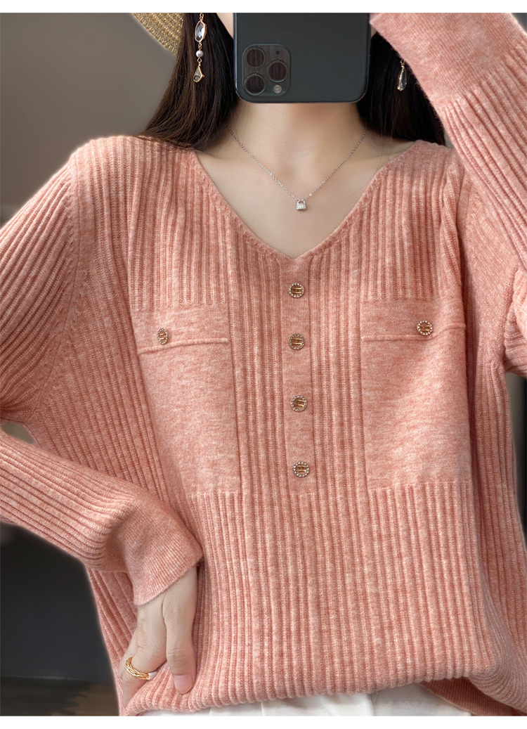 丁摩 羊毛混纺春秋新款V领针织衫女外穿毛衣宽松显瘦上衣内搭打底衫潮5ZF-063