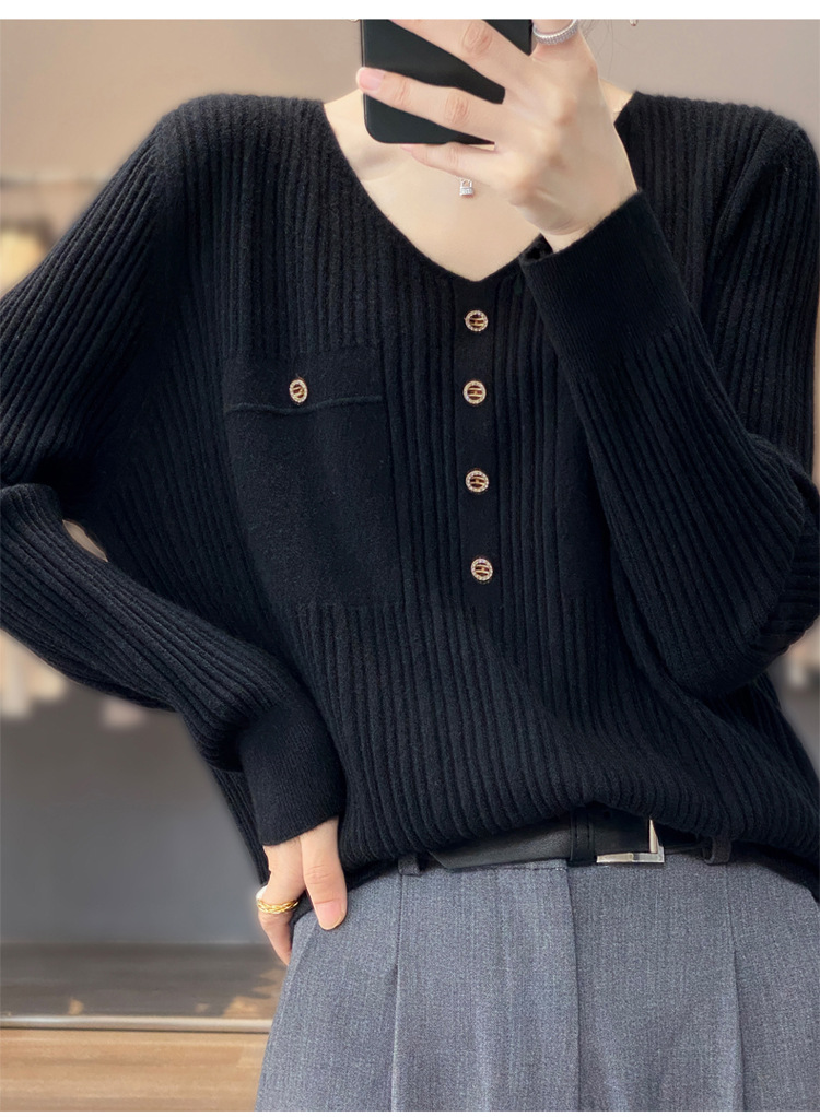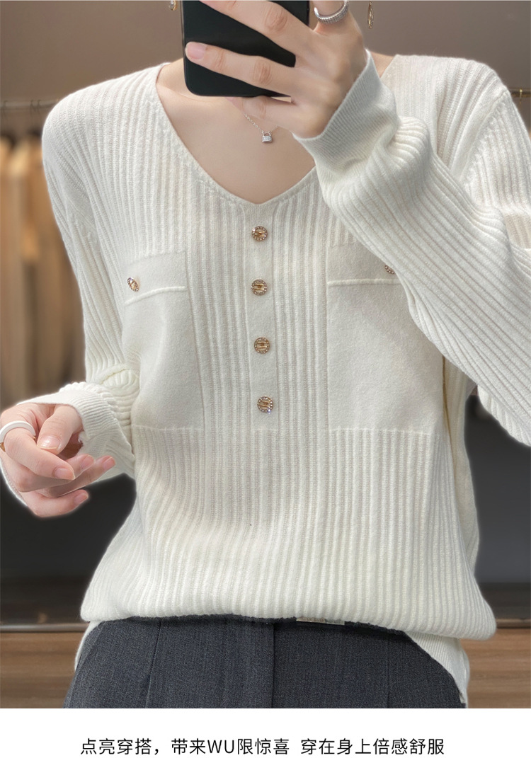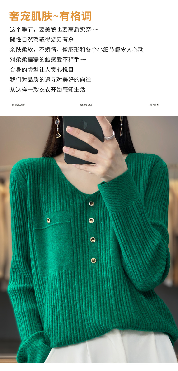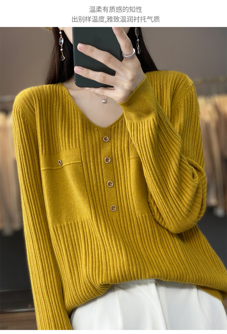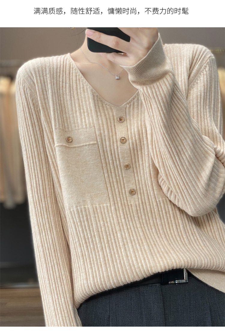 丁摩 羊毛混纺春秋新款V领针织衫女外穿毛衣宽松显瘦上衣内搭打底衫潮5ZF-063