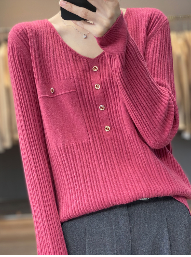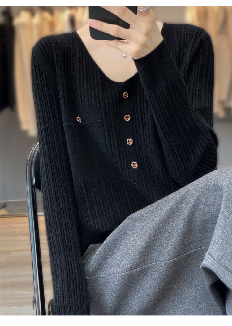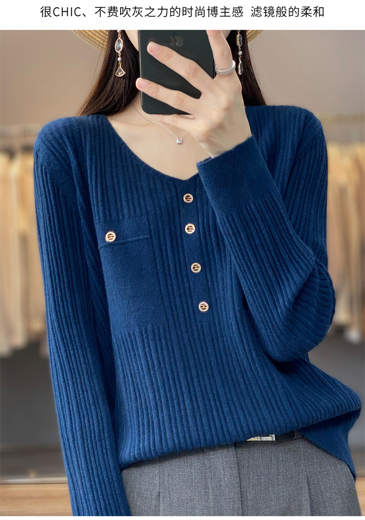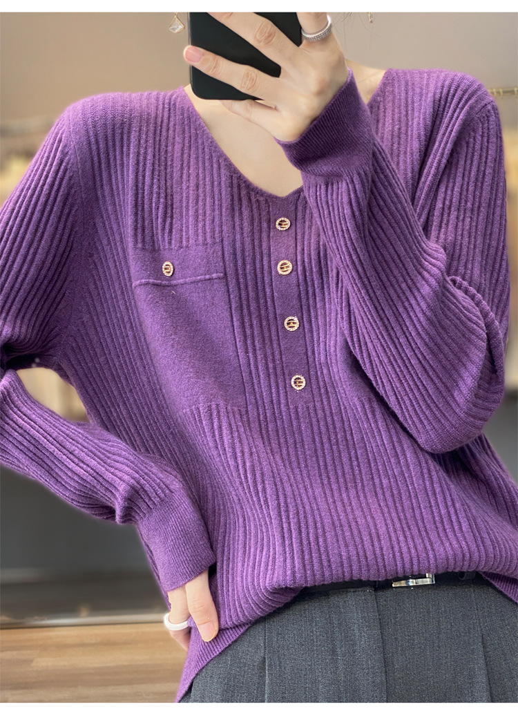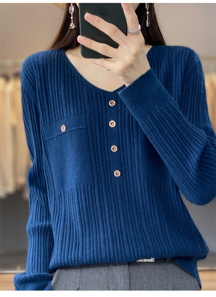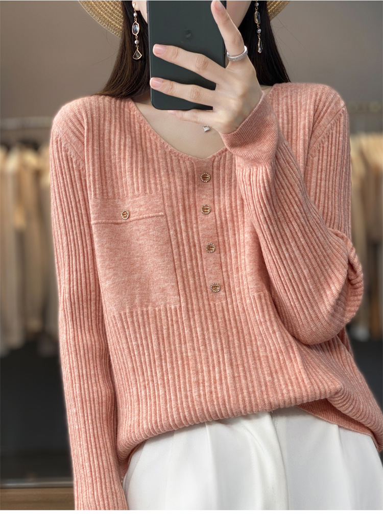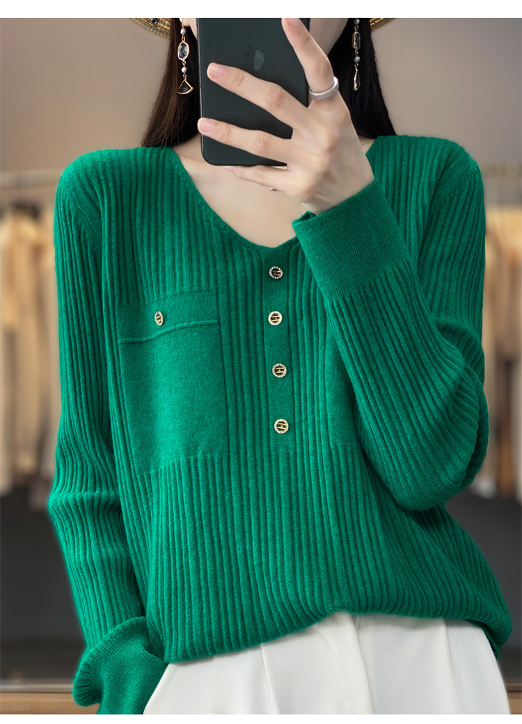 丁摩 羊毛混纺春秋新款V领针织衫女外穿毛衣宽松显瘦上衣内搭打底衫潮5ZF-063