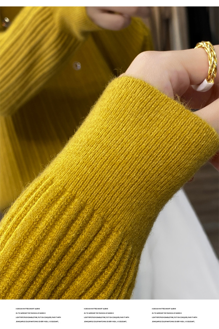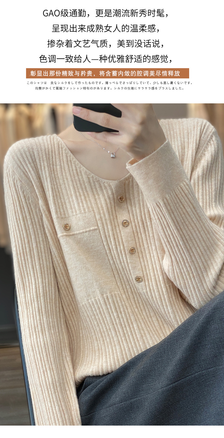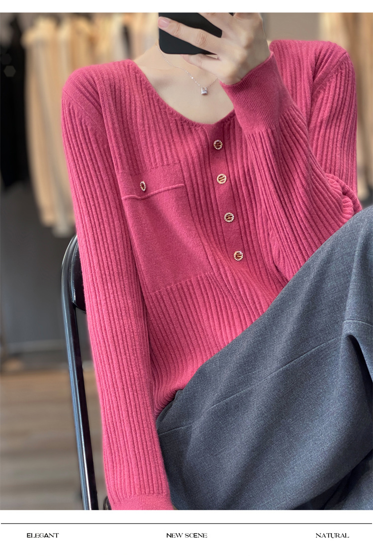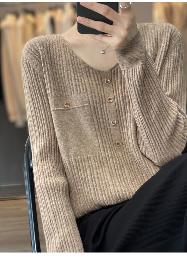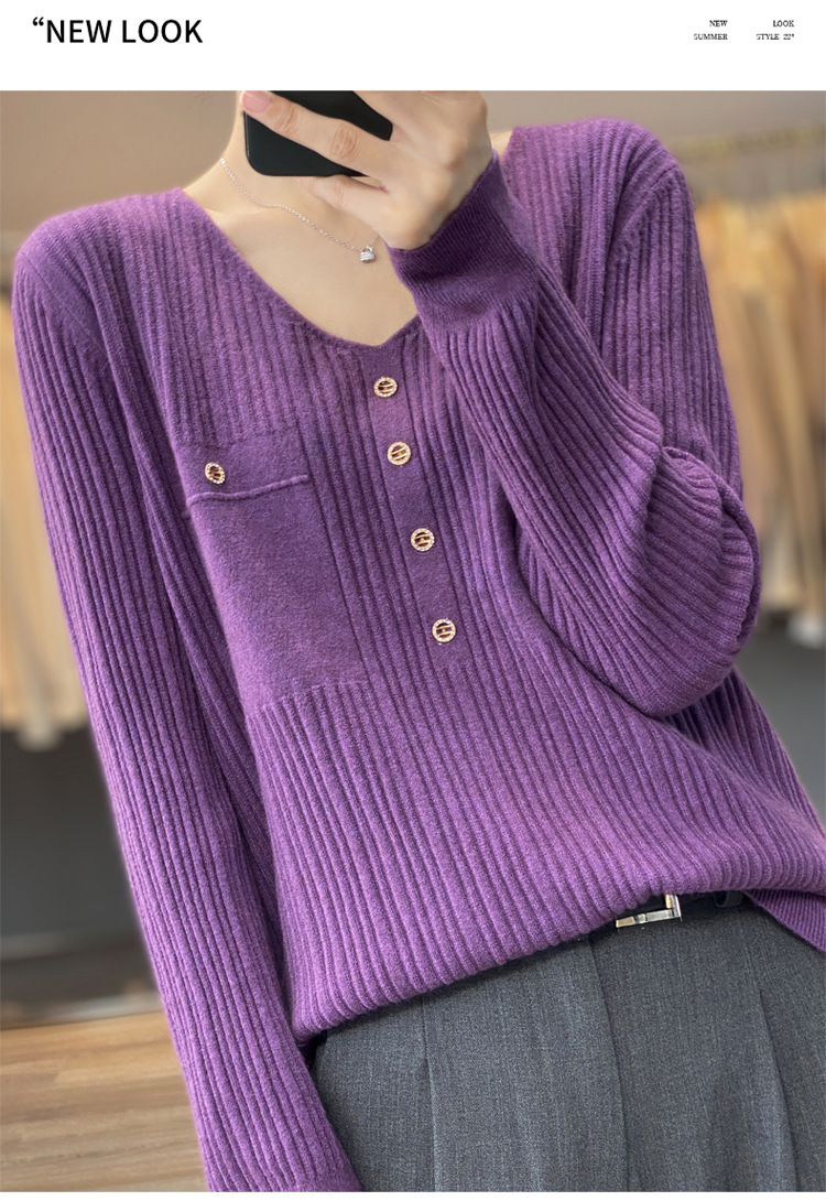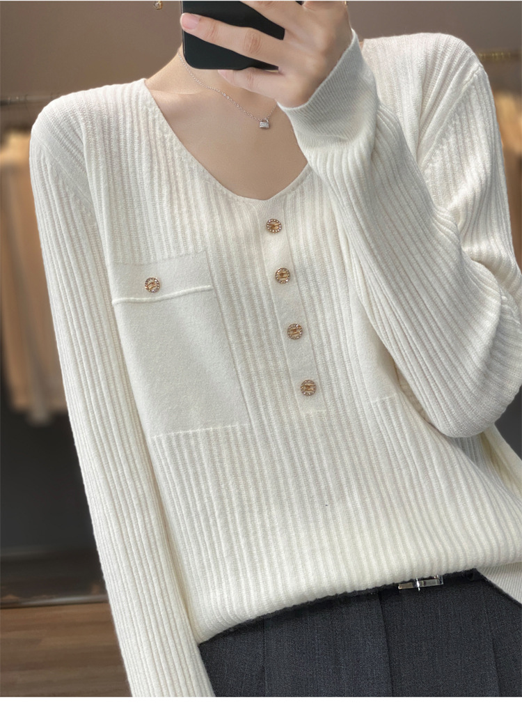 丁摩 羊毛混纺春秋新款V领针织衫女外穿毛衣宽松显瘦上衣内搭打底衫潮5ZF-063