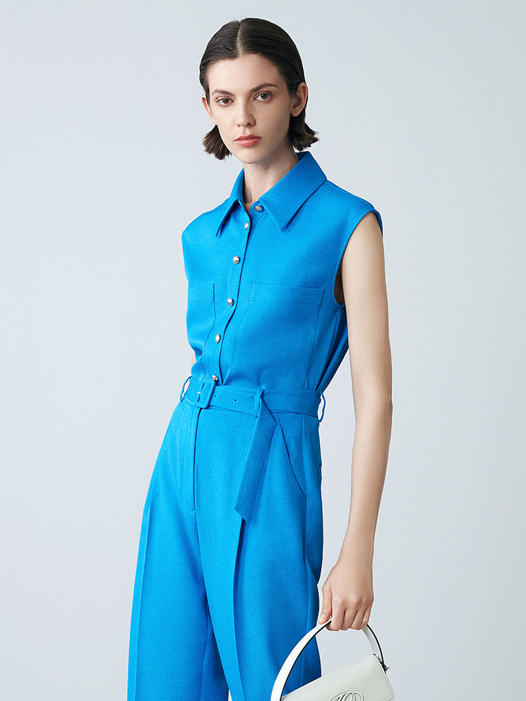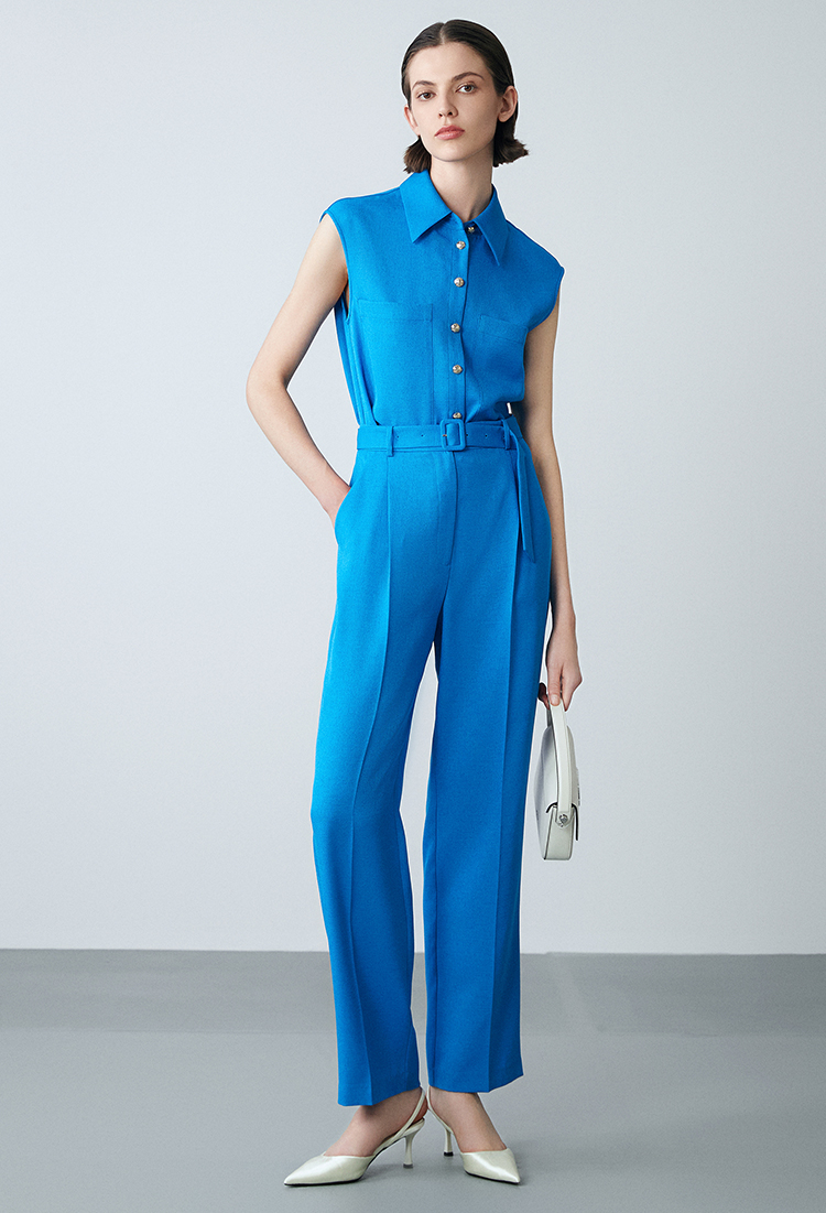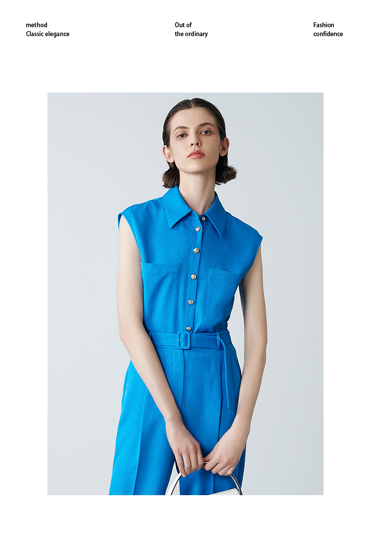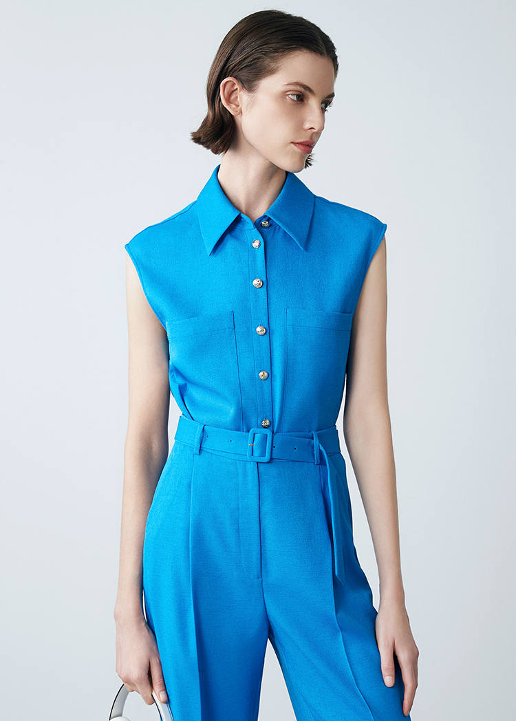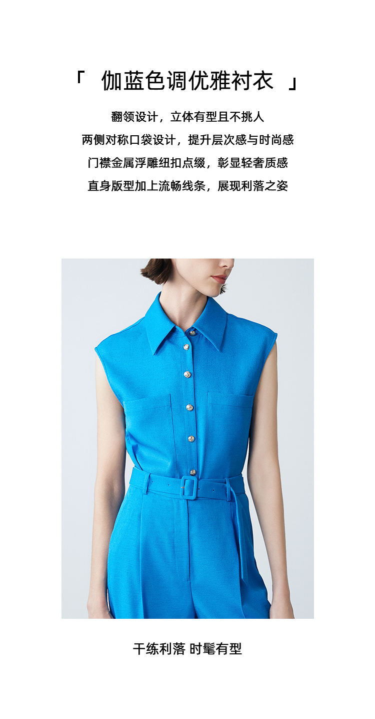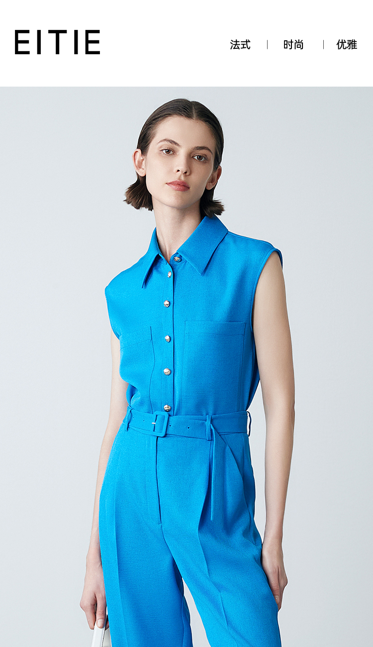 EITIE爱特爱夏季新款气质干练职业无袖衬衫上衣女7709407