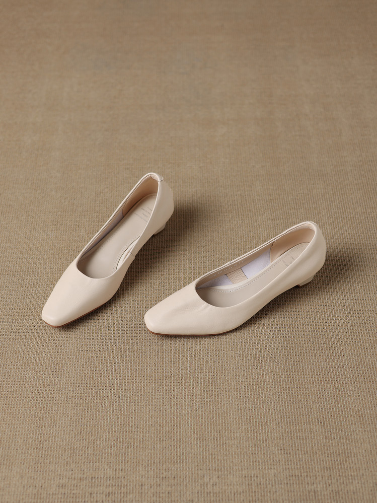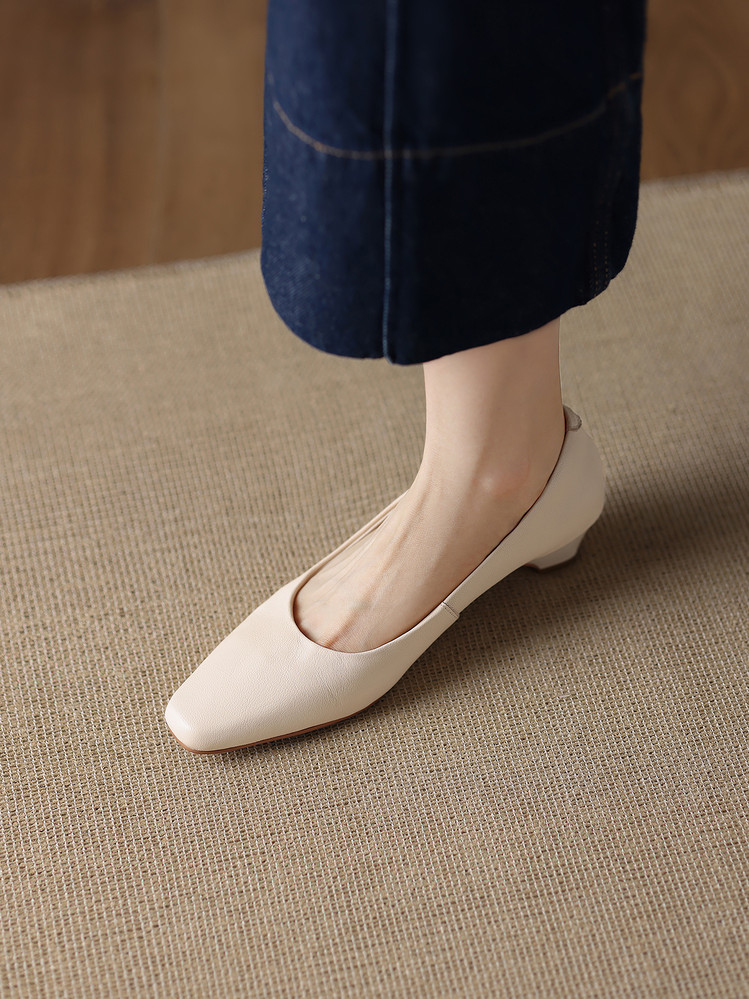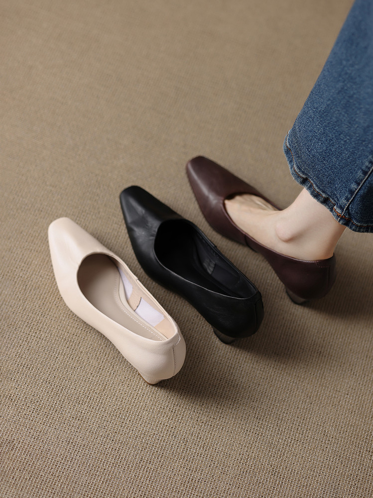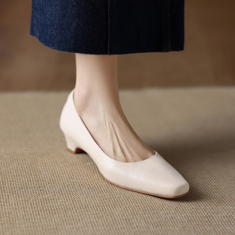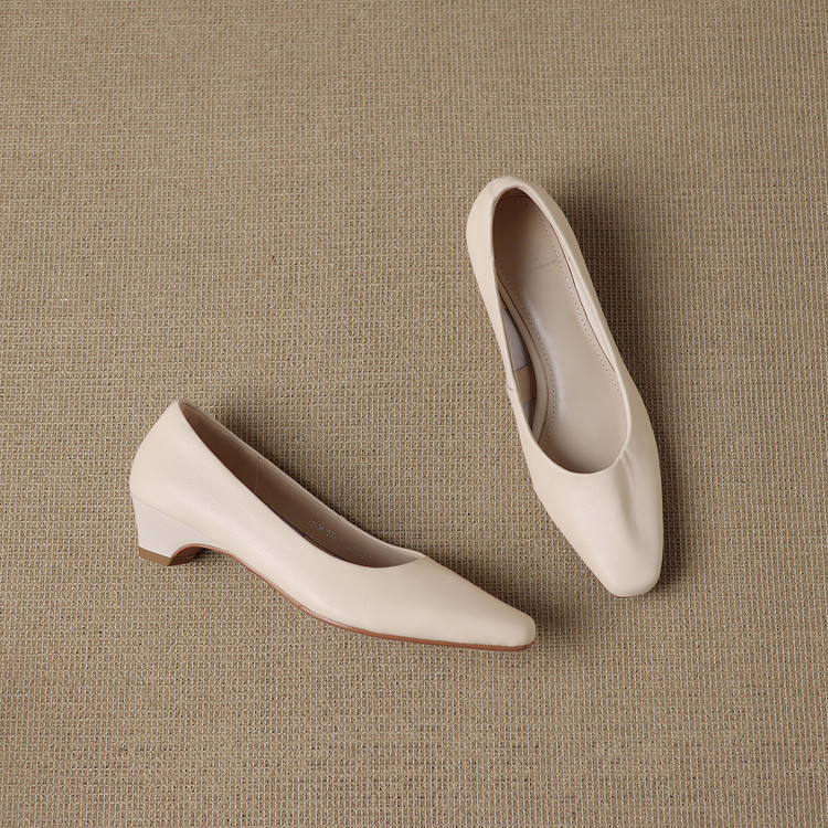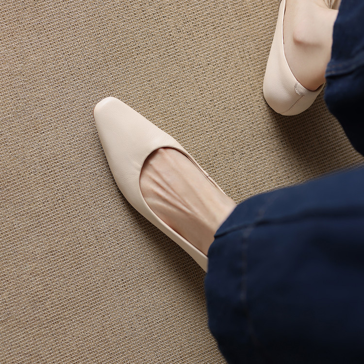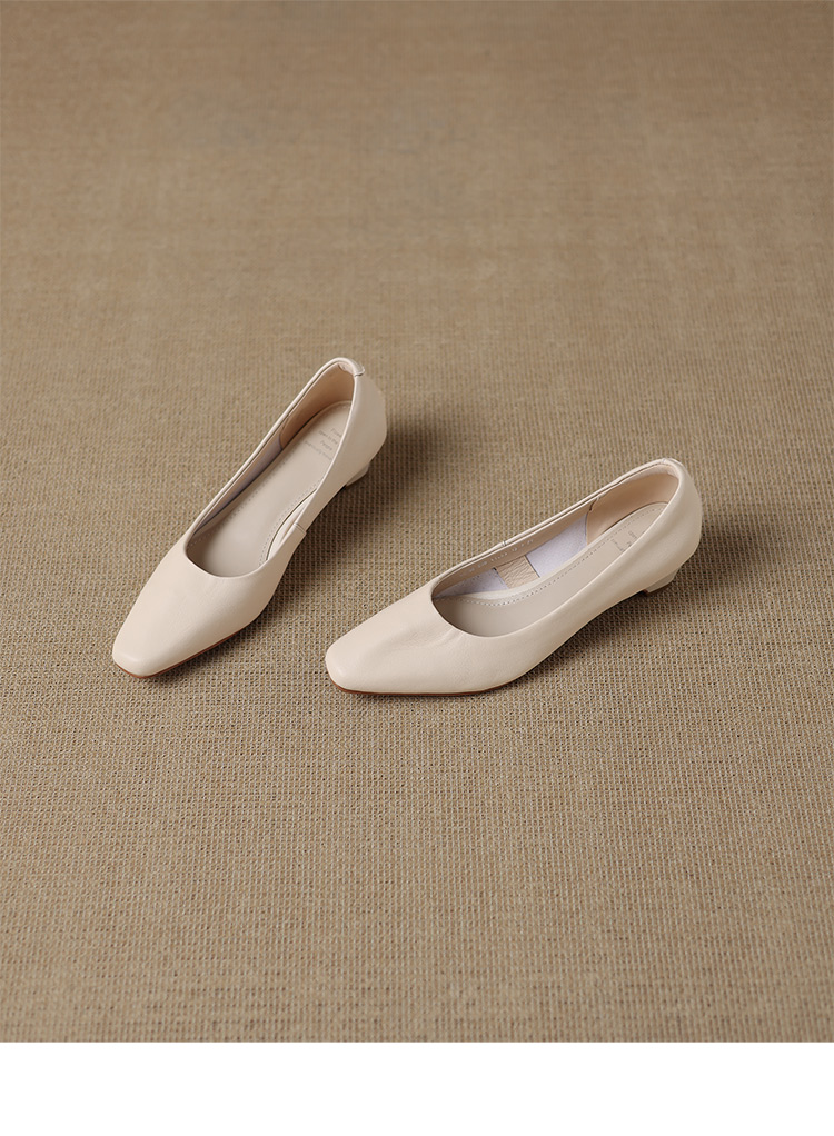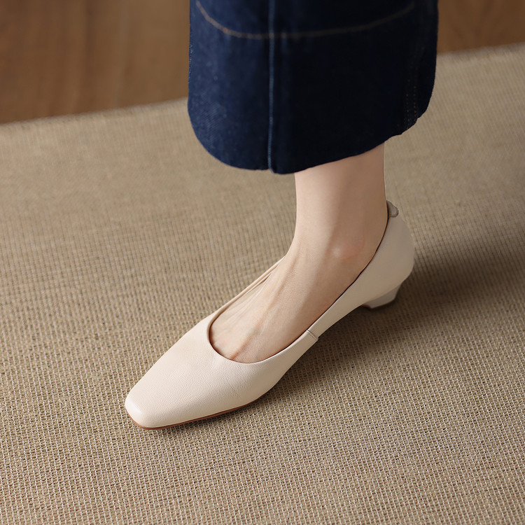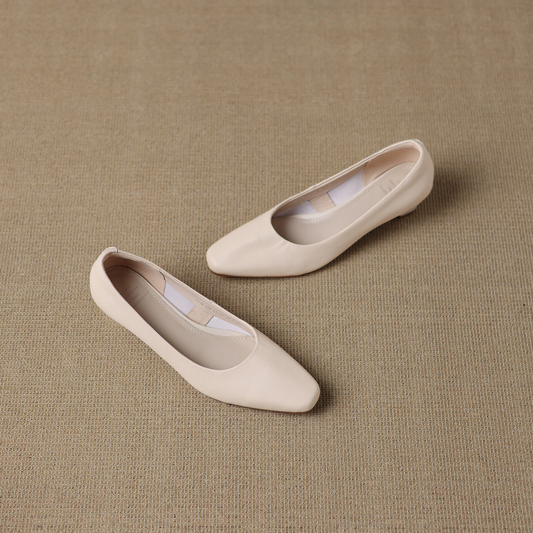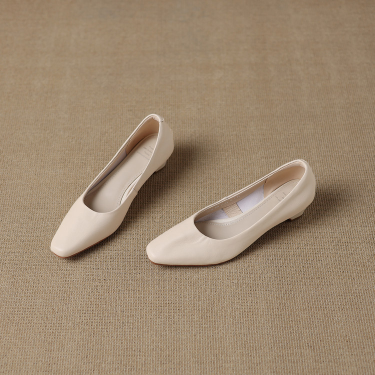 【预售5天】真皮软皮单鞋女软底低跟秋季浅口米白色通勤职业舒适女鞋DMJFG&82638F