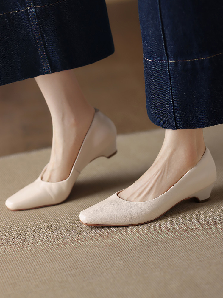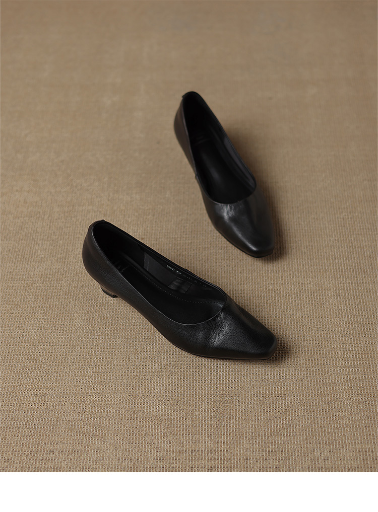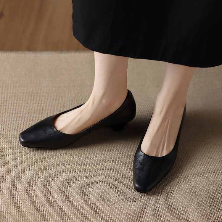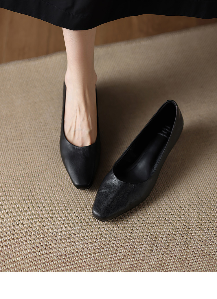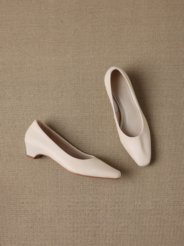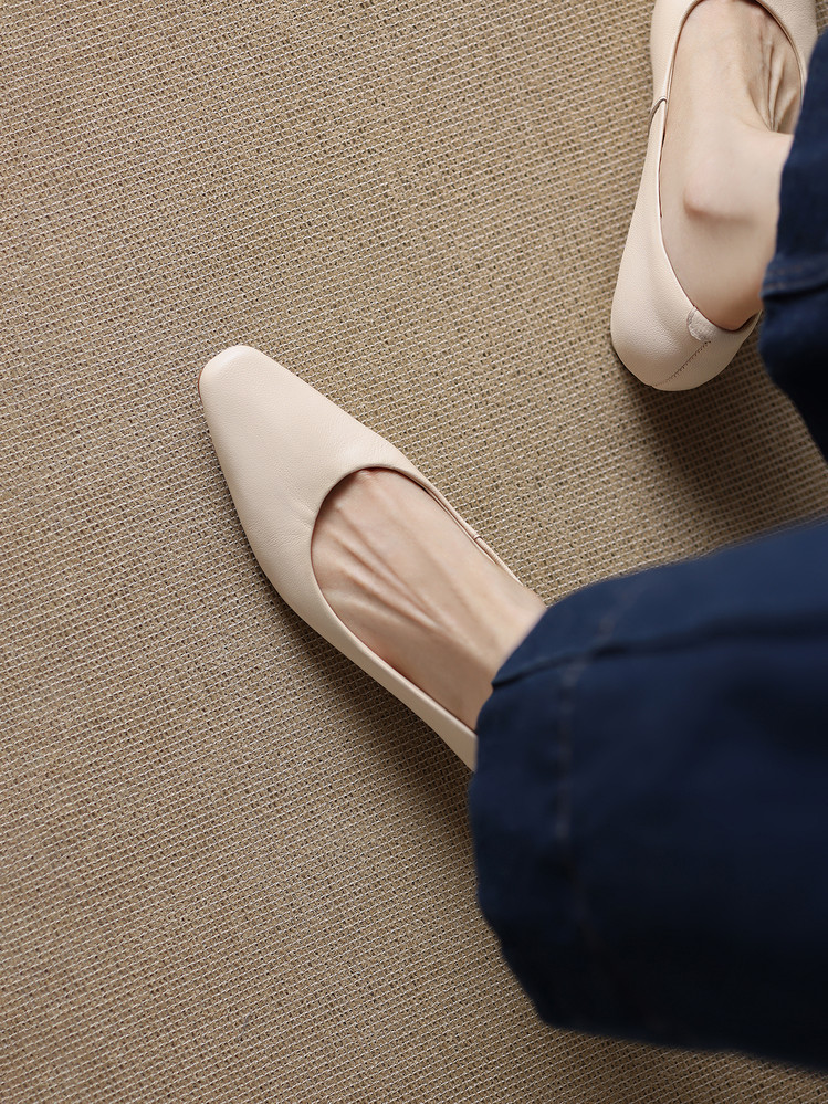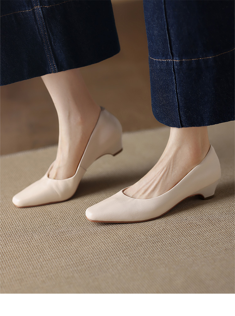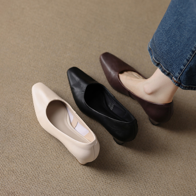【预售5天】真皮软皮单鞋女软底低跟秋季浅口米白色通勤职业舒适女鞋DMJFG&82638F