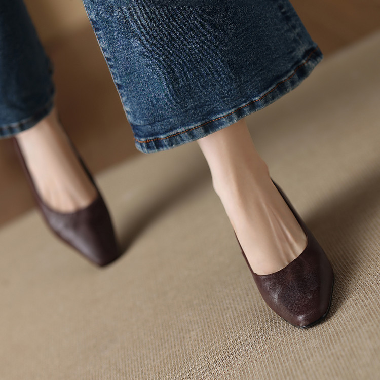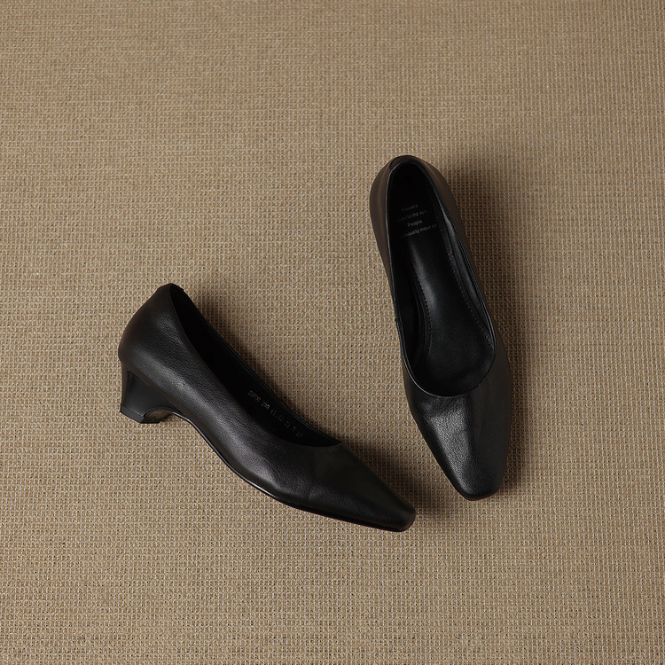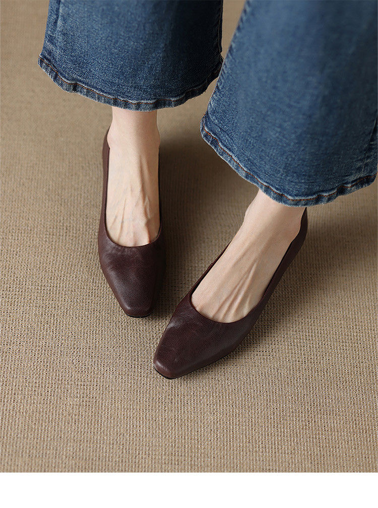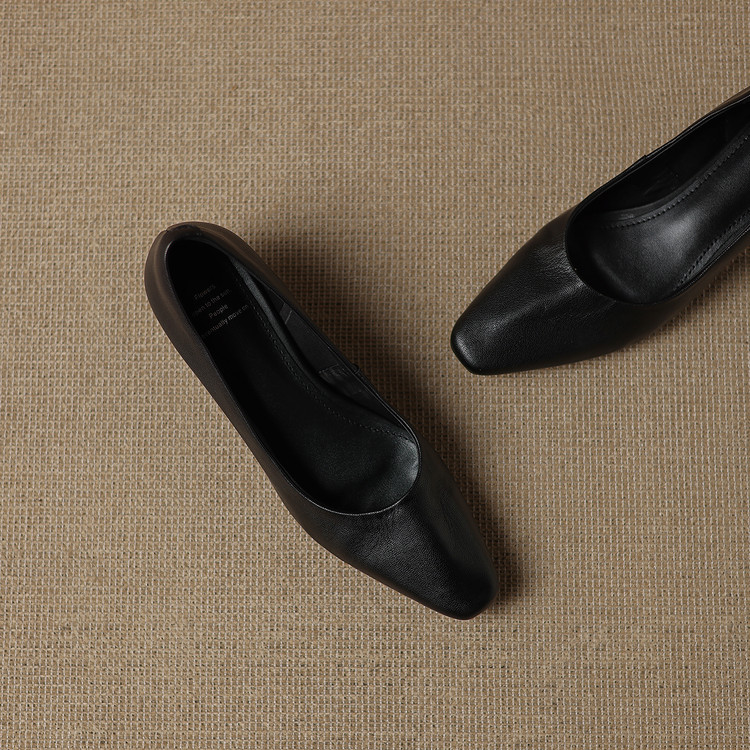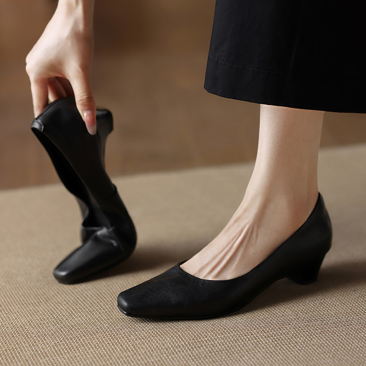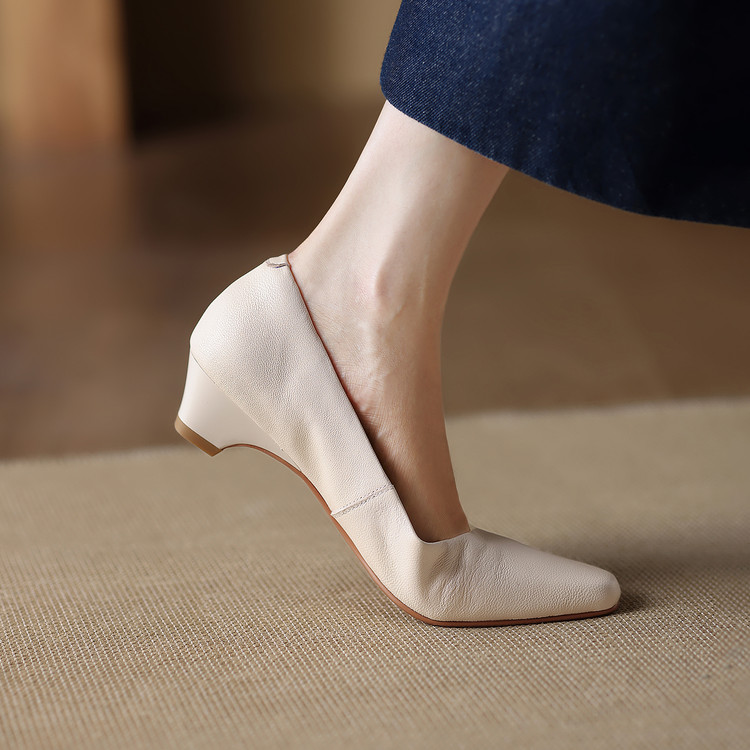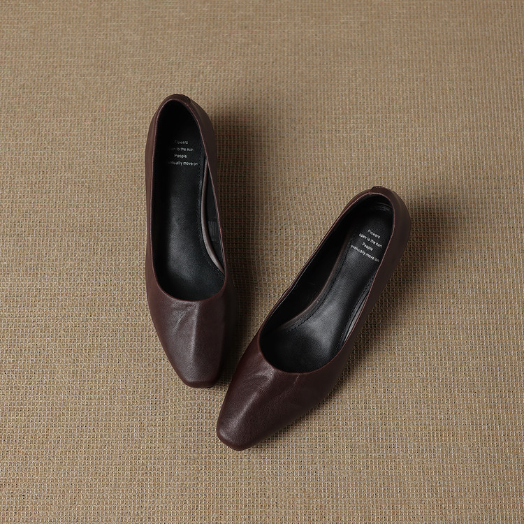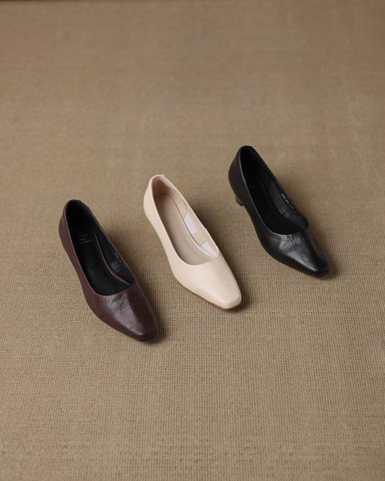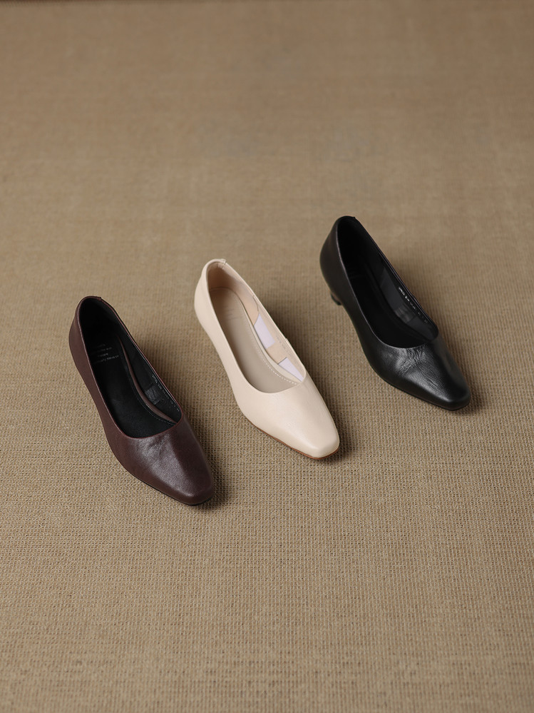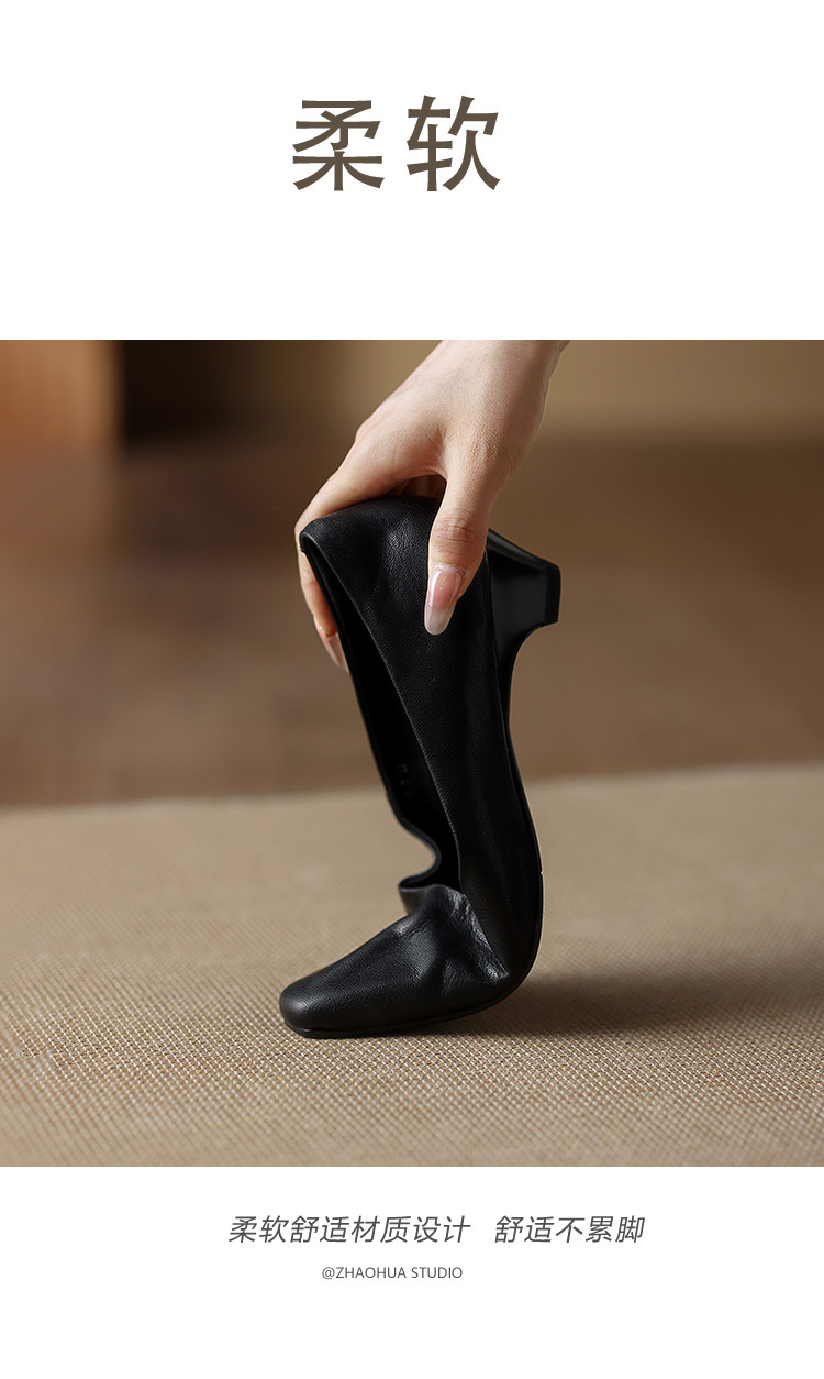 【预售5天】真皮软皮单鞋女软底低跟秋季浅口米白色通勤职业舒适女鞋DMJFG&82638F