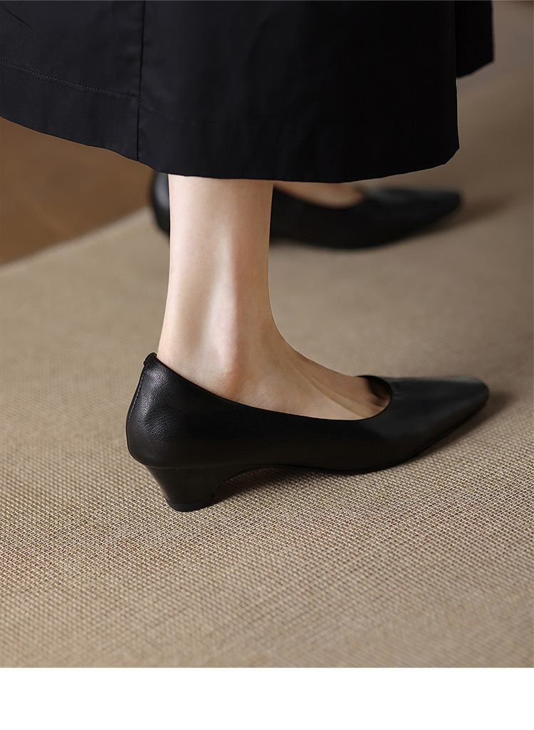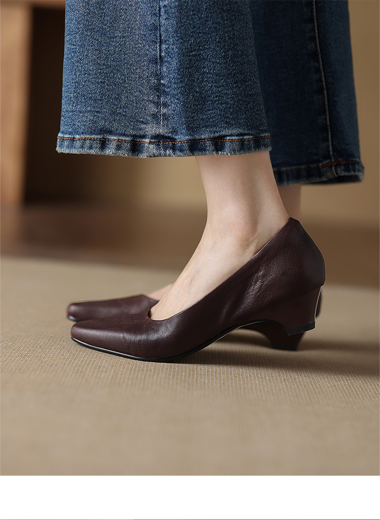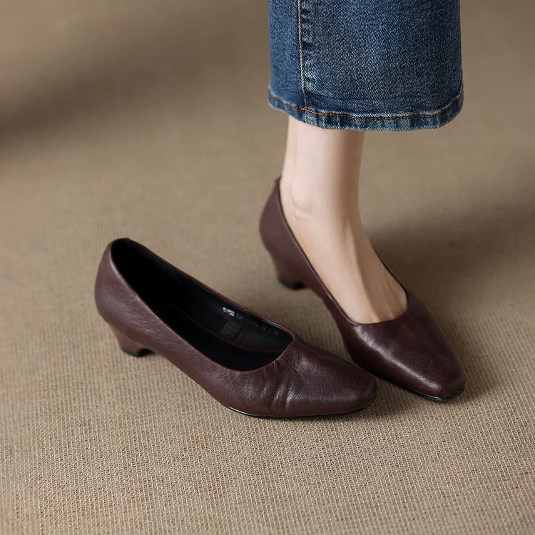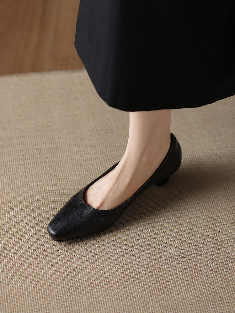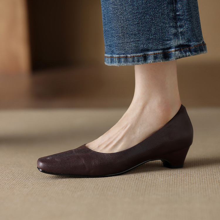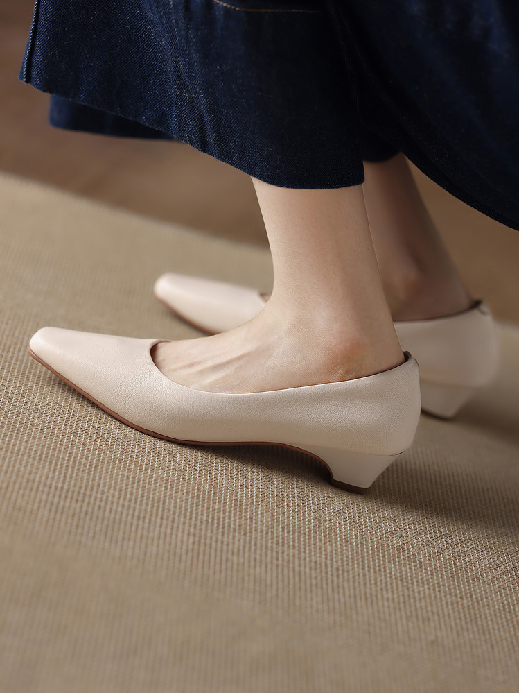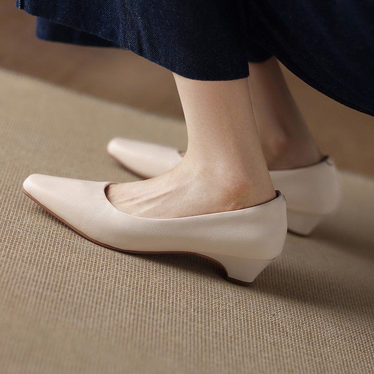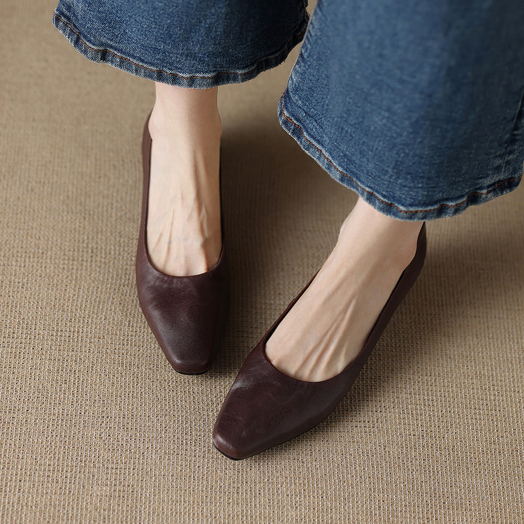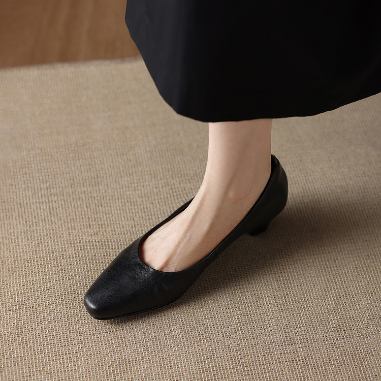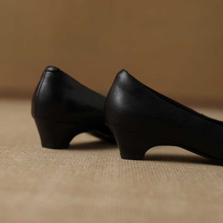 【预售5天】真皮软皮单鞋女软底低跟秋季浅口米白色通勤职业舒适女鞋DMJFG&82638F