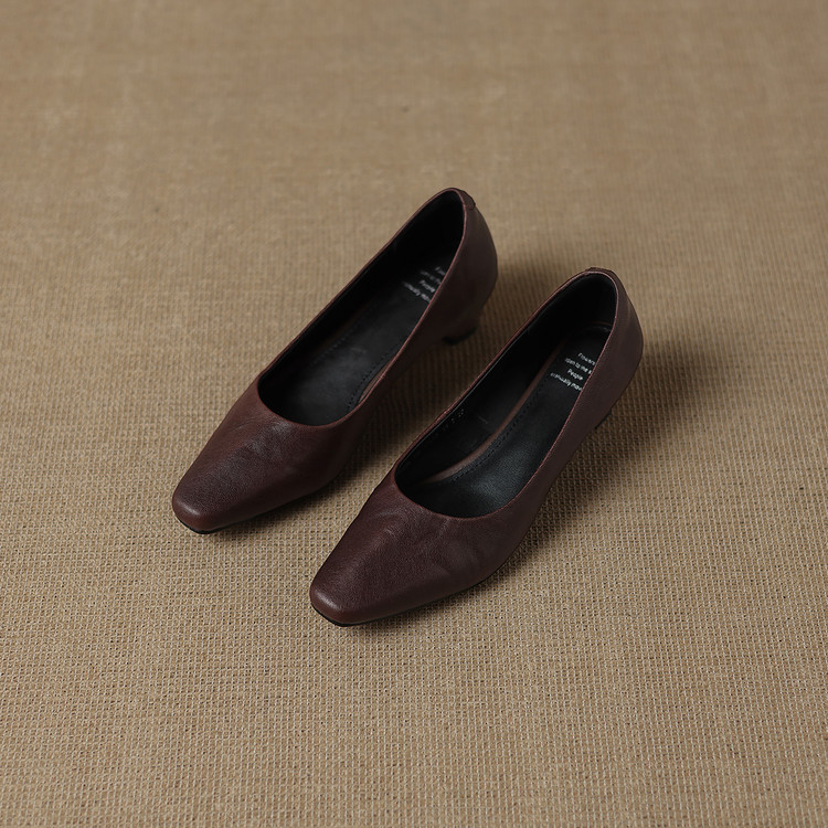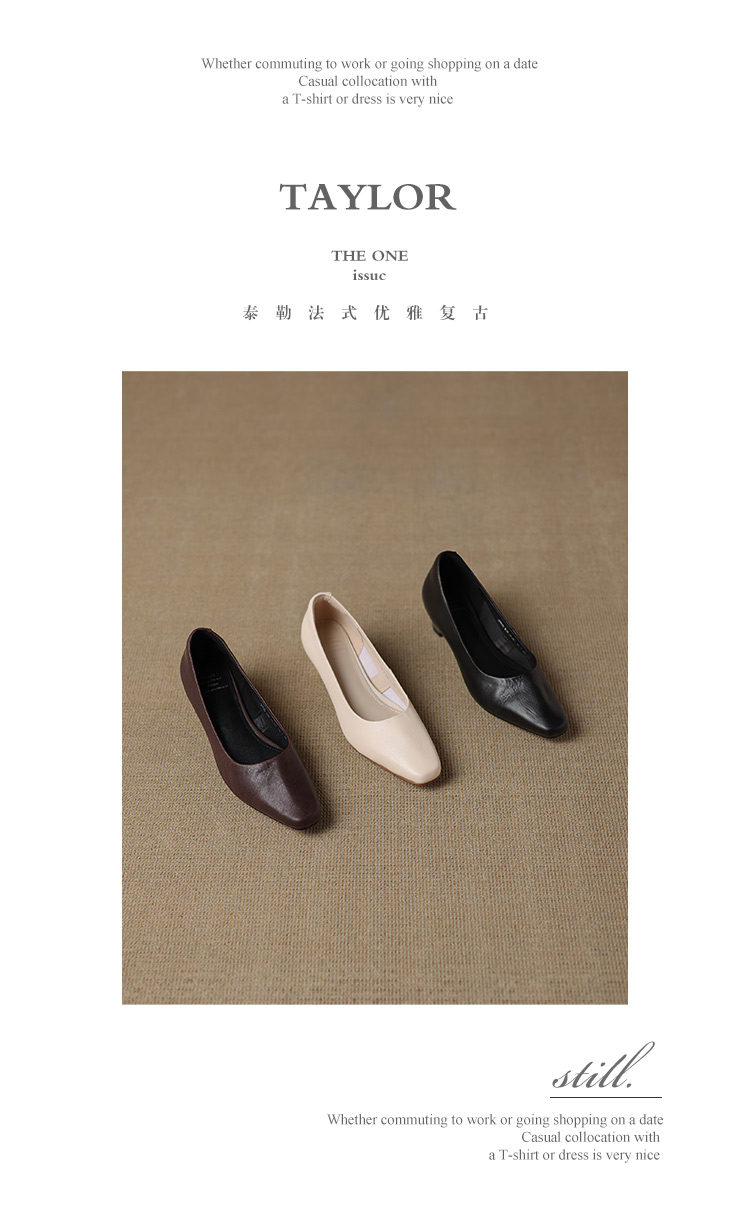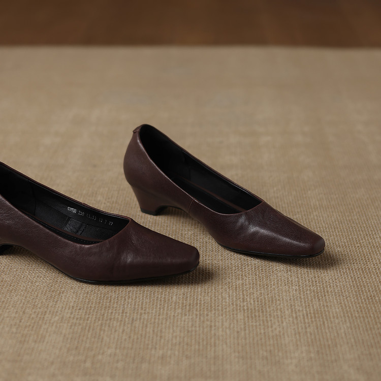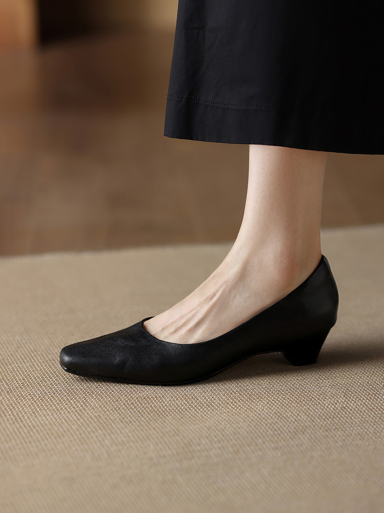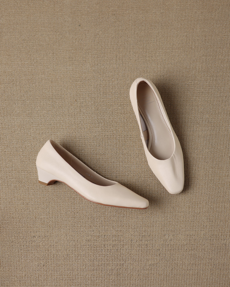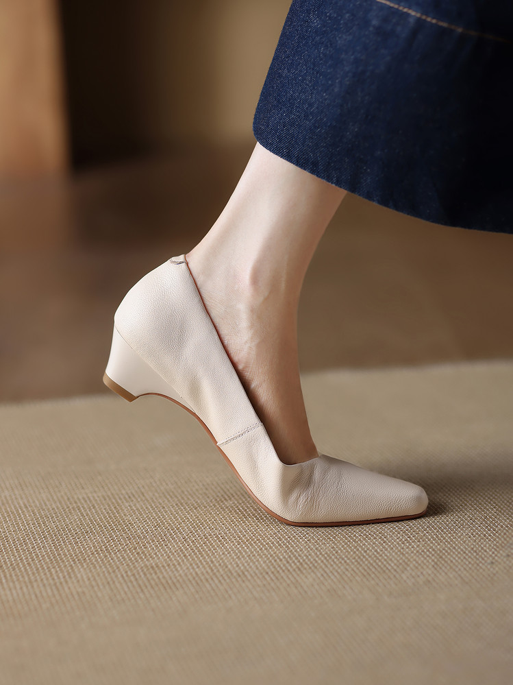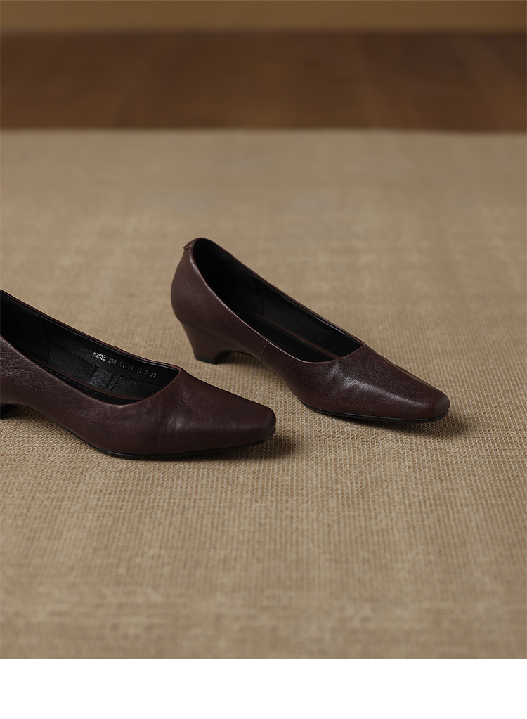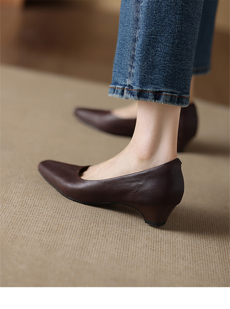 【预售5天】真皮软皮单鞋女软底低跟秋季浅口米白色通勤职业舒适女鞋DMJFG&82638F