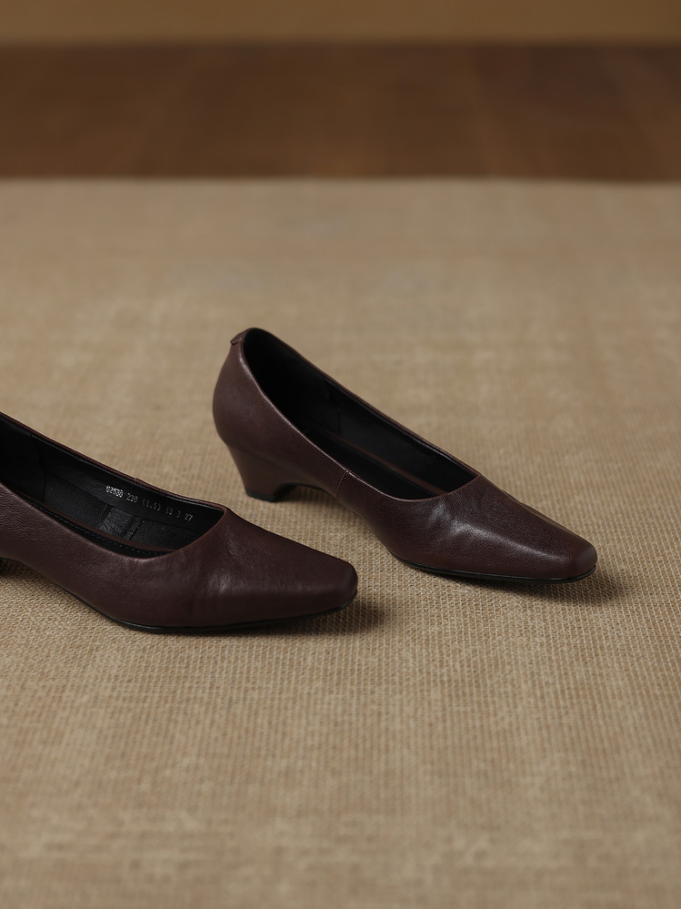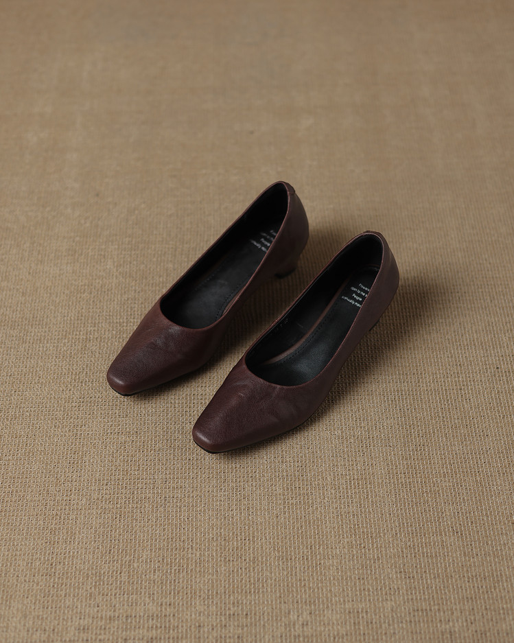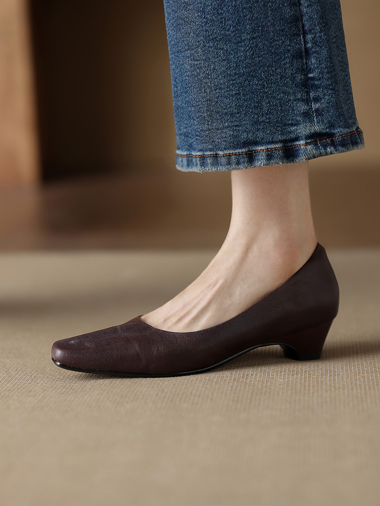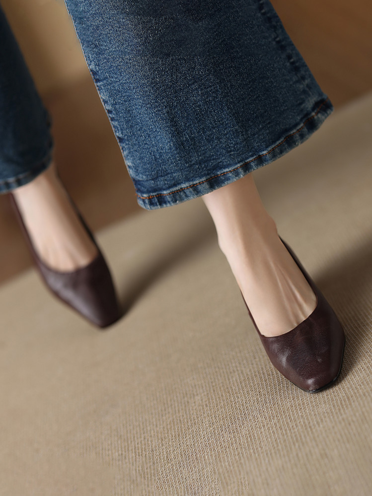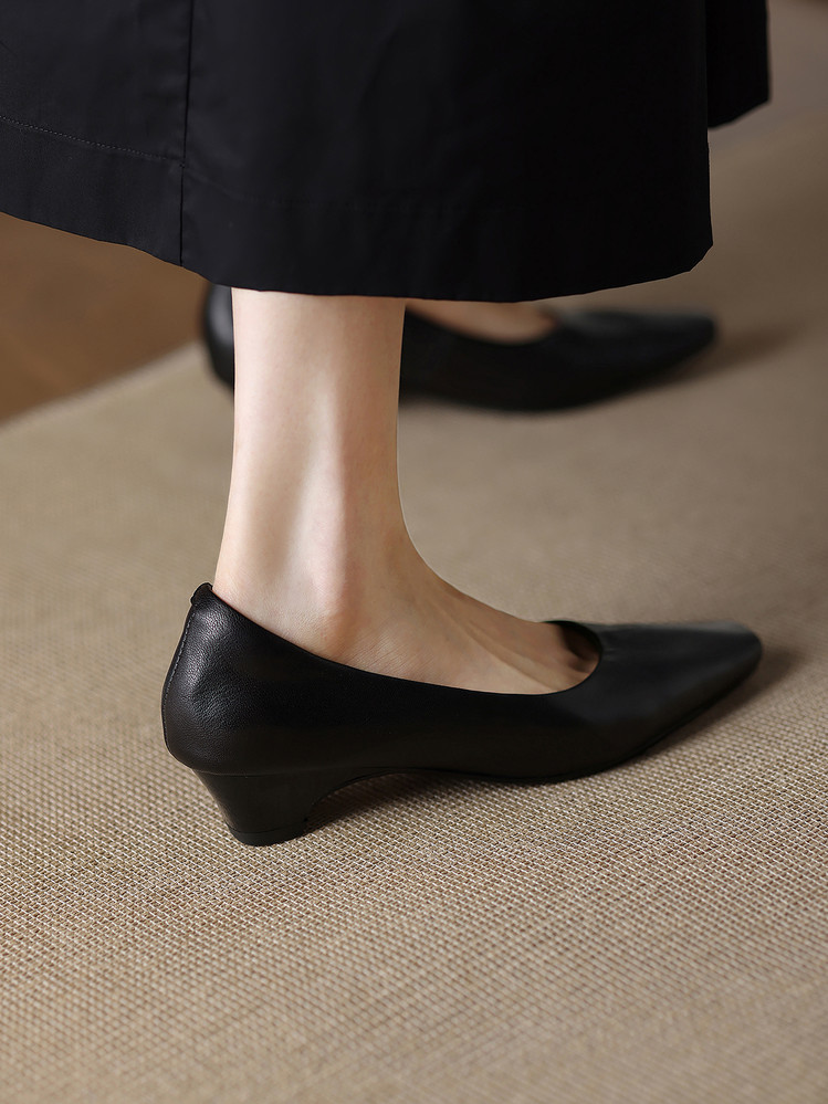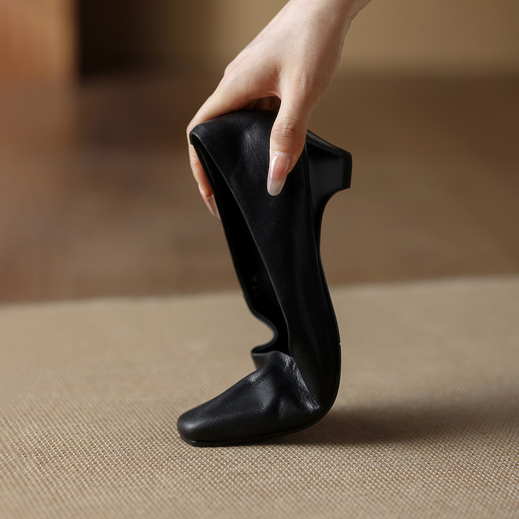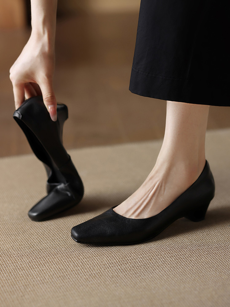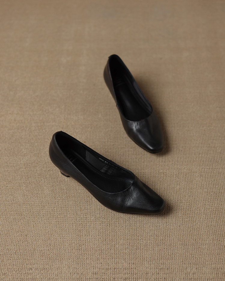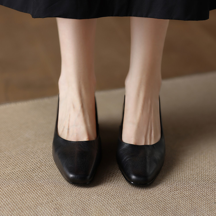 【预售5天】真皮软皮单鞋女软底低跟秋季浅口米白色通勤职业舒适女鞋DMJFG&82638F