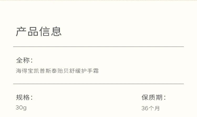 【品名】海得宝凯普斯泰贻贝舒缓(护手霜)倍润型 30g