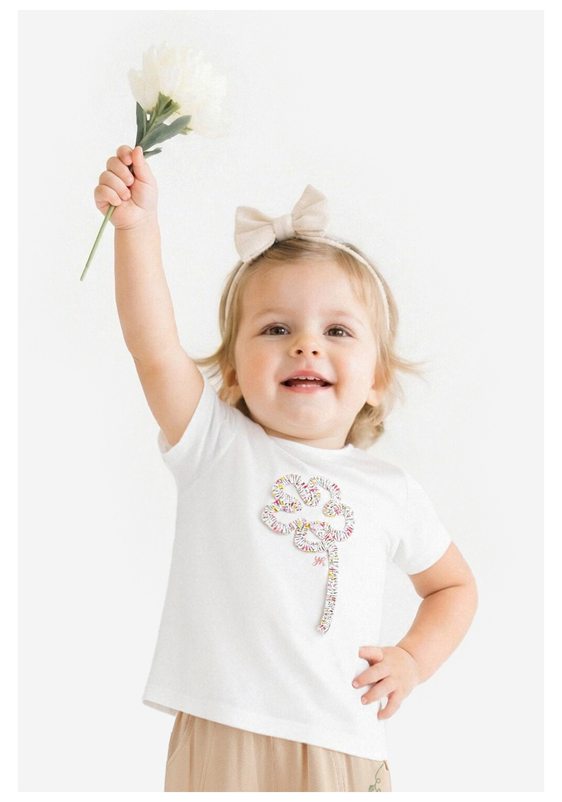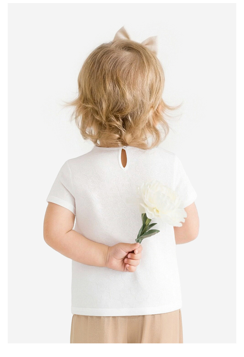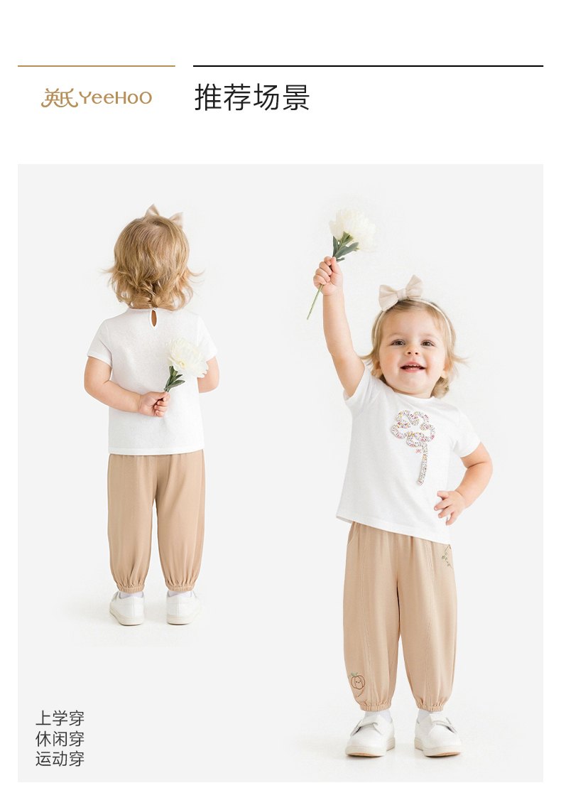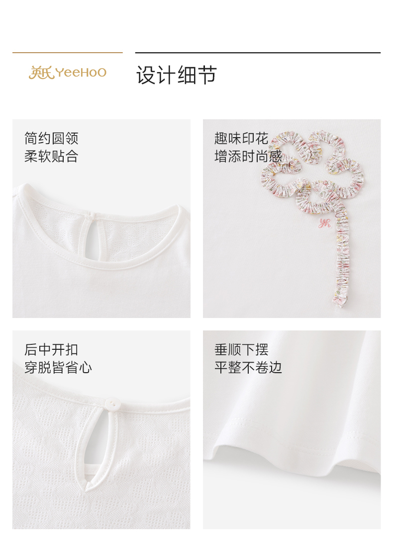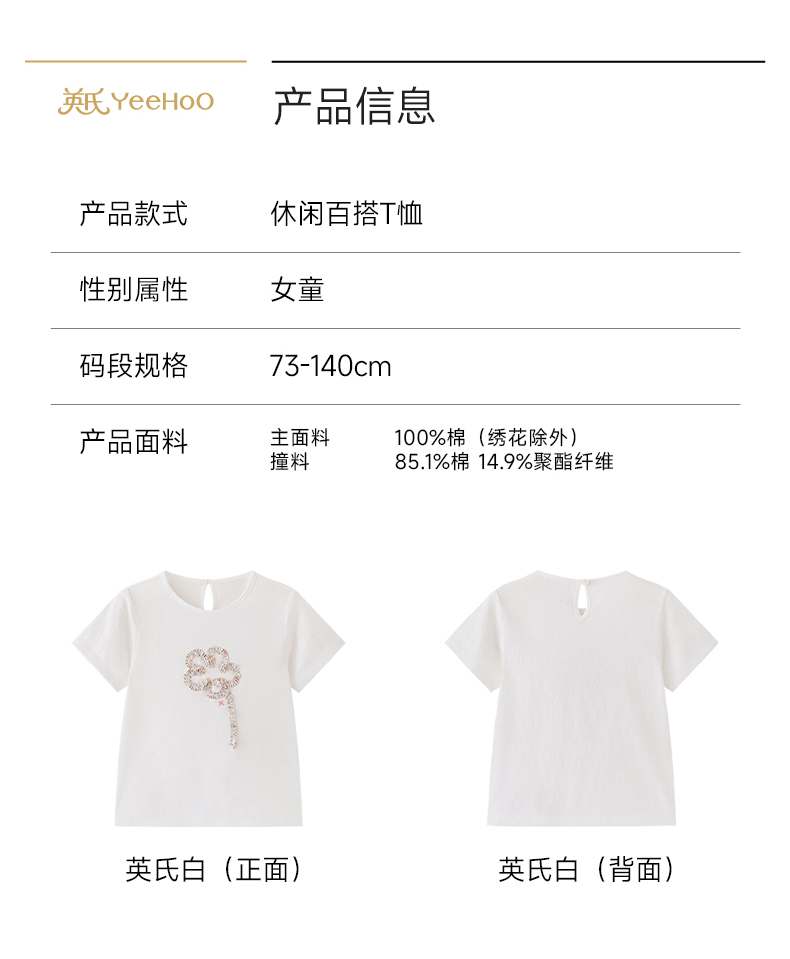 【商场同款】英氏儿童衣服女童夏季白色圆领短袖T恤纯棉百搭上衣