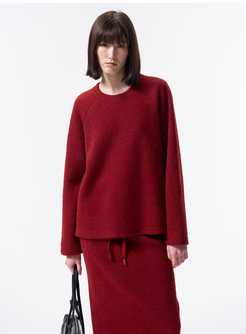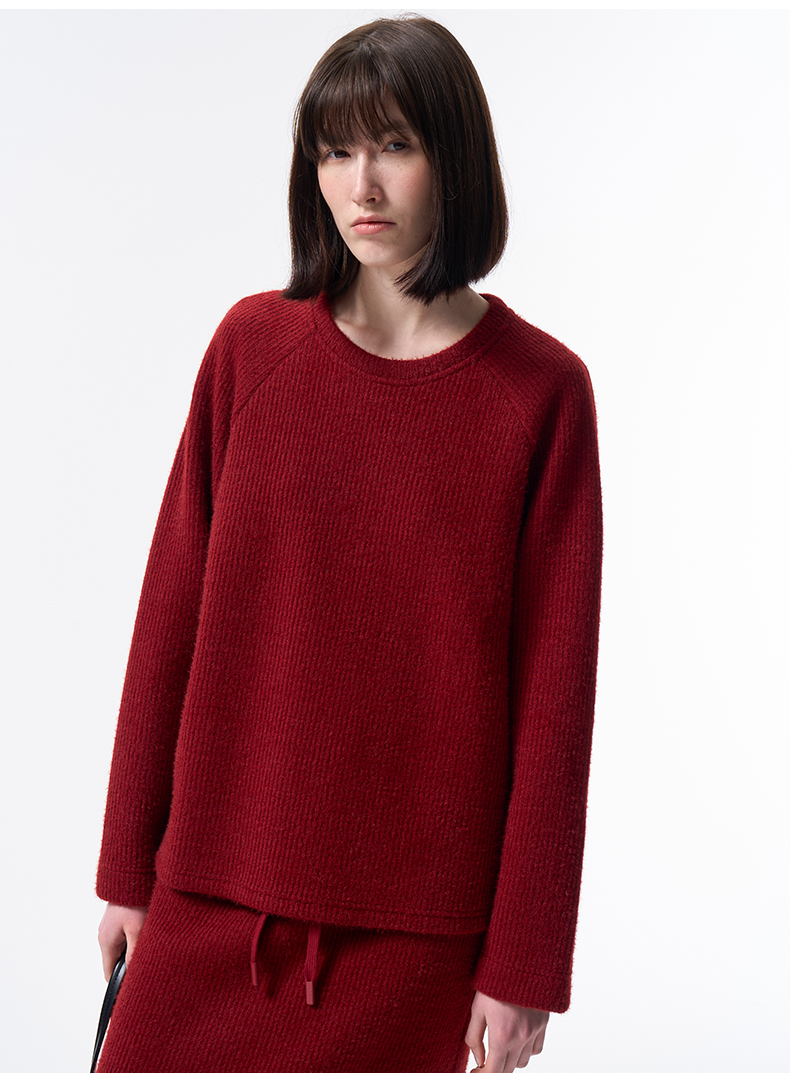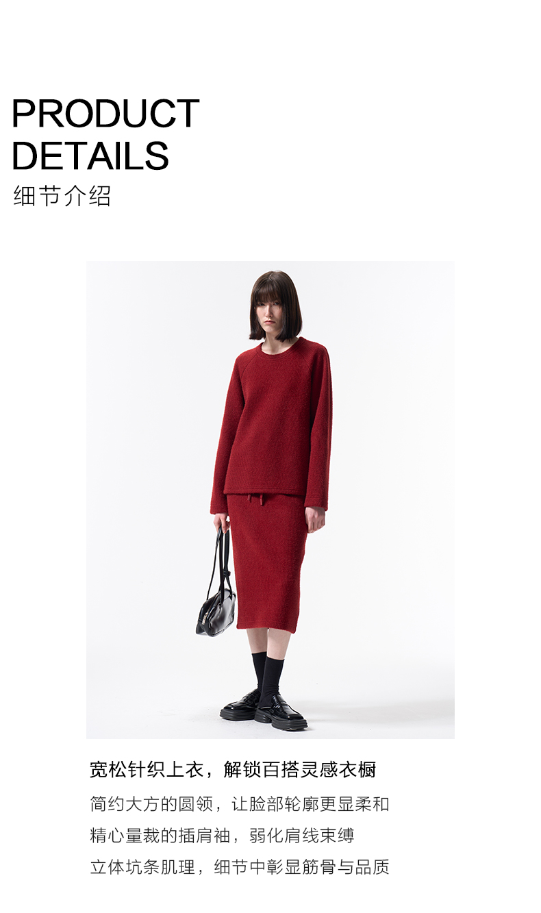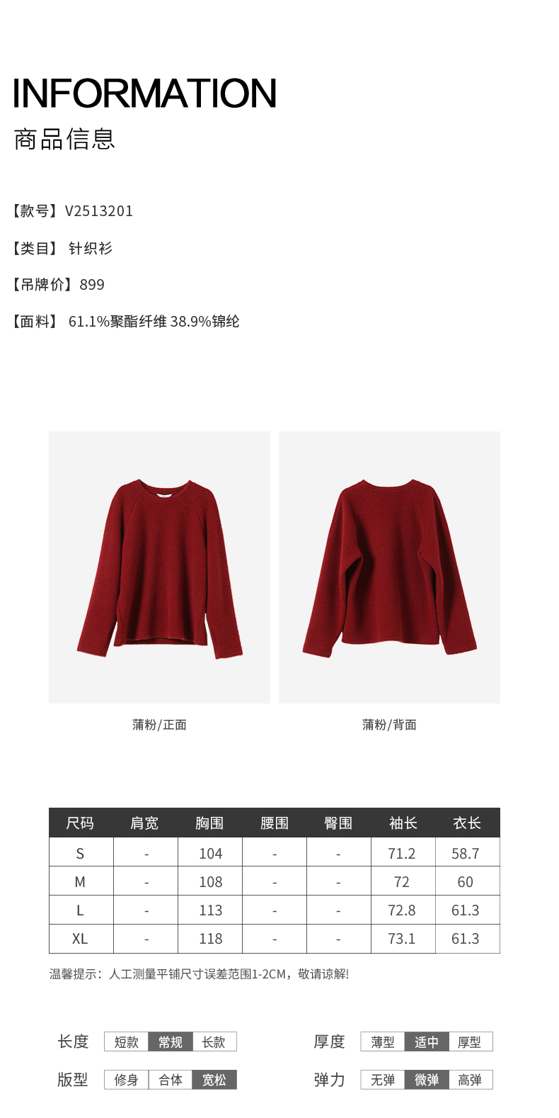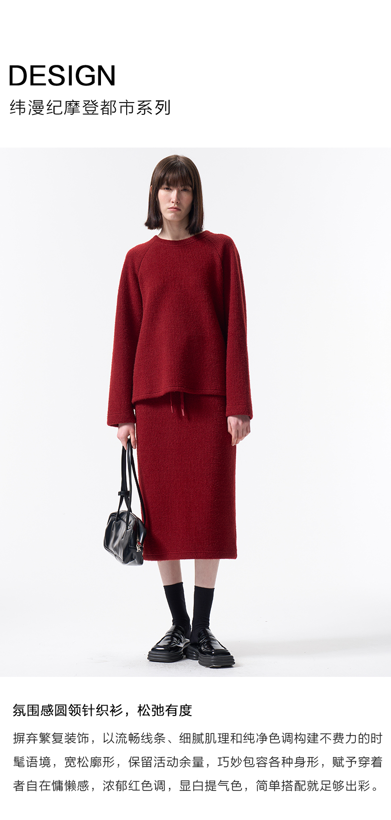 VIMAGE纬漫纪新年红慵懒宽松廓形百搭圆领毛针织上衣2026春季新款V2513201