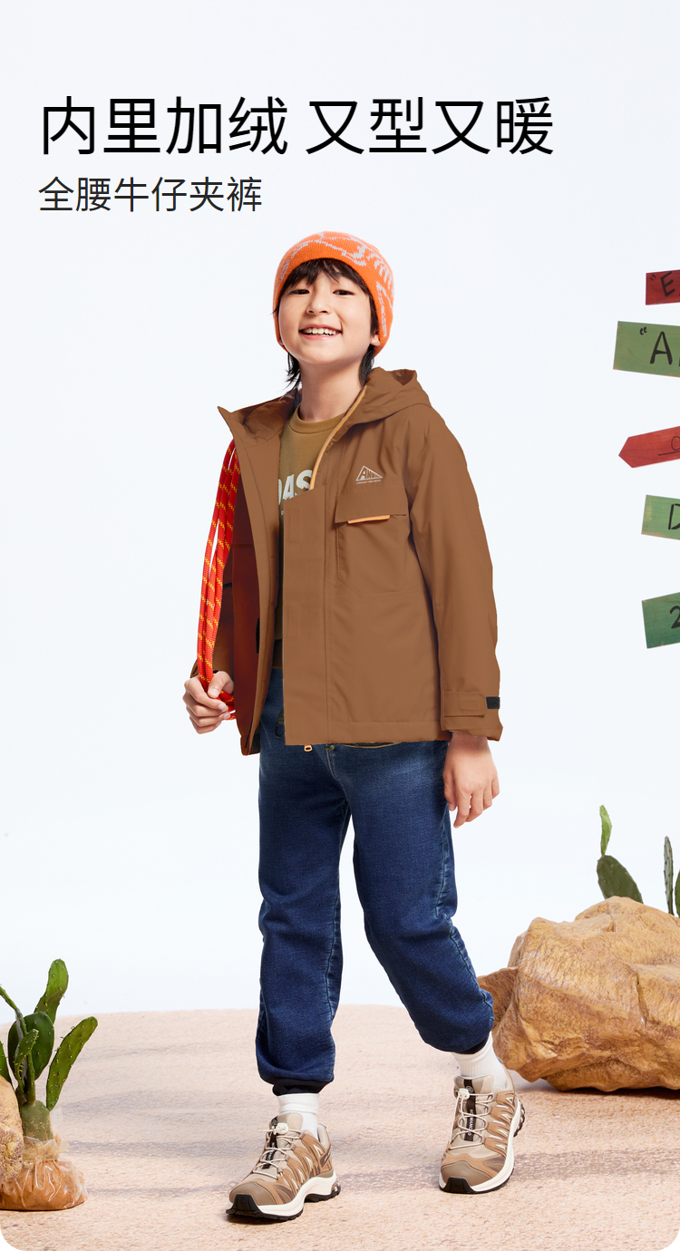 男童加绒保暖牛仔夹裤冬季新款安奈儿童装实体店同款AB446775
