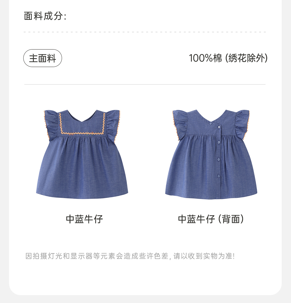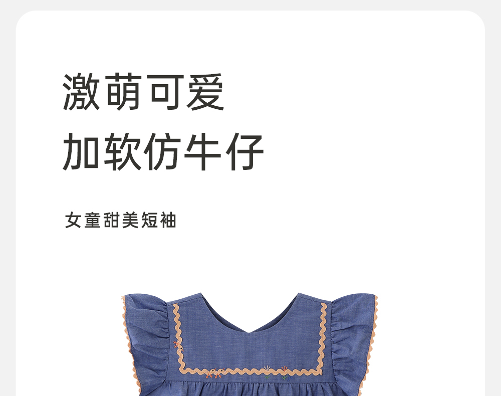 【商场同款】英氏儿童T恤夏季短袖牛仔女童T恤纯棉背心2025新款