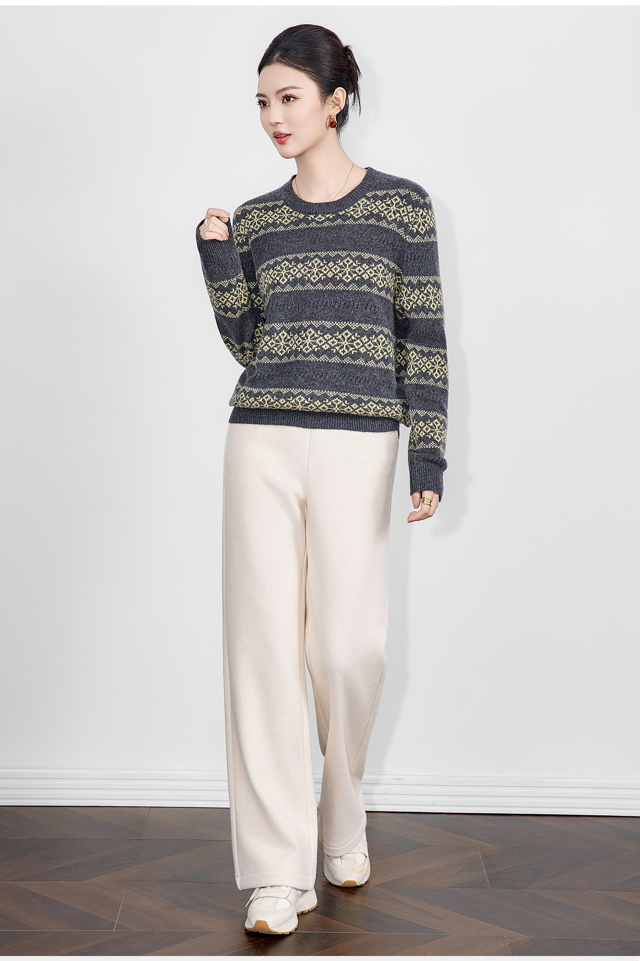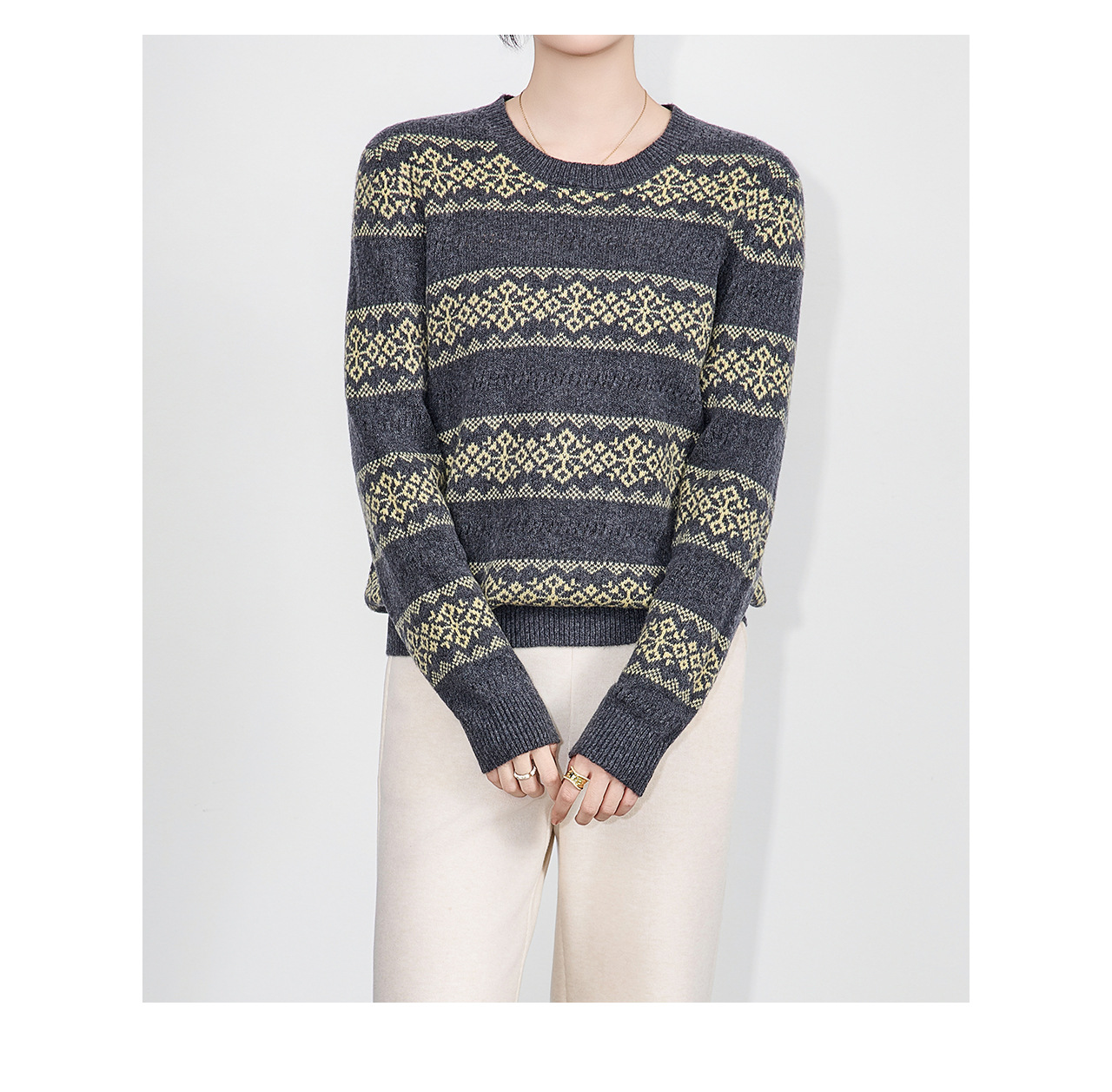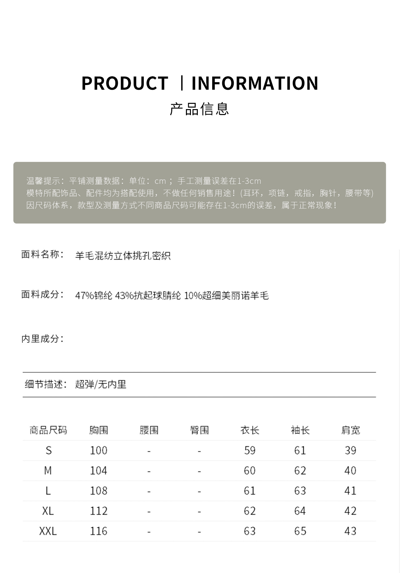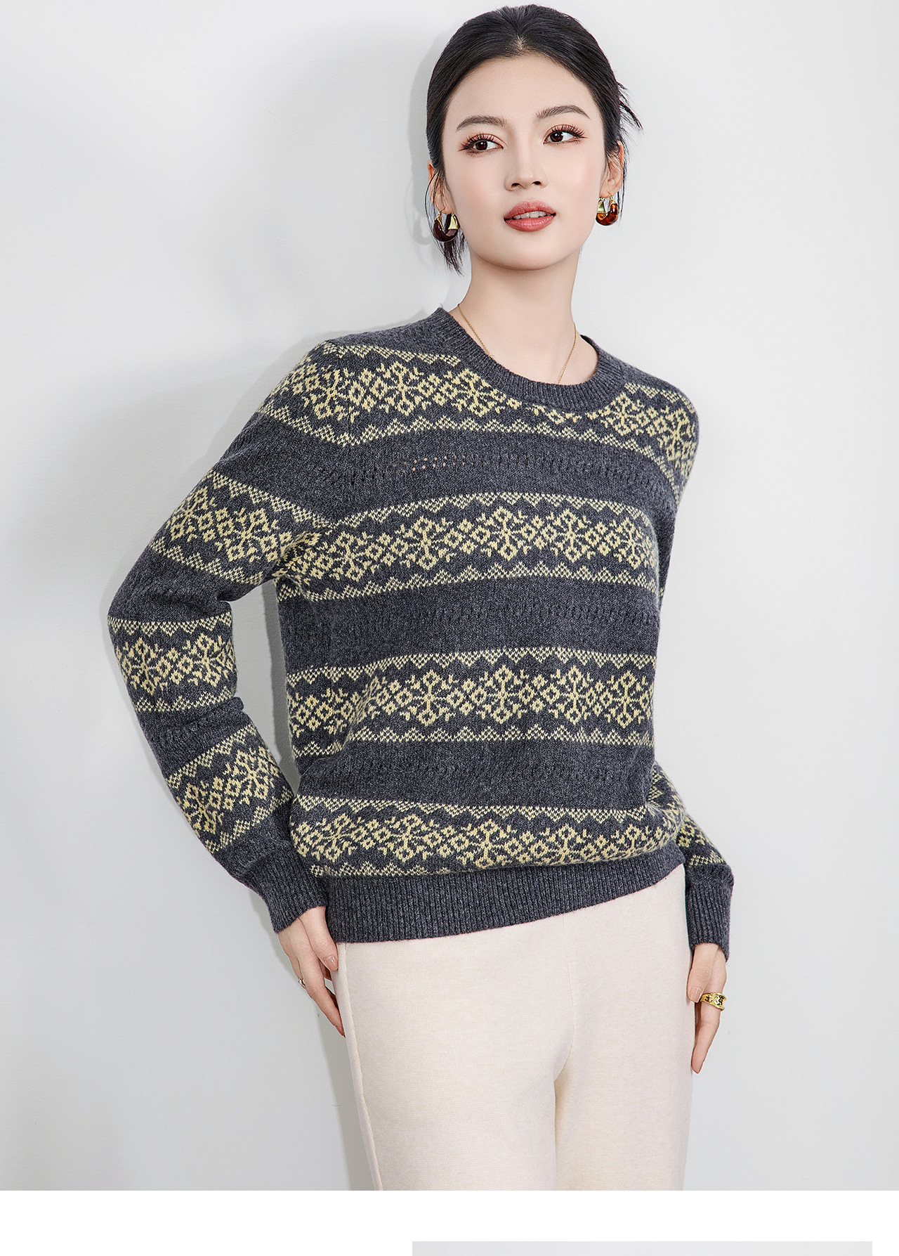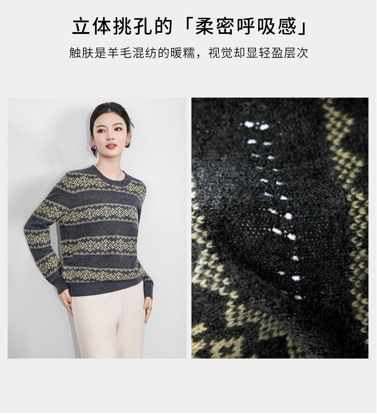 「高货wl」全新升级【铂金会员192/天猫259/差价67】(01648)洛诗琳气质羊毛混纺密织毛衣2025秋冬圆领宽松提花毛衣女