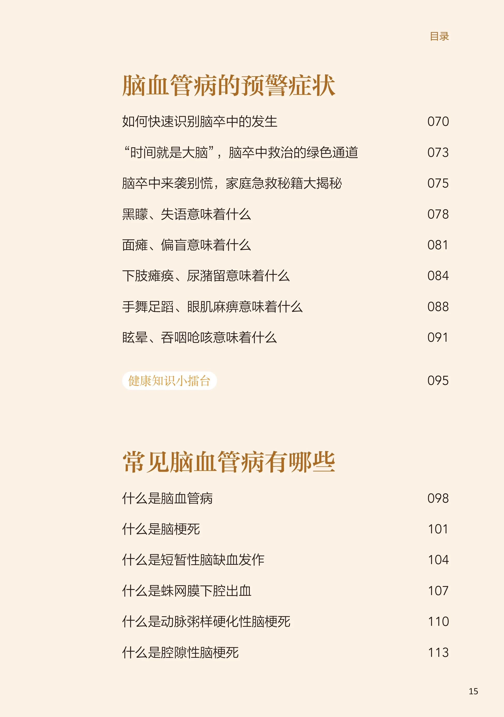 目前,我国成人脑卒中的终身患病风险居世界首位,普及脑卒中在内的脑血管病科学知识、促进公众形成正确认知至关重要。本书聚焦群众最担心的脑血管病问题,由权威专家组织编写团队,对相关知识由浅入深、循序渐进地进行讲解,书中附有精美插图方便大家理解脑血管病,增强对脑血管病早期症状的识别,确保在关键时刻能够及时就医,抓住救治的黄金时间。