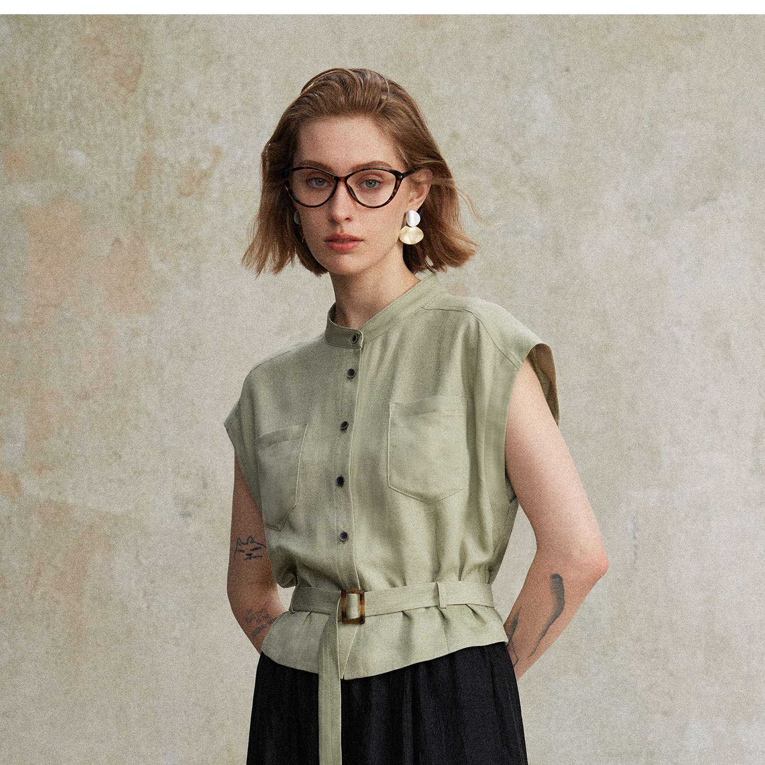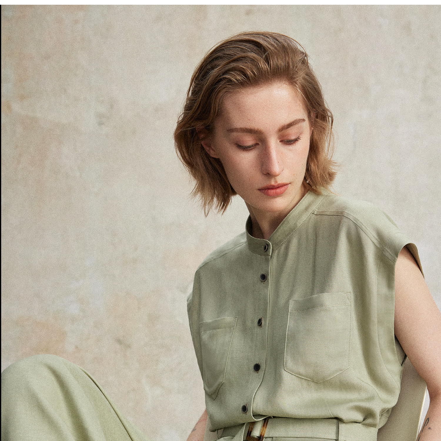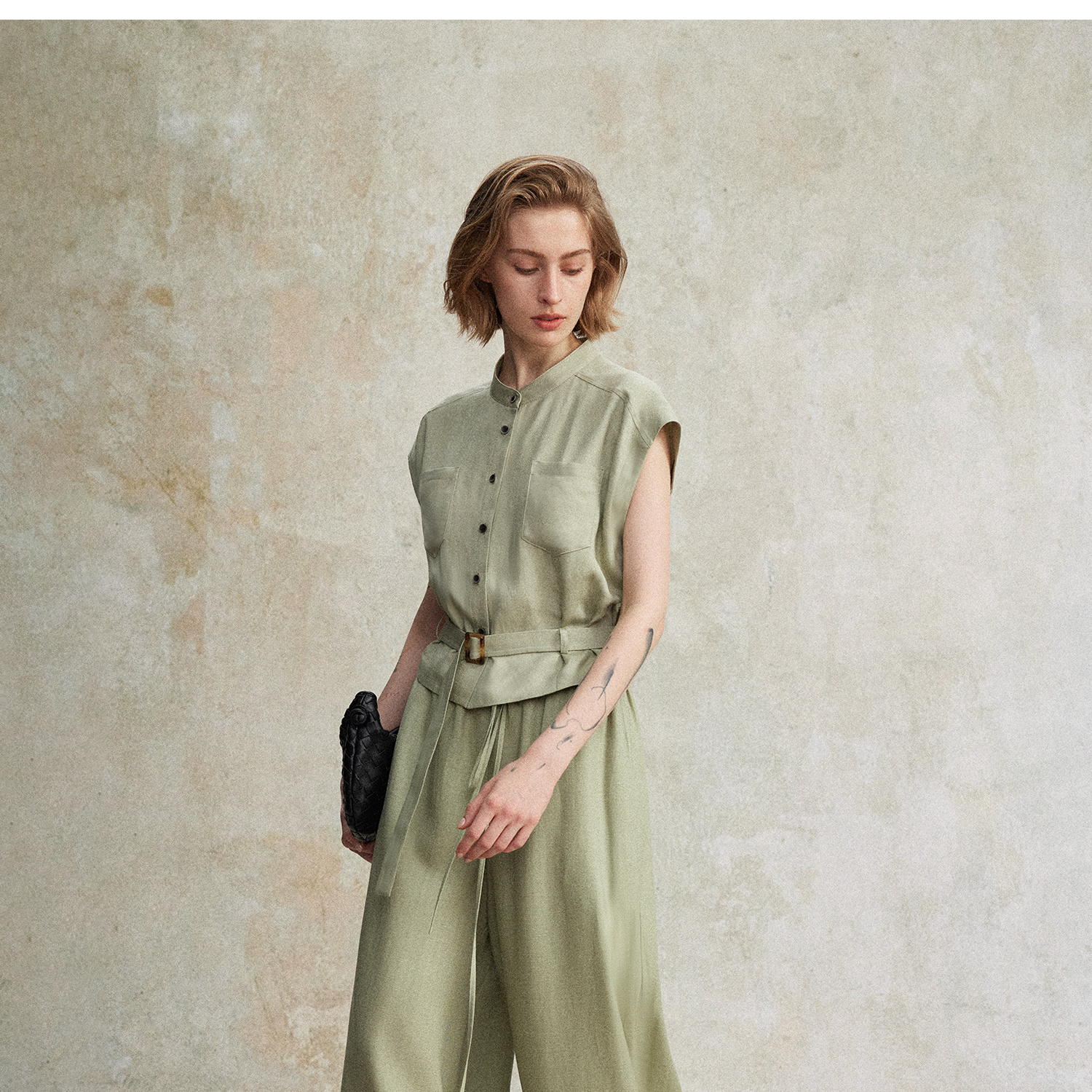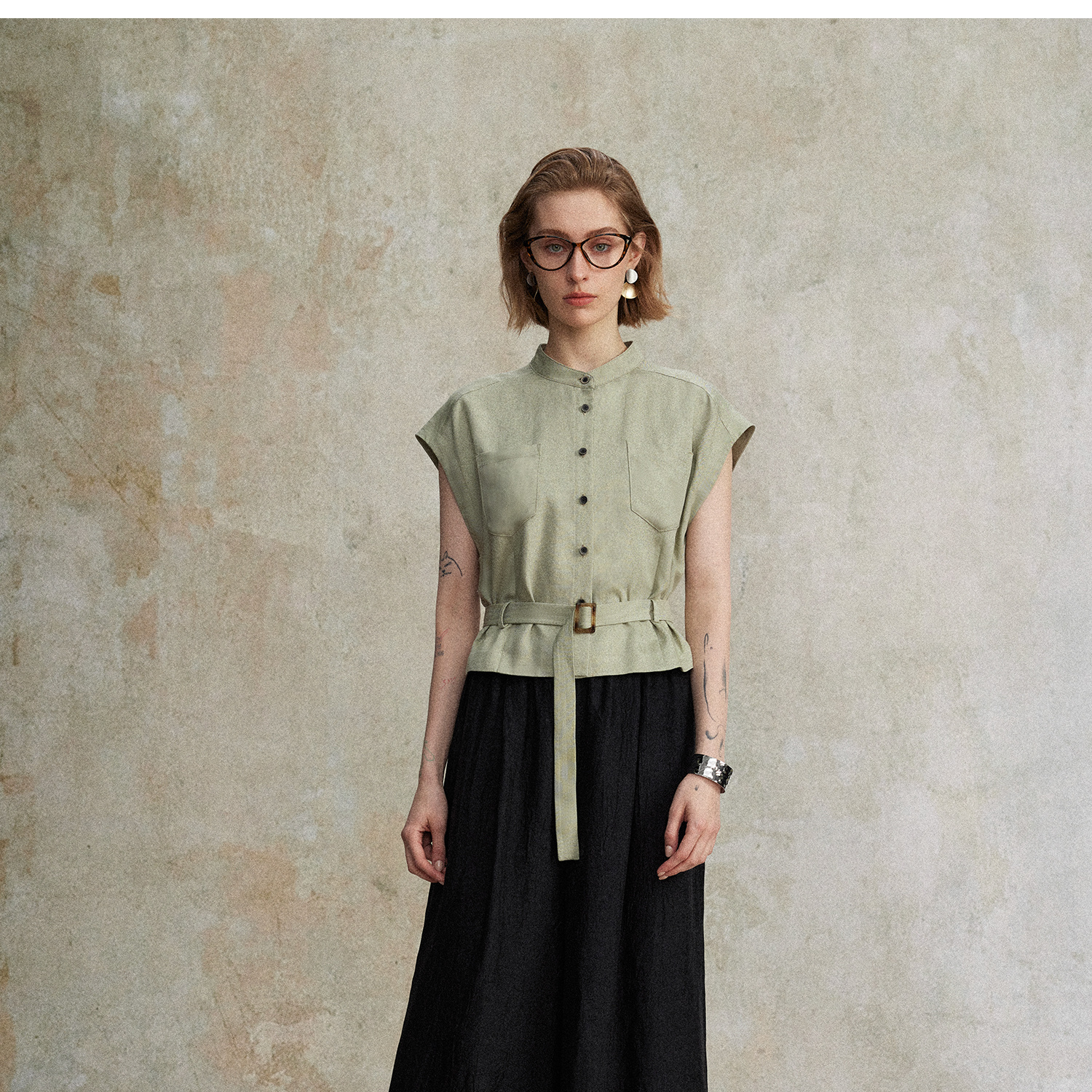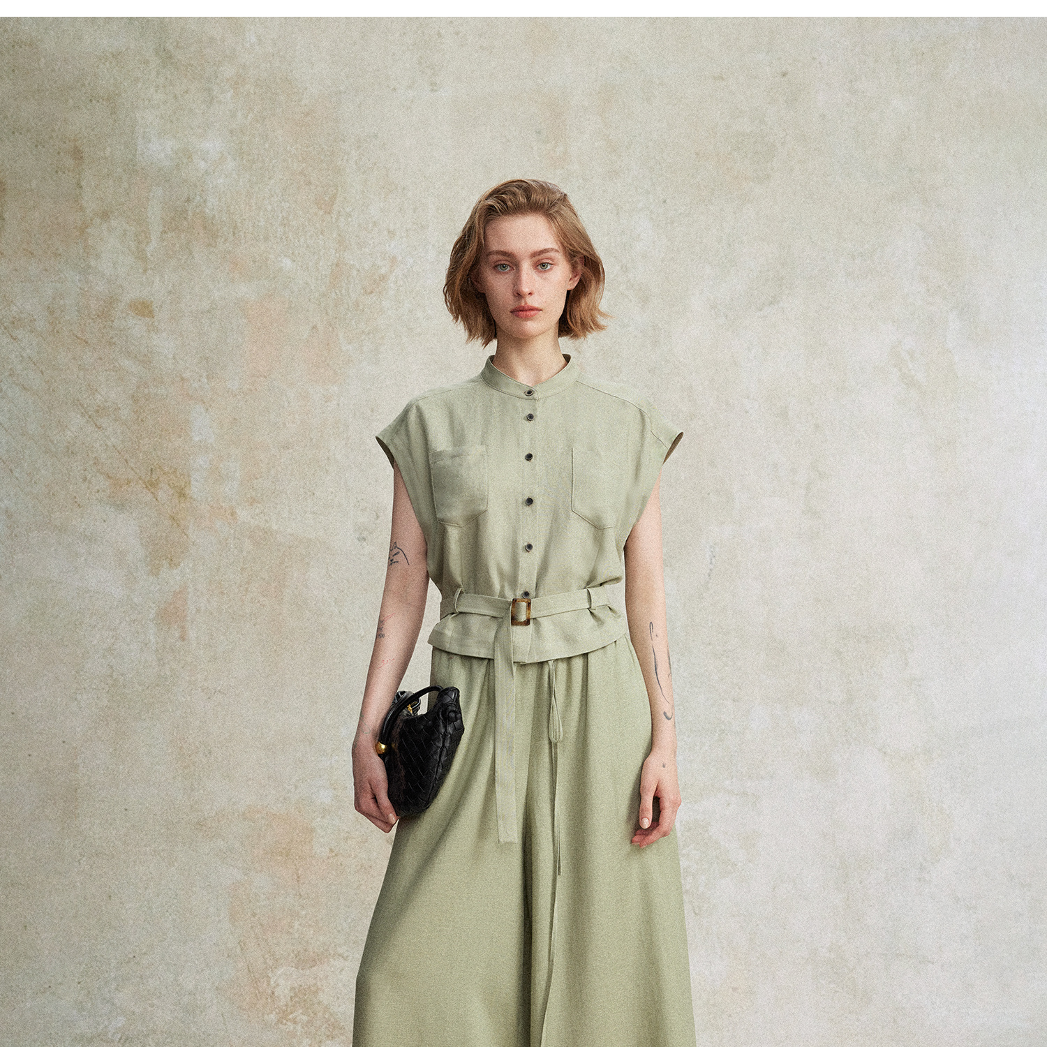 西嘉|天丝亚麻上衣女高端自然老钱风套装度假慵懒复古亚麻阔腿裤CS2502126