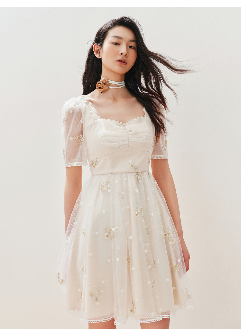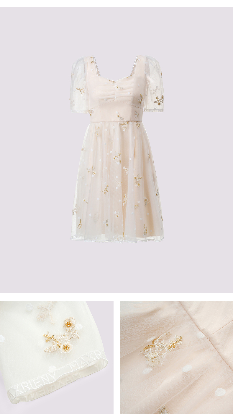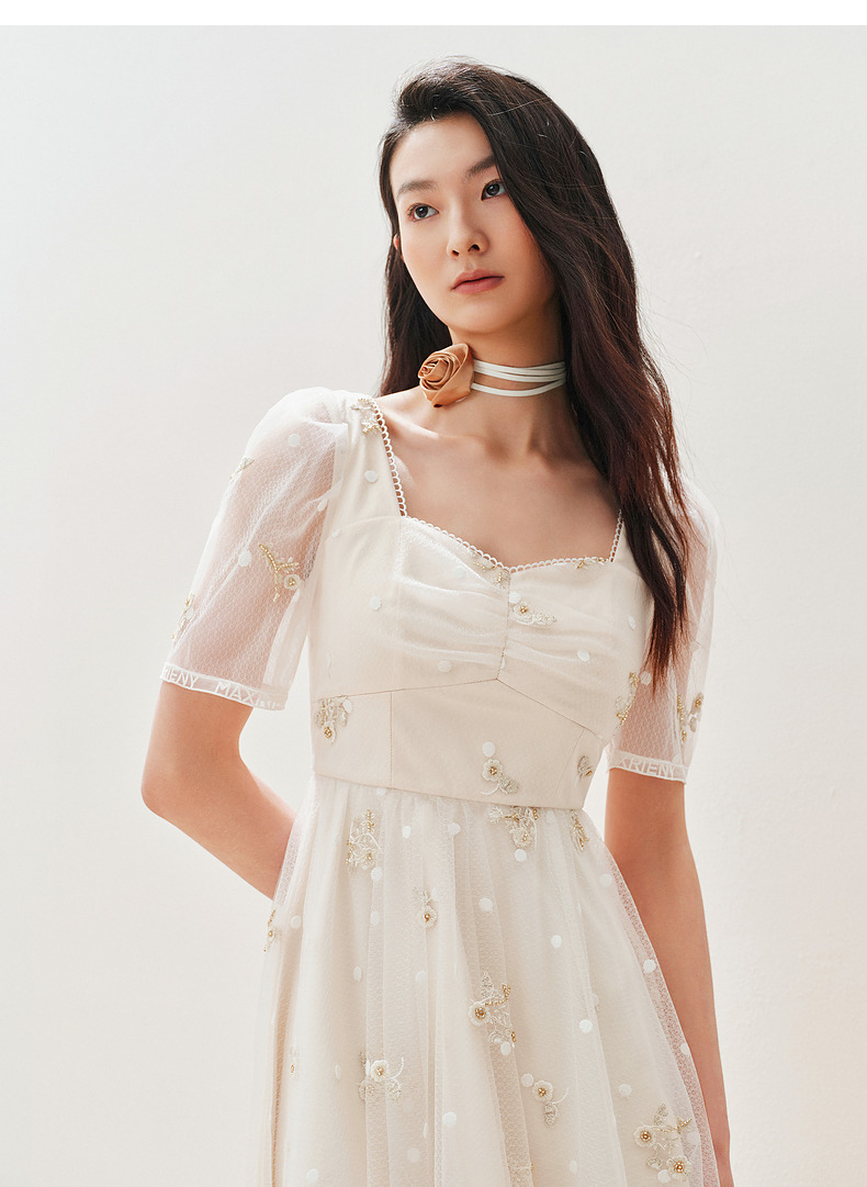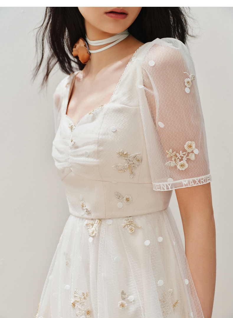 MAXRIENY华丽复古网纱绣花连衣裙2024夏季新款约会领证裙子小白裙(货号:MC85DR327)