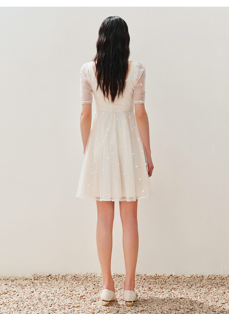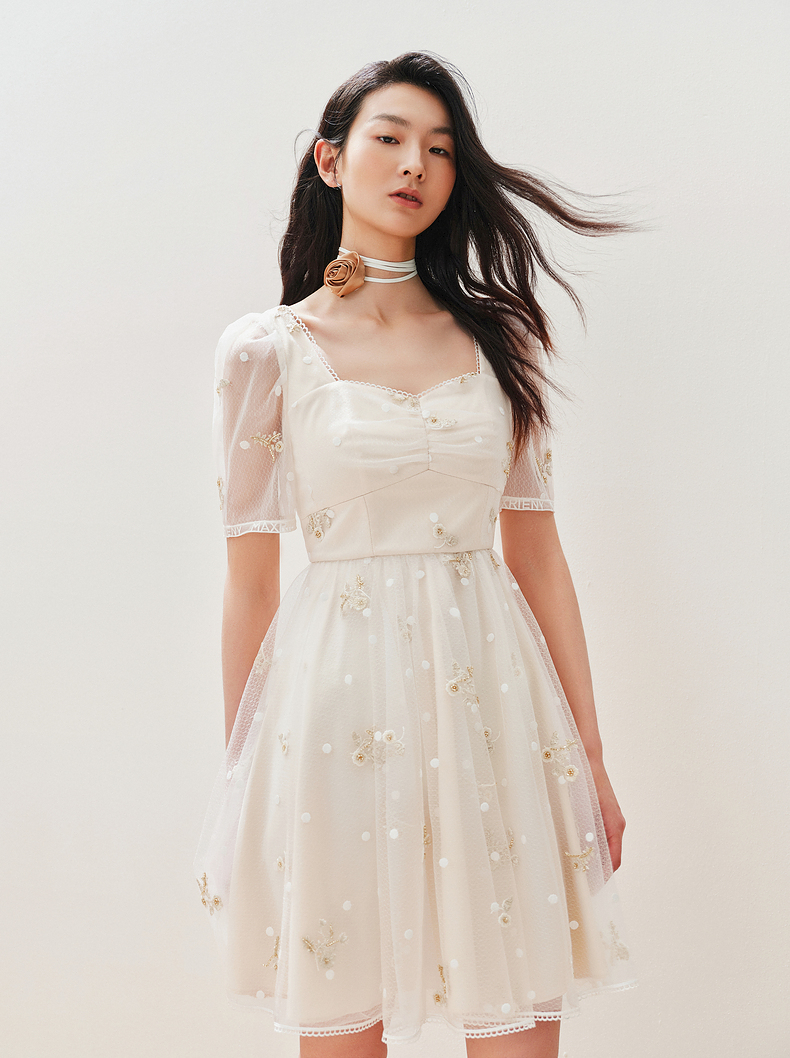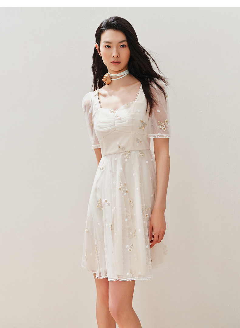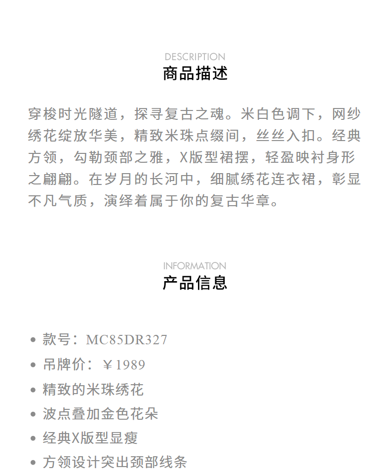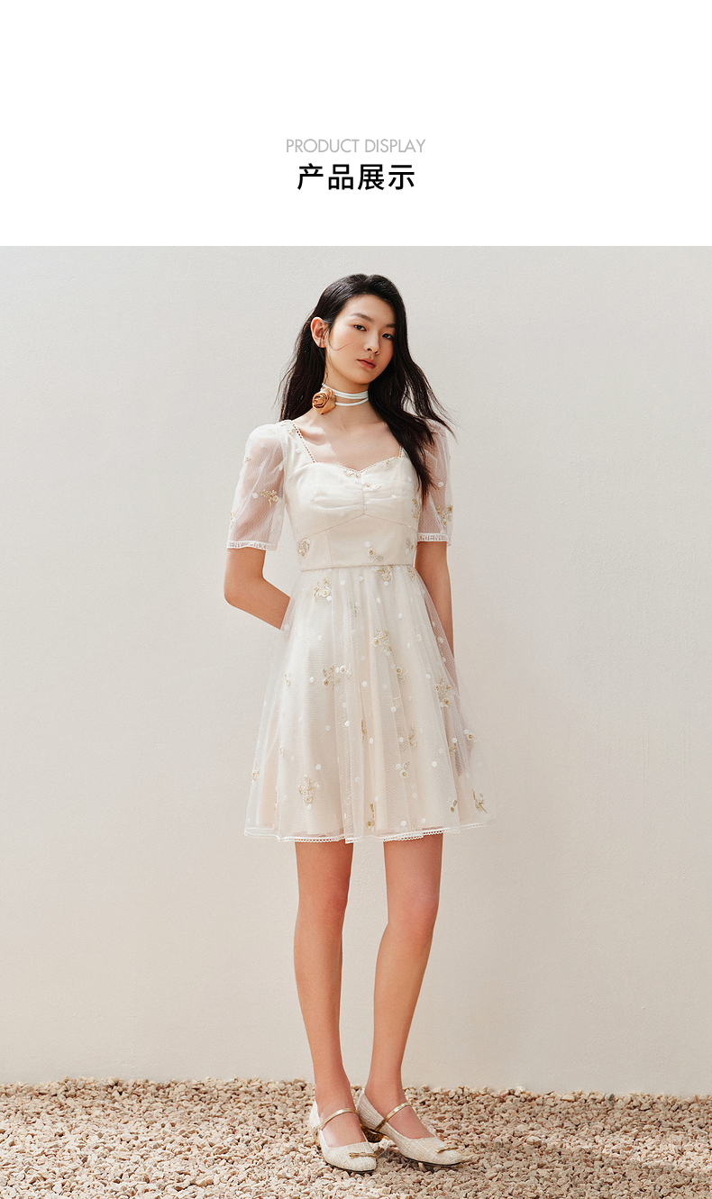 MAXRIENY华丽复古网纱绣花连衣裙2024夏季新款约会领证裙子小白裙(货号:MC85DR327)