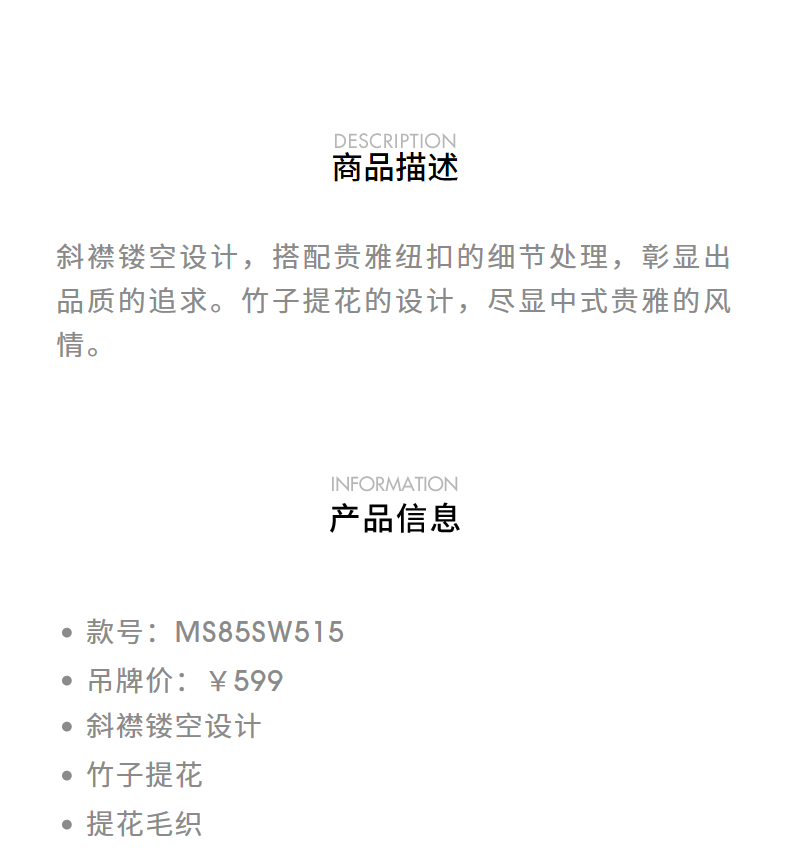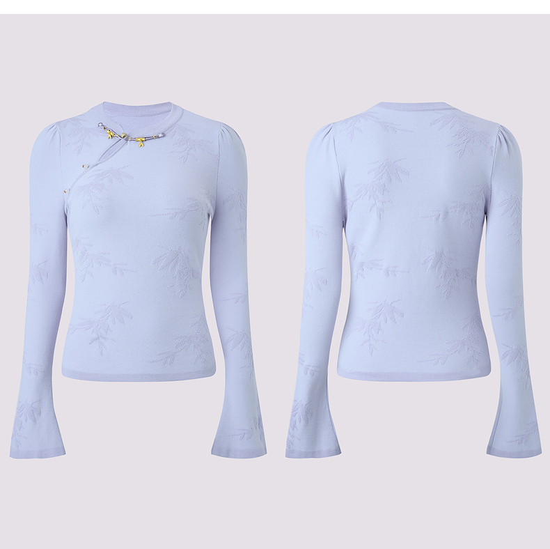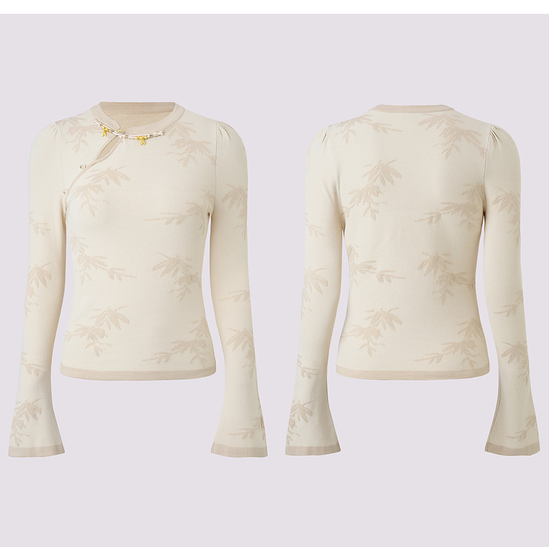 玛克门店发货:MAXRIENY雪竹衫贵雅新中式套头针织衫(货号:MS85SW515)