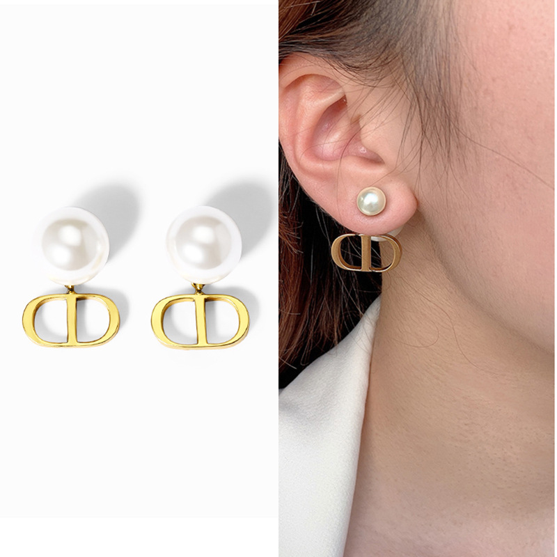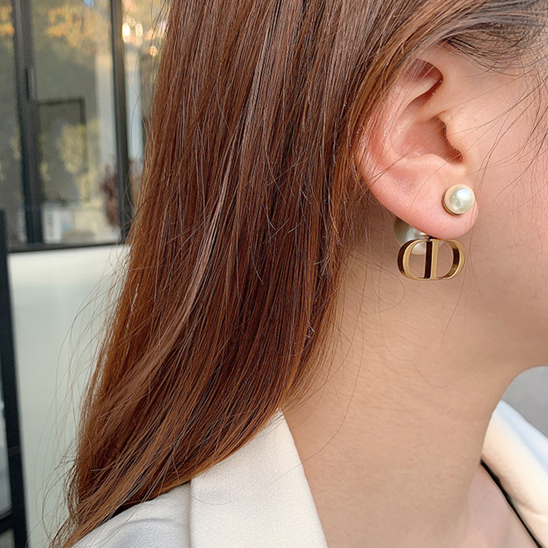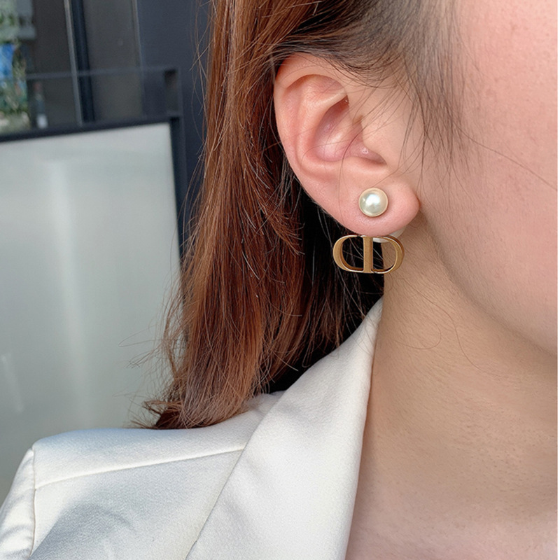 JU-D9876复古耳钉耳坠2021年新款潮法式网红女气质耳环双面大小珍珠耳饰女