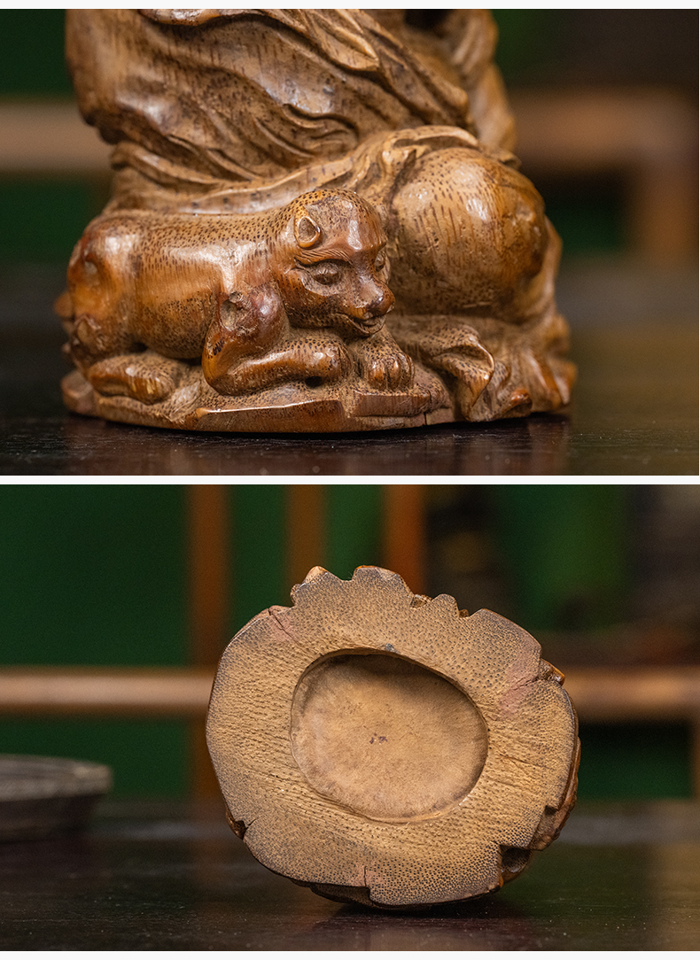 清 黄花梨百宝嵌花鸟诗文笔筒