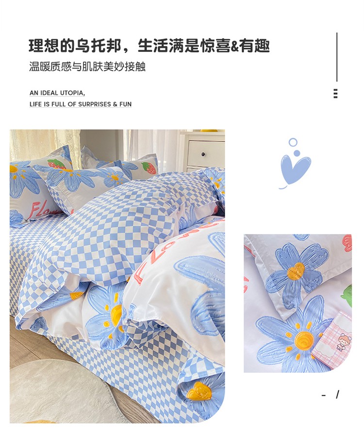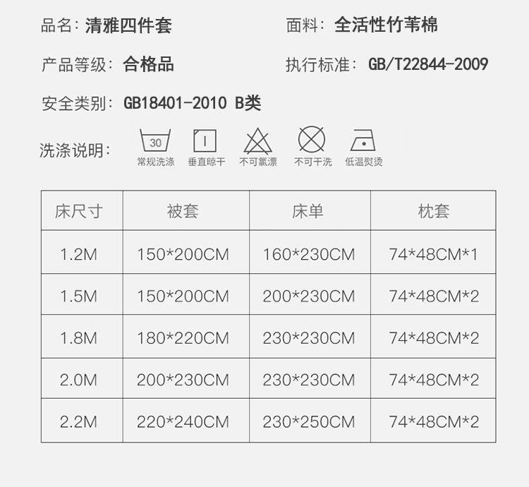【惠慈家居】 清雅四件套被套:200*230cm 床单:230*230cm 枕套:48*74cm*2