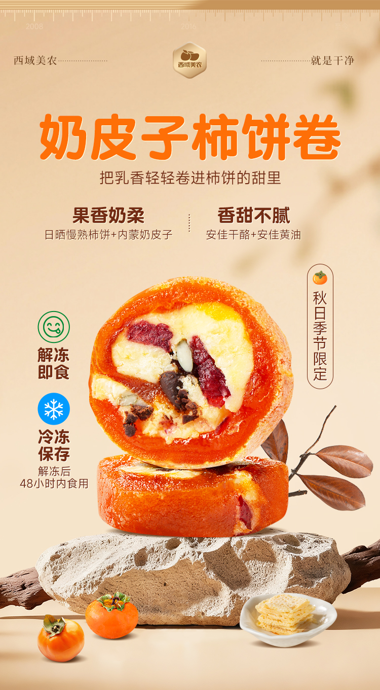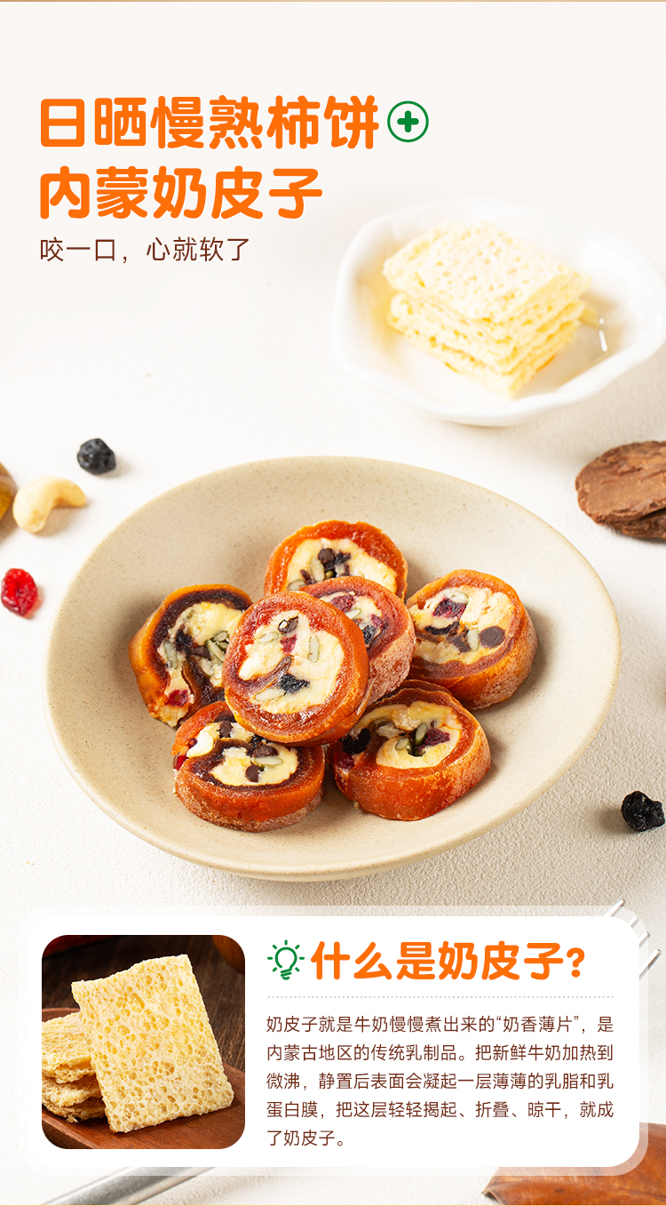 奶皮子柿饼卷120g 配料只有食物本身 柿饼来自广西富平 口感丰富 软糯香甜