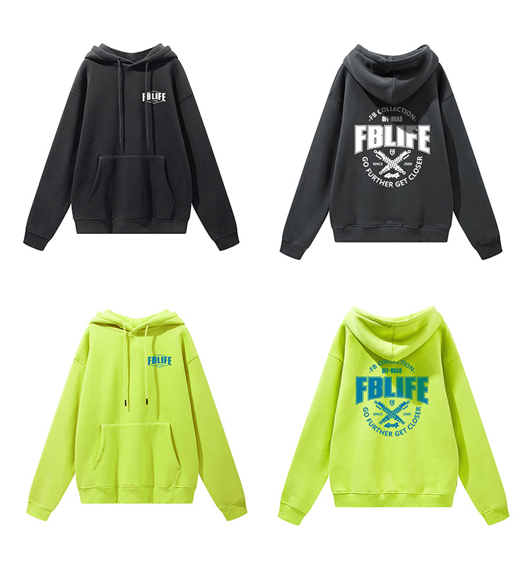 自由基地FB欧美机车复古印花图案个性越野潮流带帽抓绒卫衣外套休闲oversize衫 NMT-1729