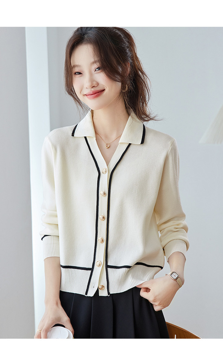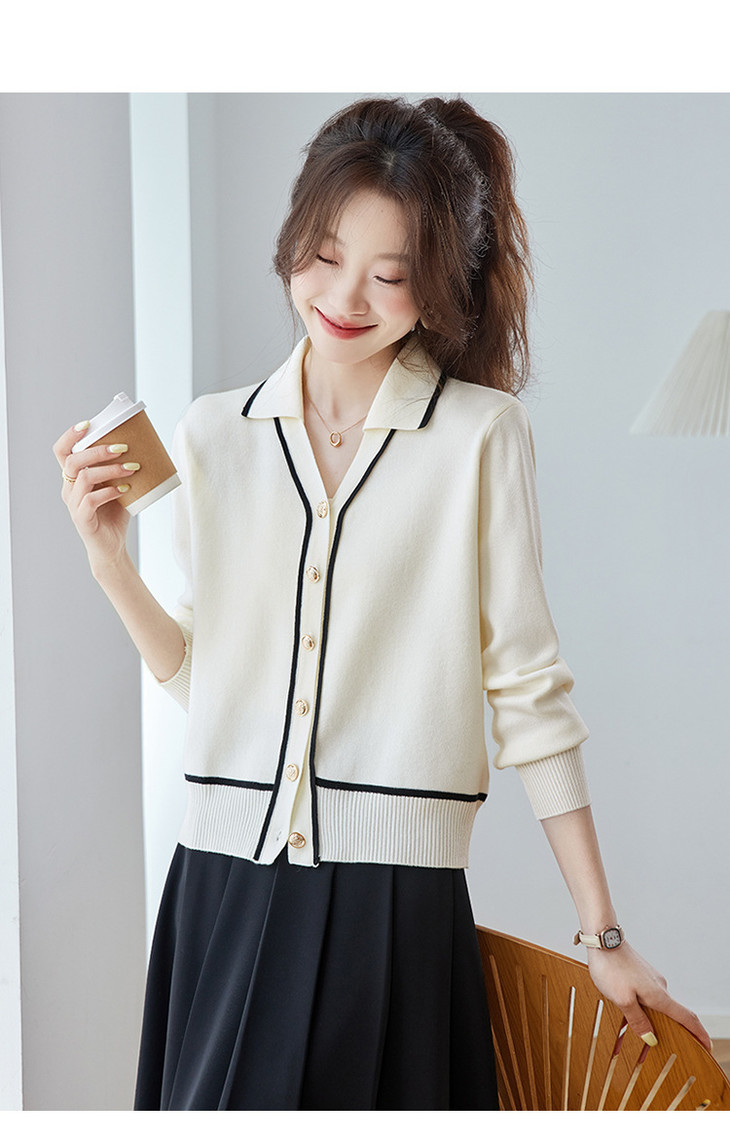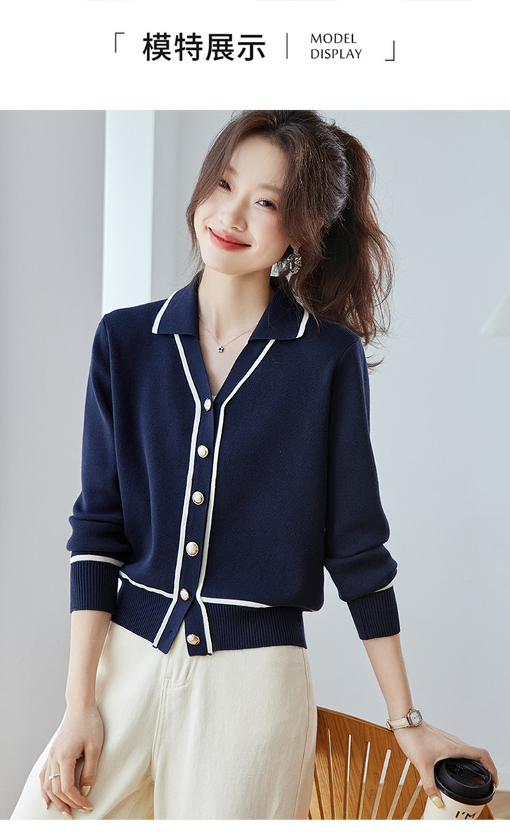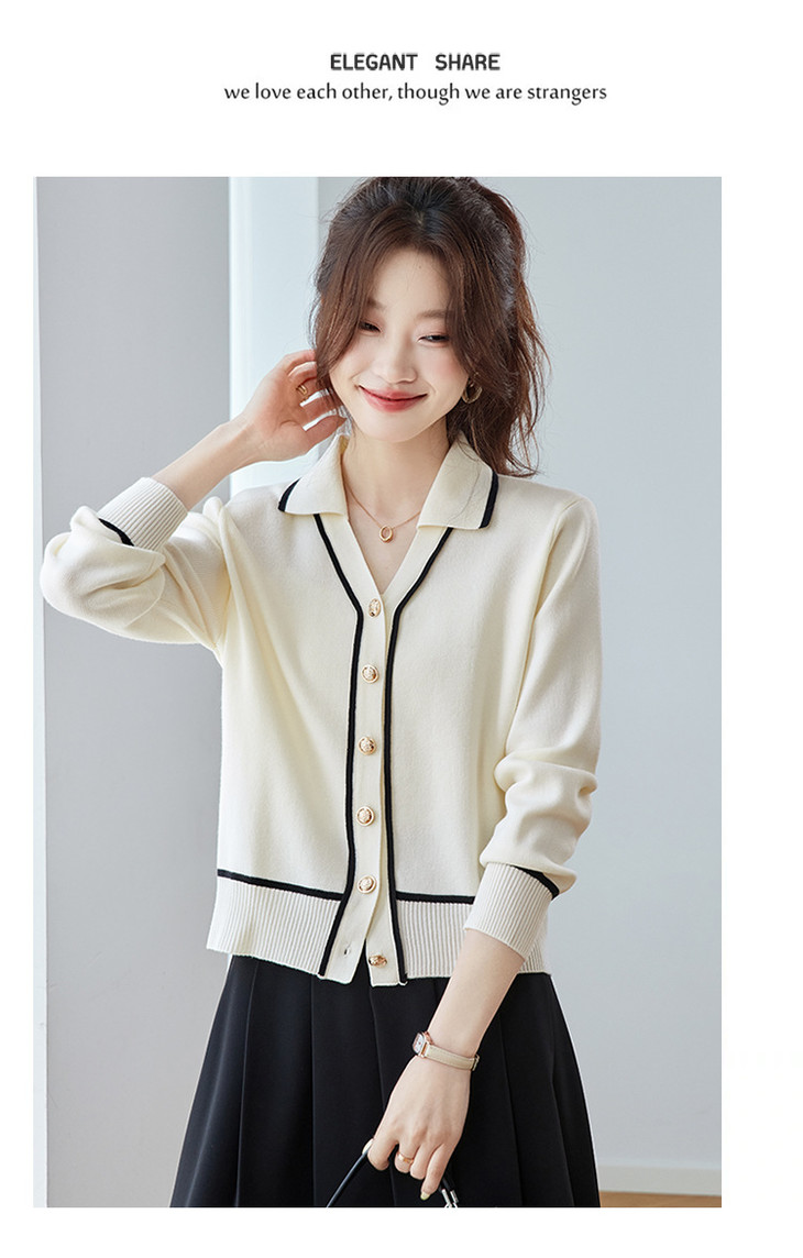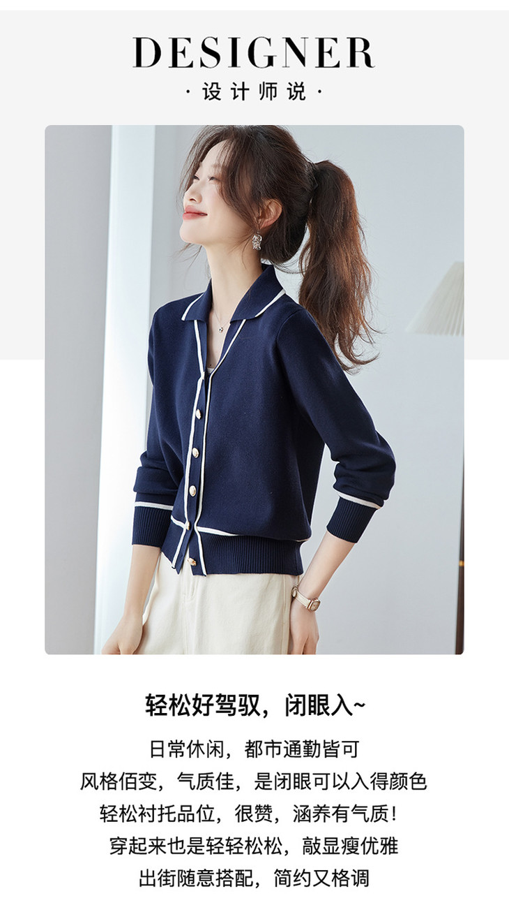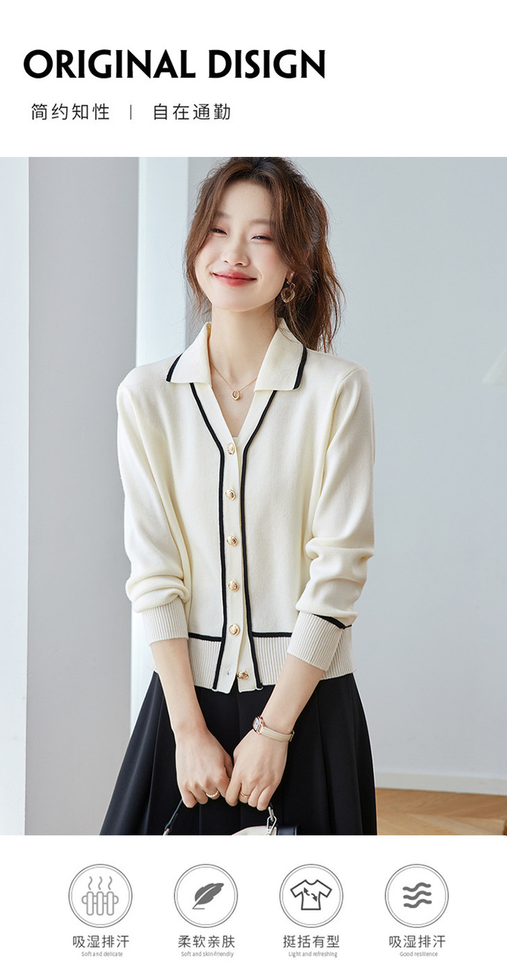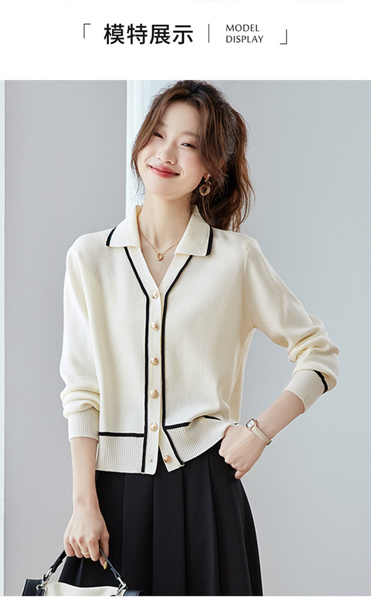 气质百搭上衣高级感,时尚撞色减龄翻领开衫外搭CC-ML-293
